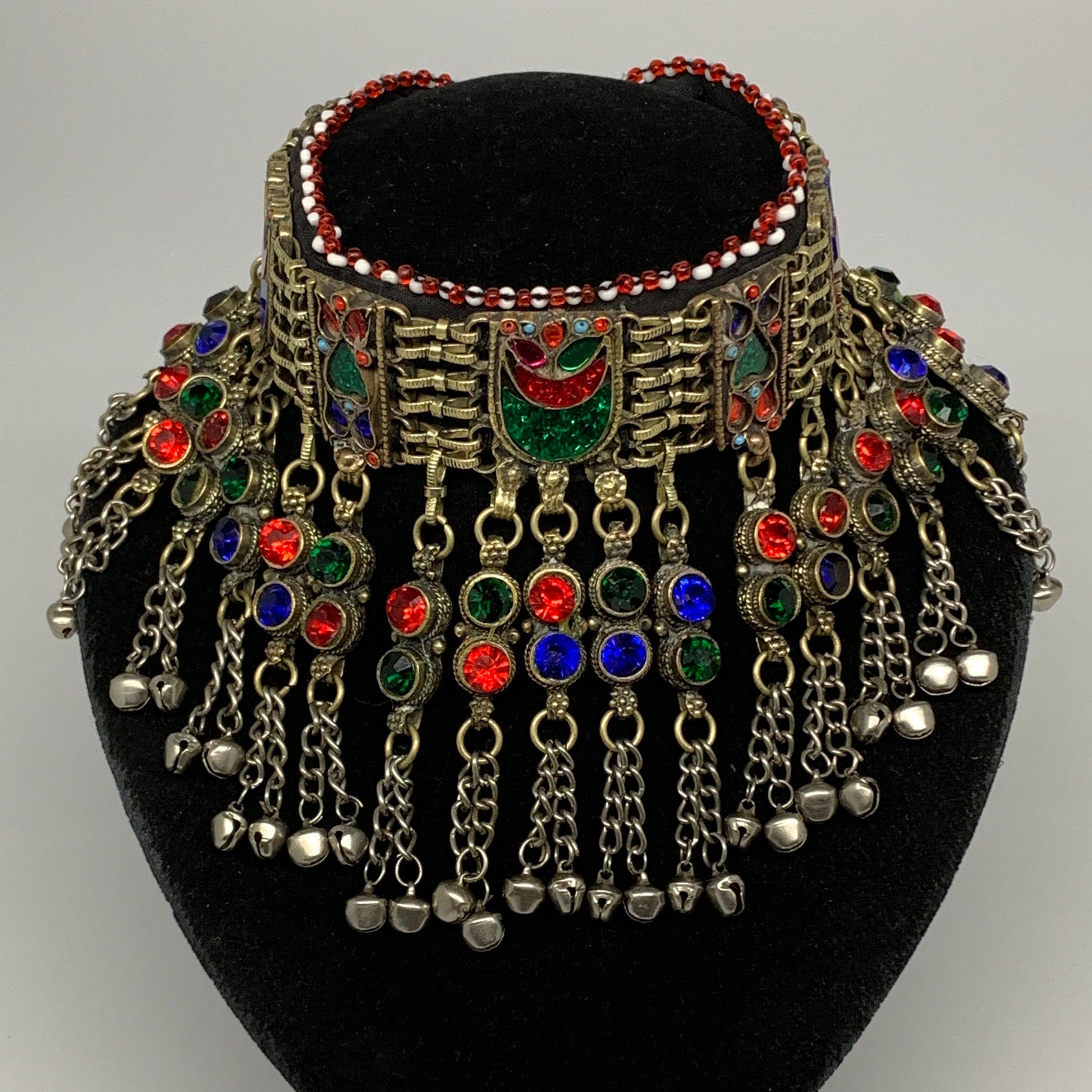 300g, 12"x4.25"Kuchi Choker Necklace Multi-Color Tribal Gypsy Bohemian,B14095
