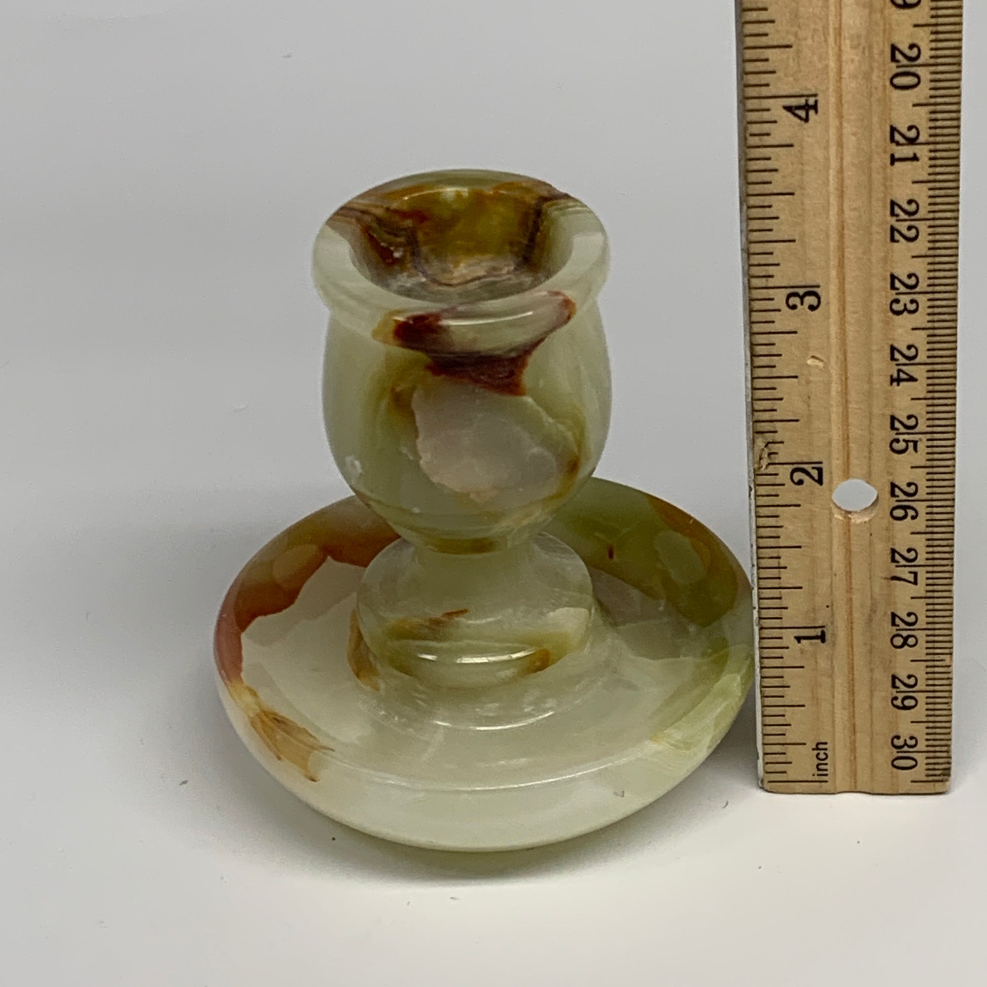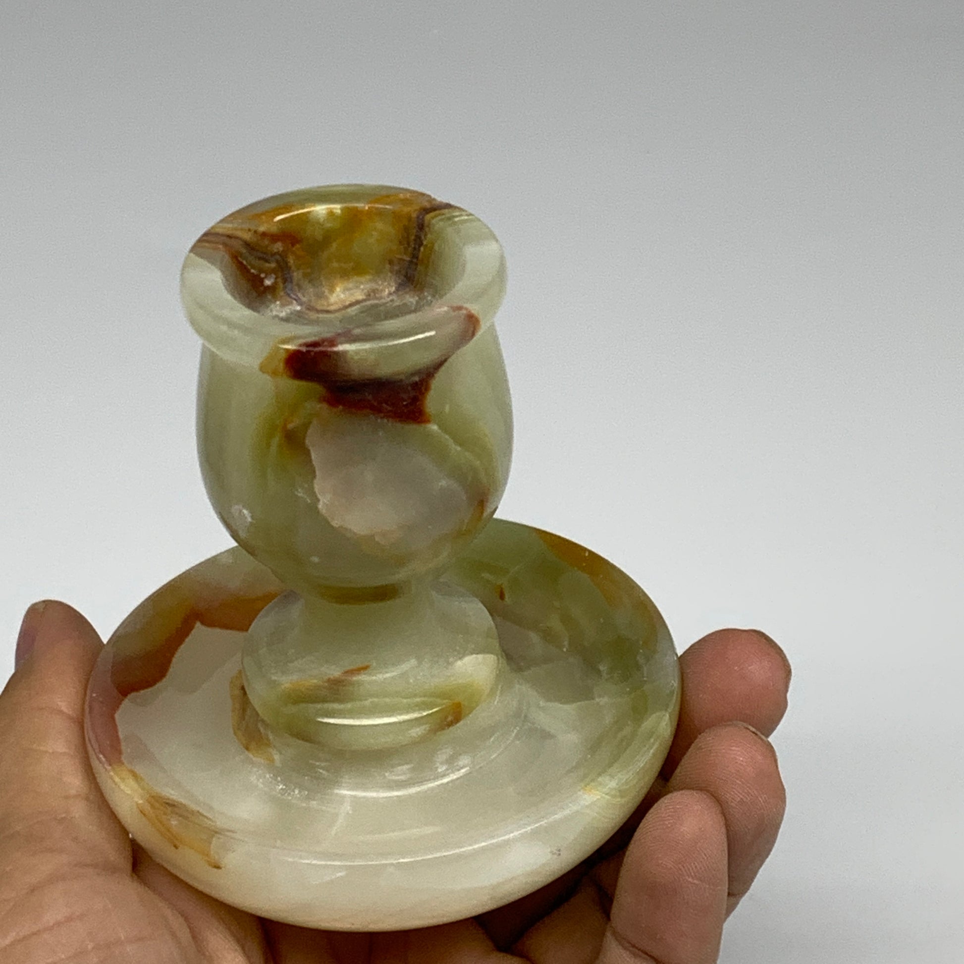 267g, 3.3"x1.5"x2.9", Natural Green Onyx Candle Holder Gemstone Hand Carved, B32194