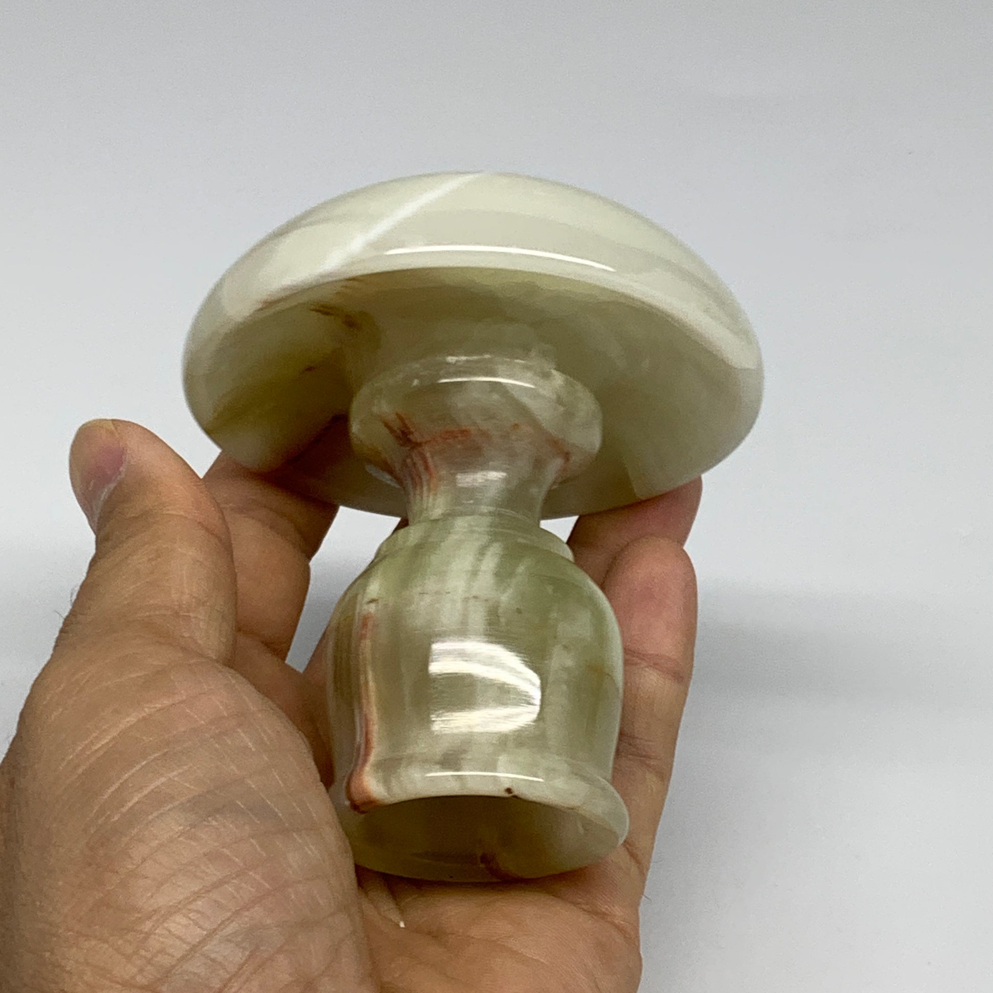 303g, 3.2"x1.5"x3", Natural Green Onyx Candle Holder Gemstone Carved, B32241