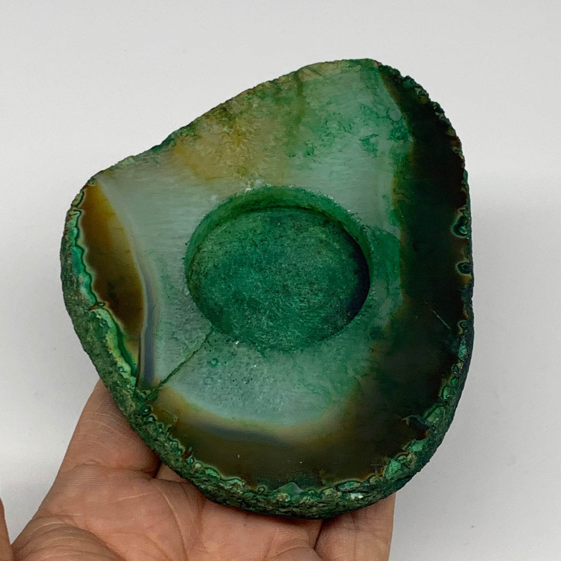 306.3g, 4.6"x3.8"x0.7", Dyed Agate Tea Light Candle Holder Crystal, B25567