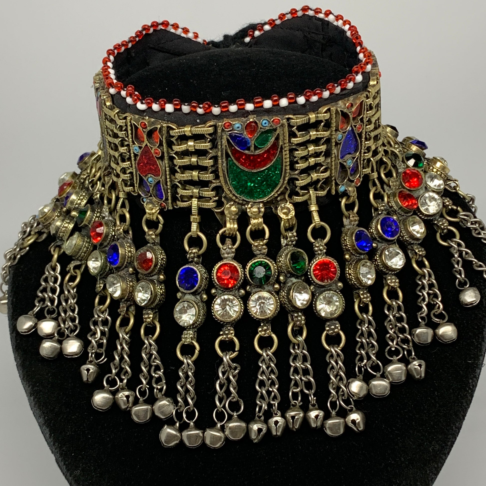 Although we hand select our jewelries, but still tribal Jewelries may have some wears & tears, missing beads or glasses, dangles, bells and jingles..etc so, please look at at the images carefully before purchasing. We took several images and very close up photos are taken to show you exactly what you will be receiving. The metals used in these kind of jewelries are called different names, some call it German Silver, some called it Gypsy and some call it Alpaca Silver or they could be just brass. We cannot confirm.