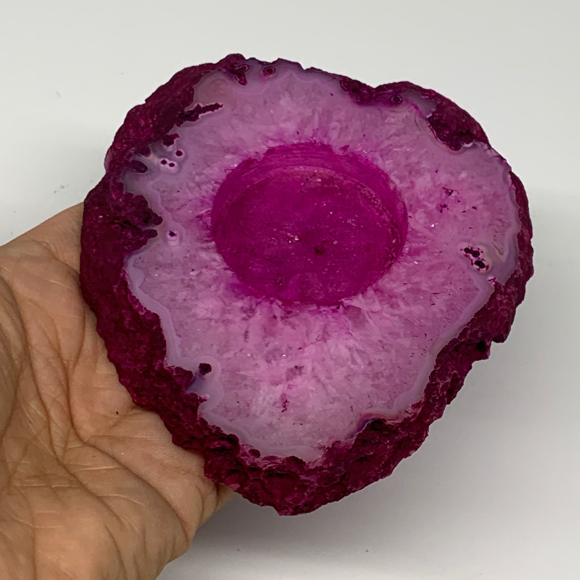 311.9g, 4.7"x4.1"x0.7", Dyed Agate Tea Light Candle Holder Crystal, B25564