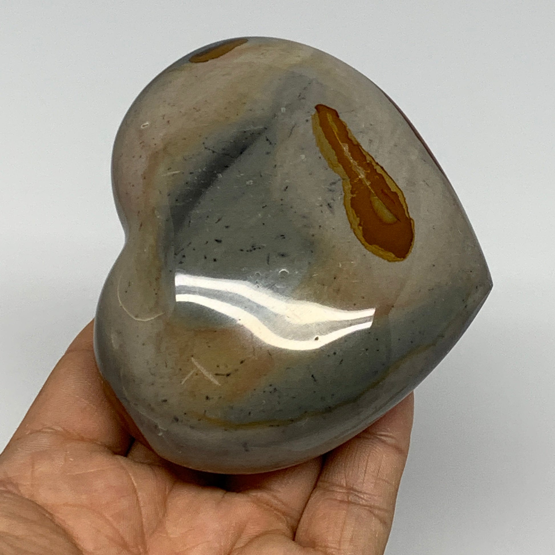 313.9g, 3"x3.6"x1.4" Polychrome Jasper Heart Polished Healing Crystal, B17729