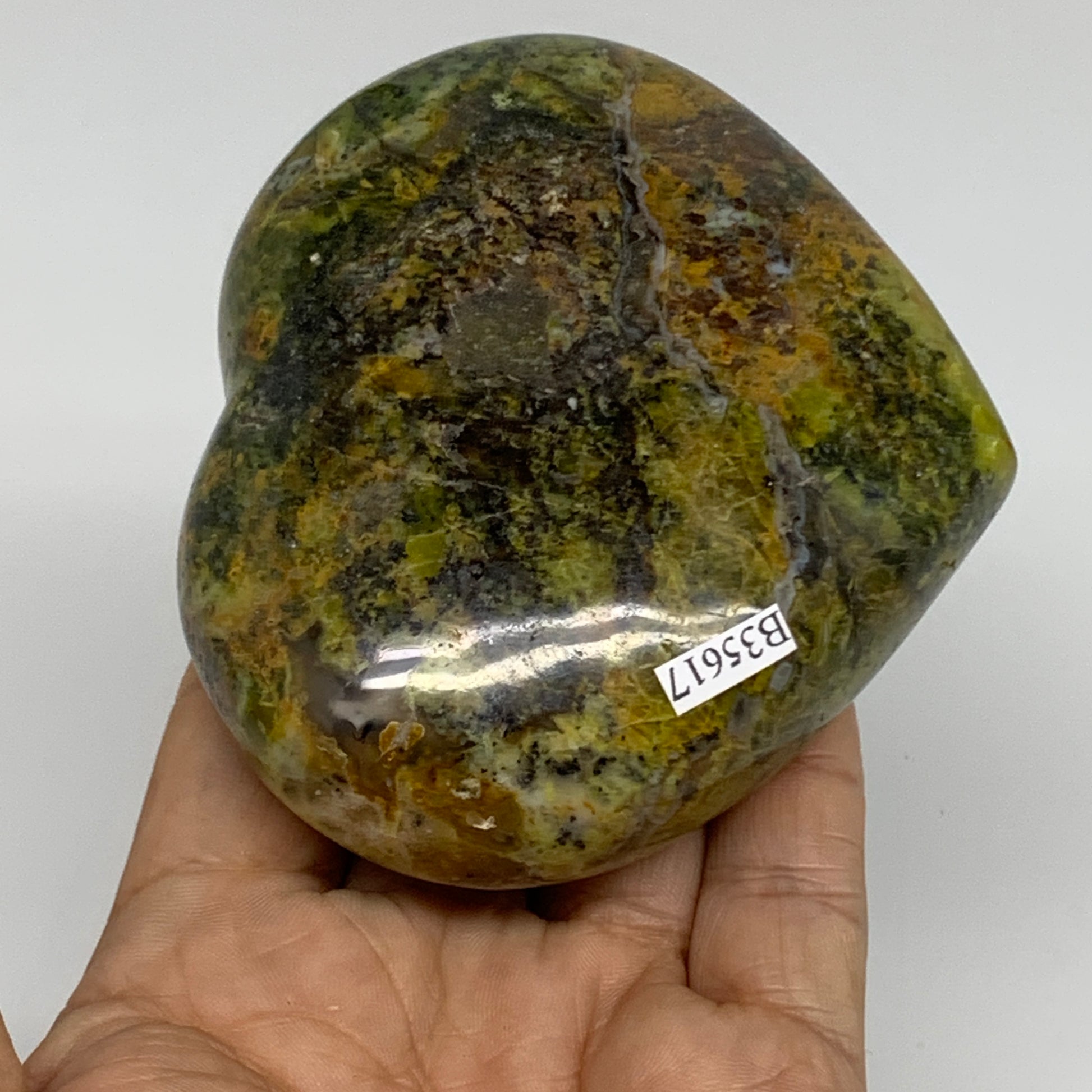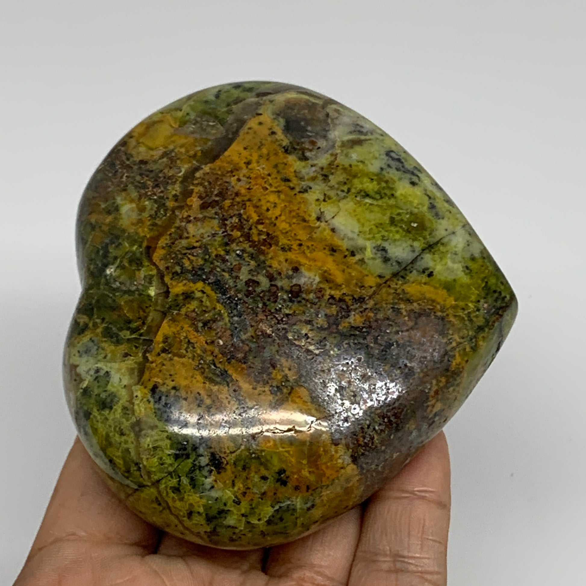 319.9g,3.2"x3.6"x1.5", Green Opal Heart Polished Gemstone Crystal, B35617