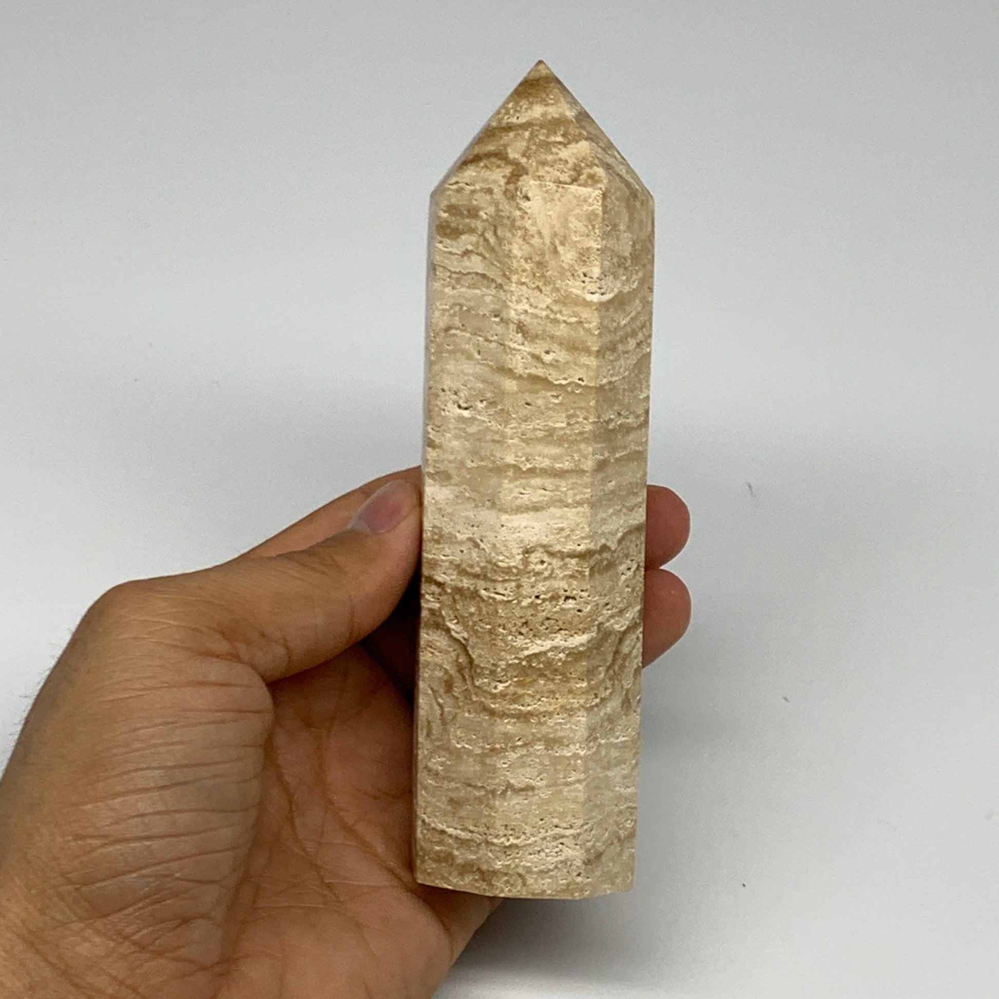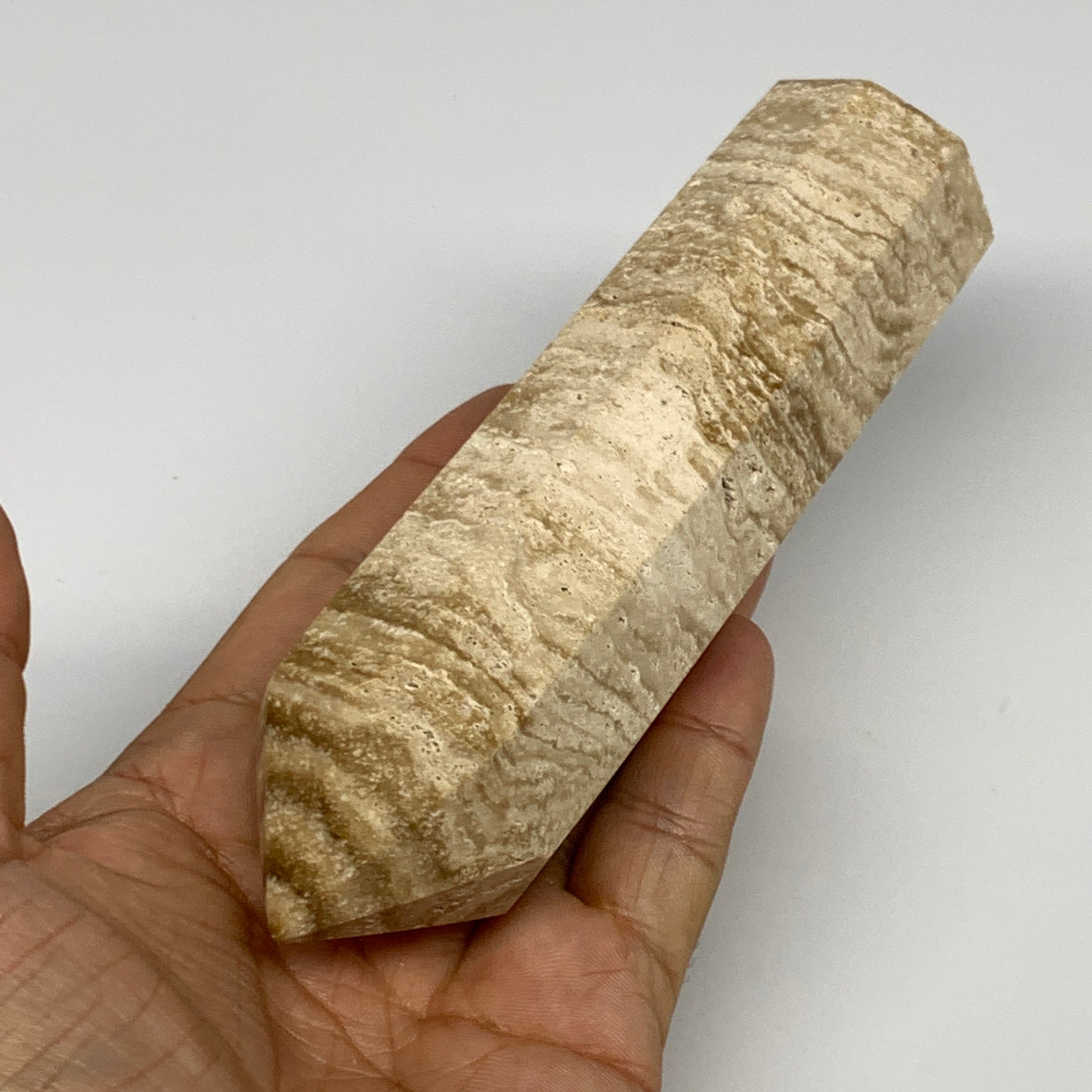 319g, 5.5"x1.5" Natural Chocolate Calcite Tower Point Obelisk Crystal, B23322