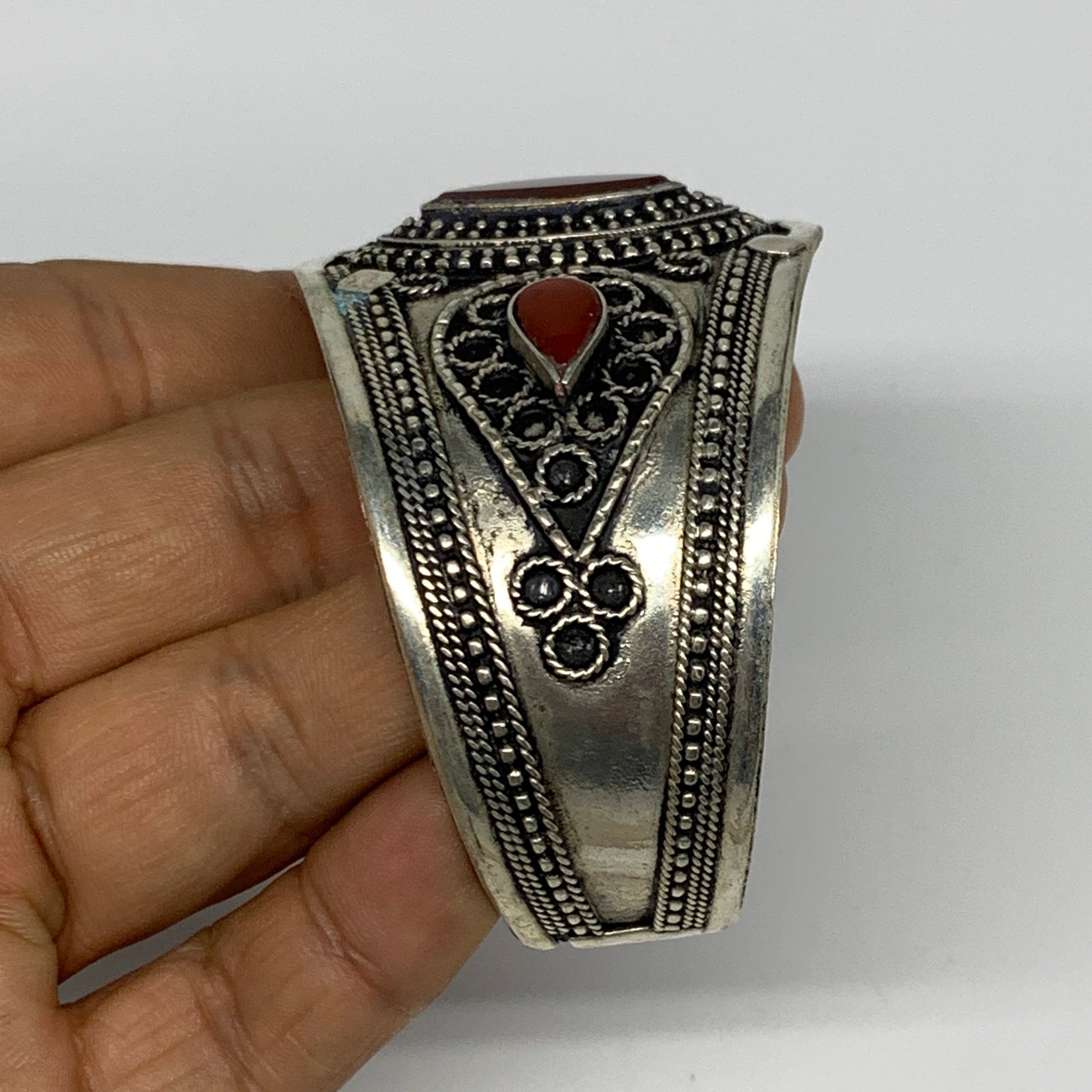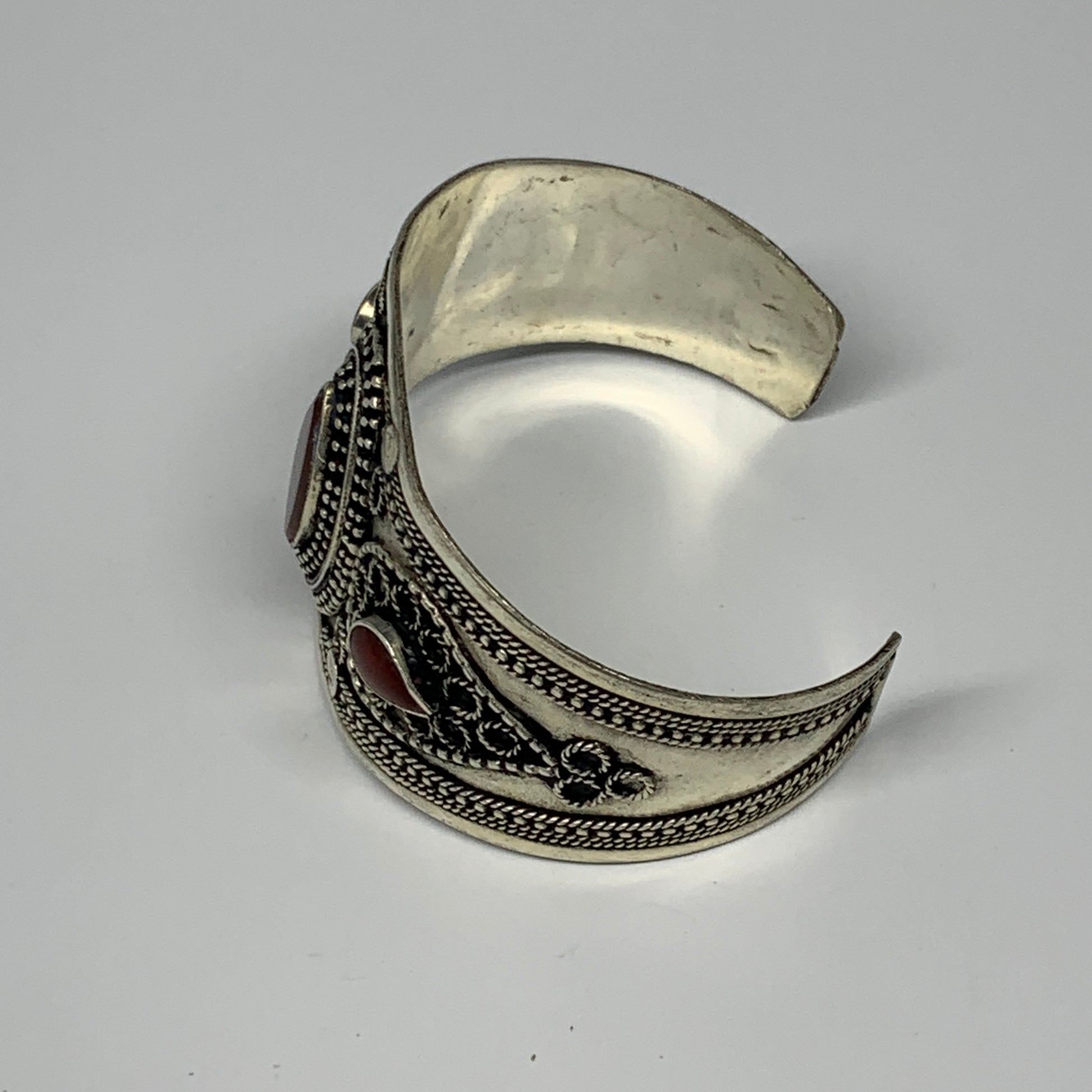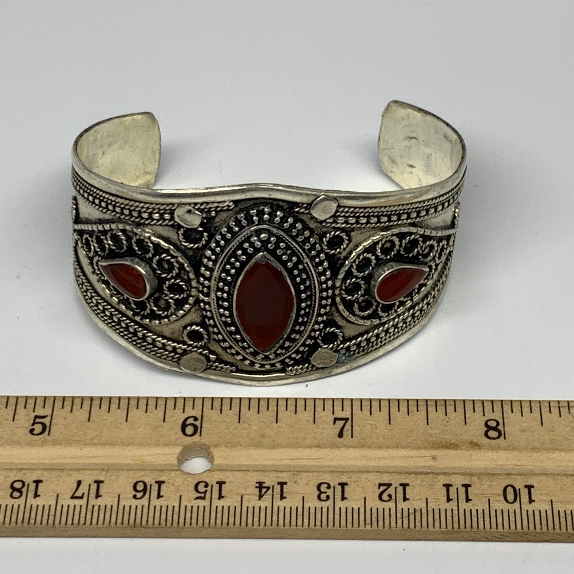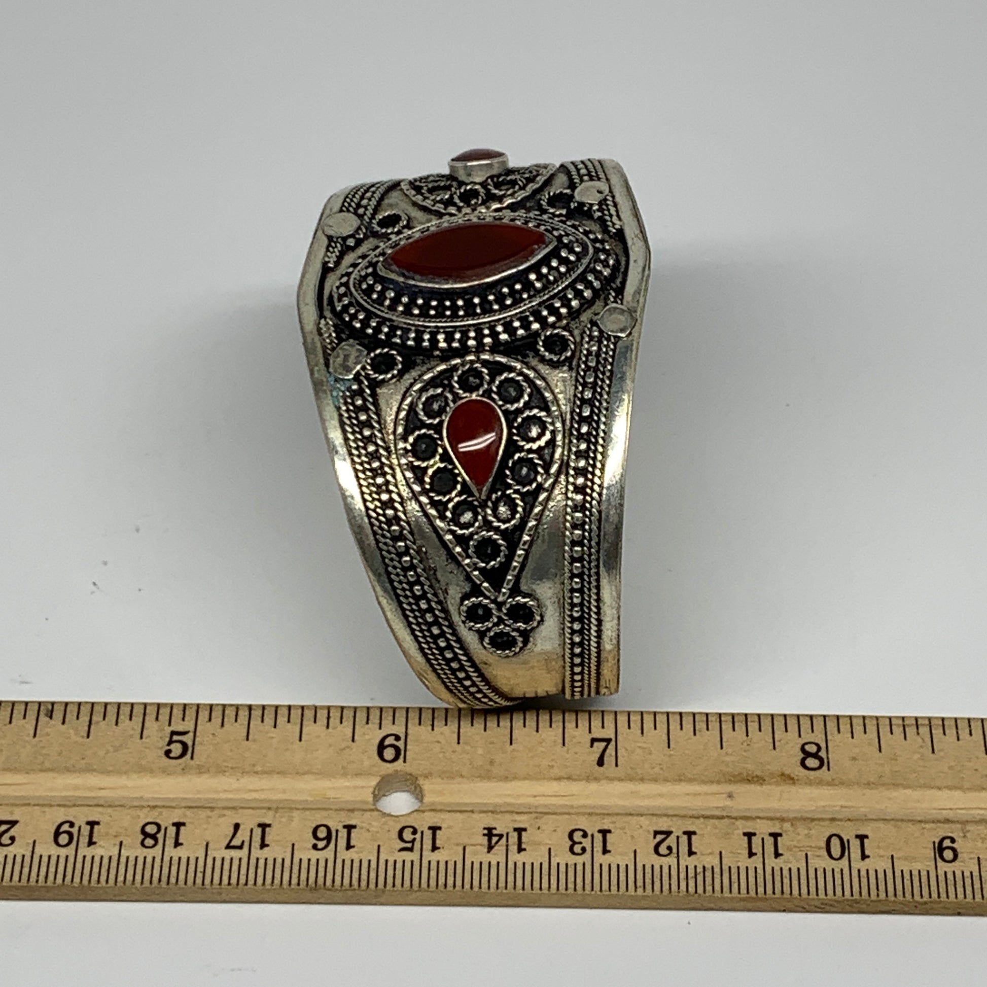 32.6g, 1.6" Red Carnelian Turkmen Cuff Bracelet Tribal Small Marquise, B13443