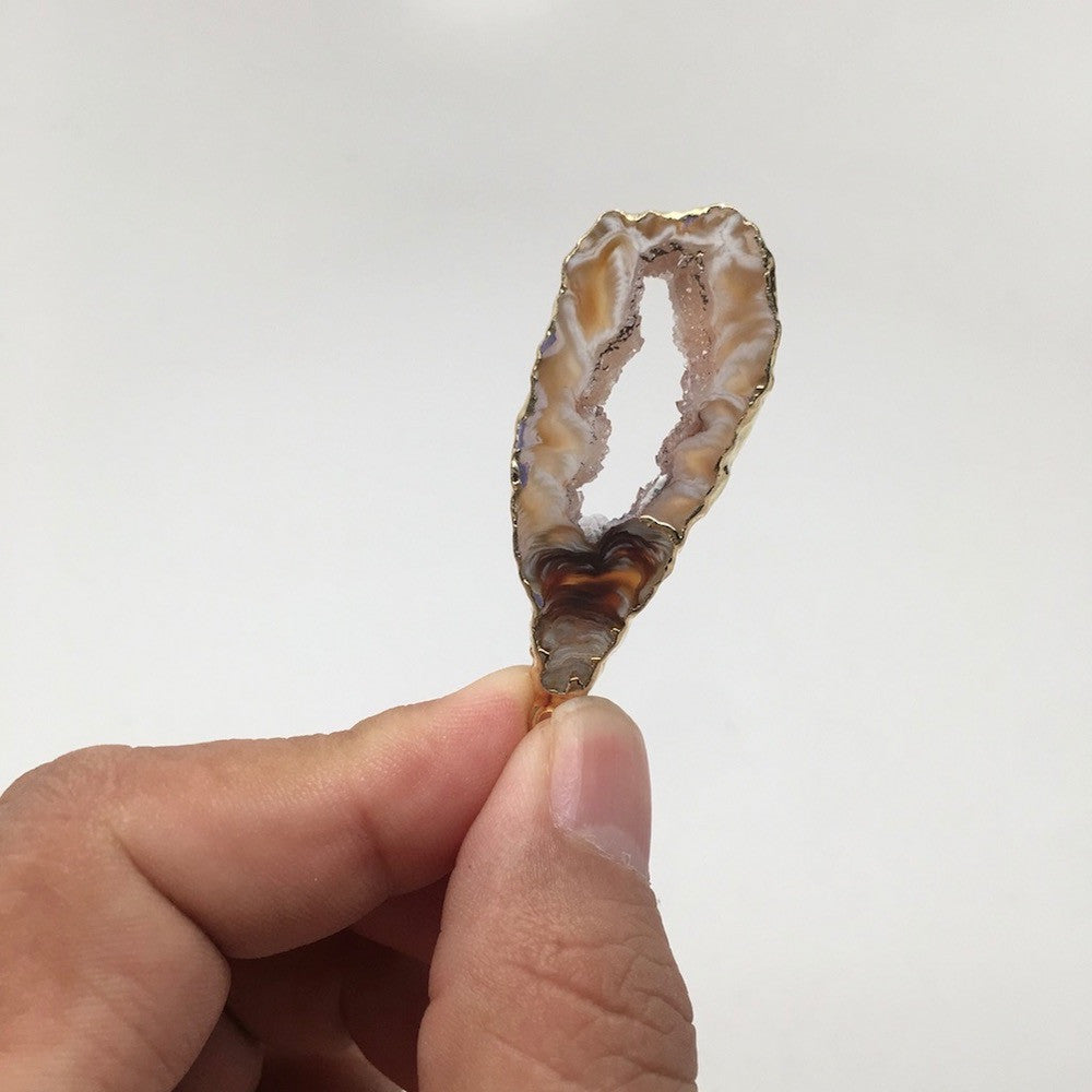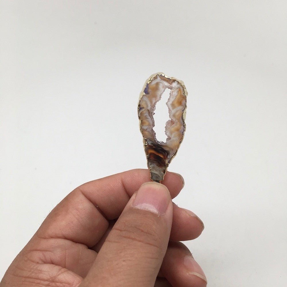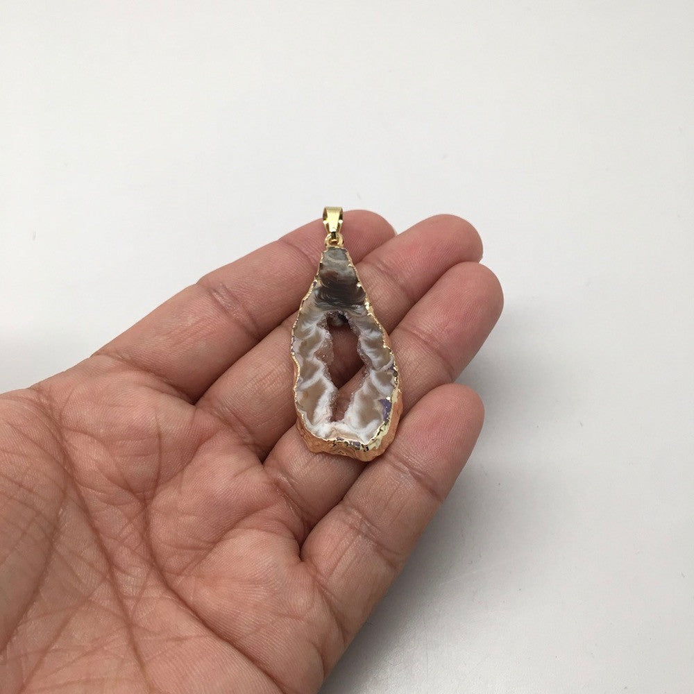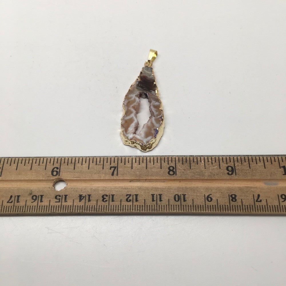 32 Cts Agate Druzy Slice Geode Gold Plated Pendant Handmade from Brazil,Bp828
