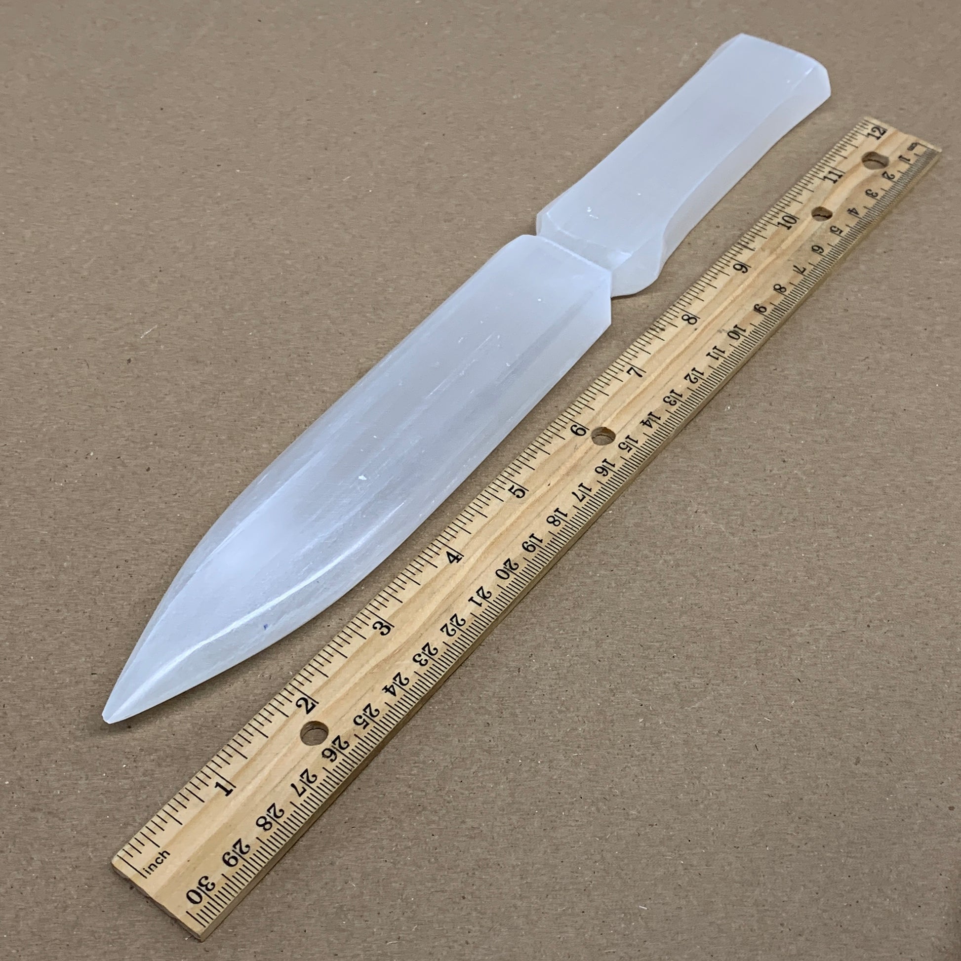 320g, 11.5"x1.6"x0.7", Natural Selenite Crystal Dagger (Satin Spar), B36226