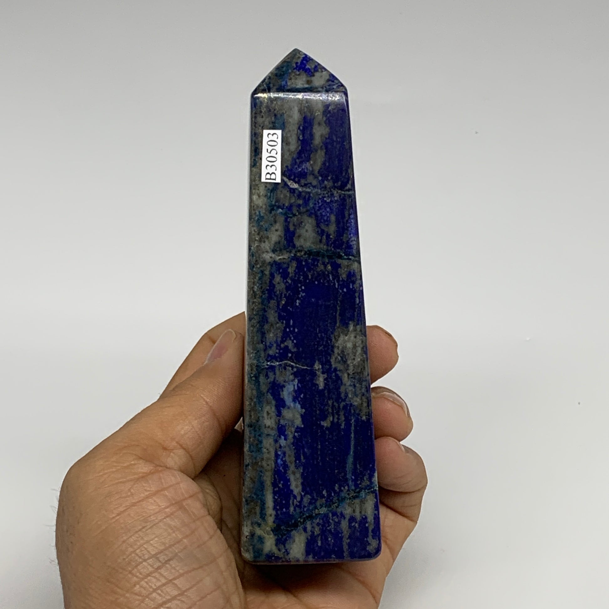 324.1g, 5"x1.4"x1.3", Natural Lapis Lazuli Tower Point Obelisk Afghanistan,B30503
