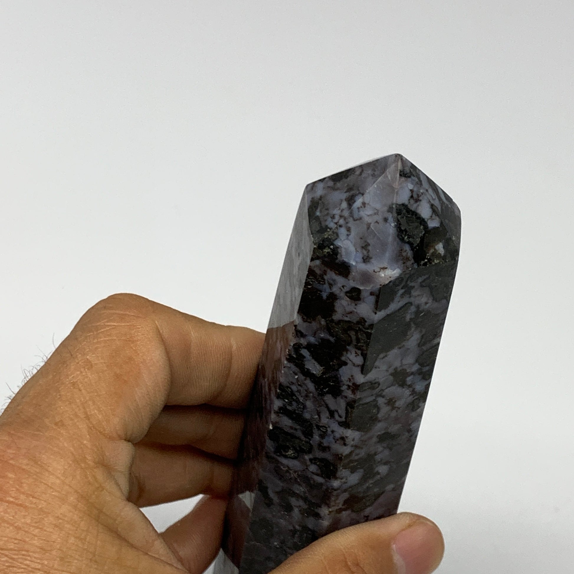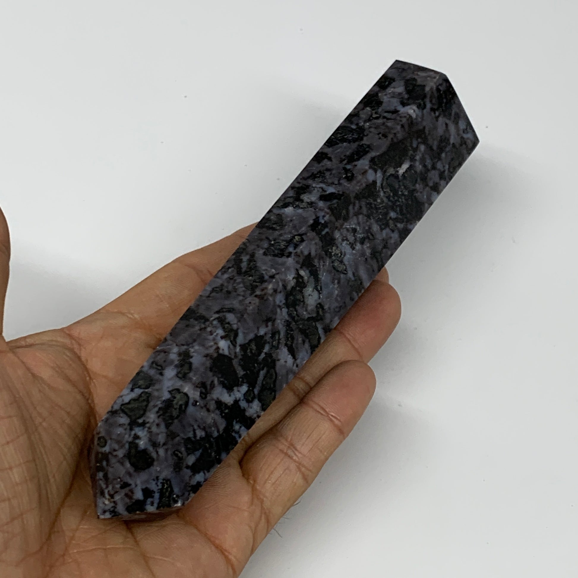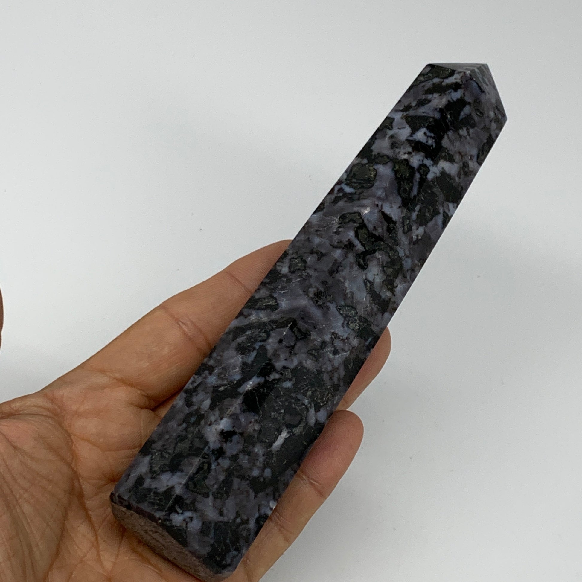325.2g, 6.3" x 1.5" x 1.2" Indigo Gabro Merlinite Point Tower @Madagascar,B18378