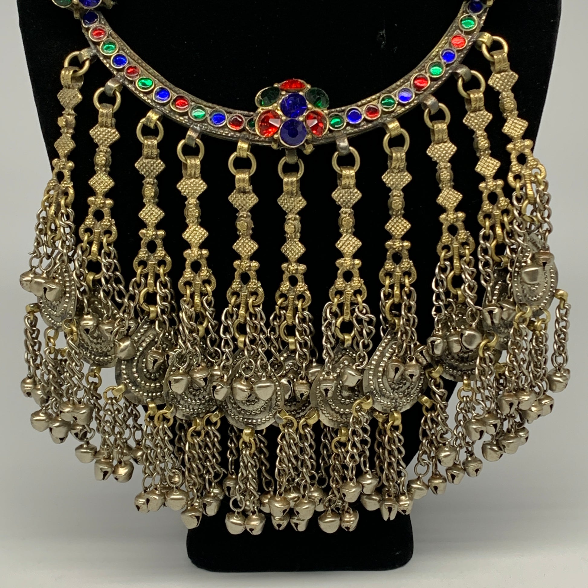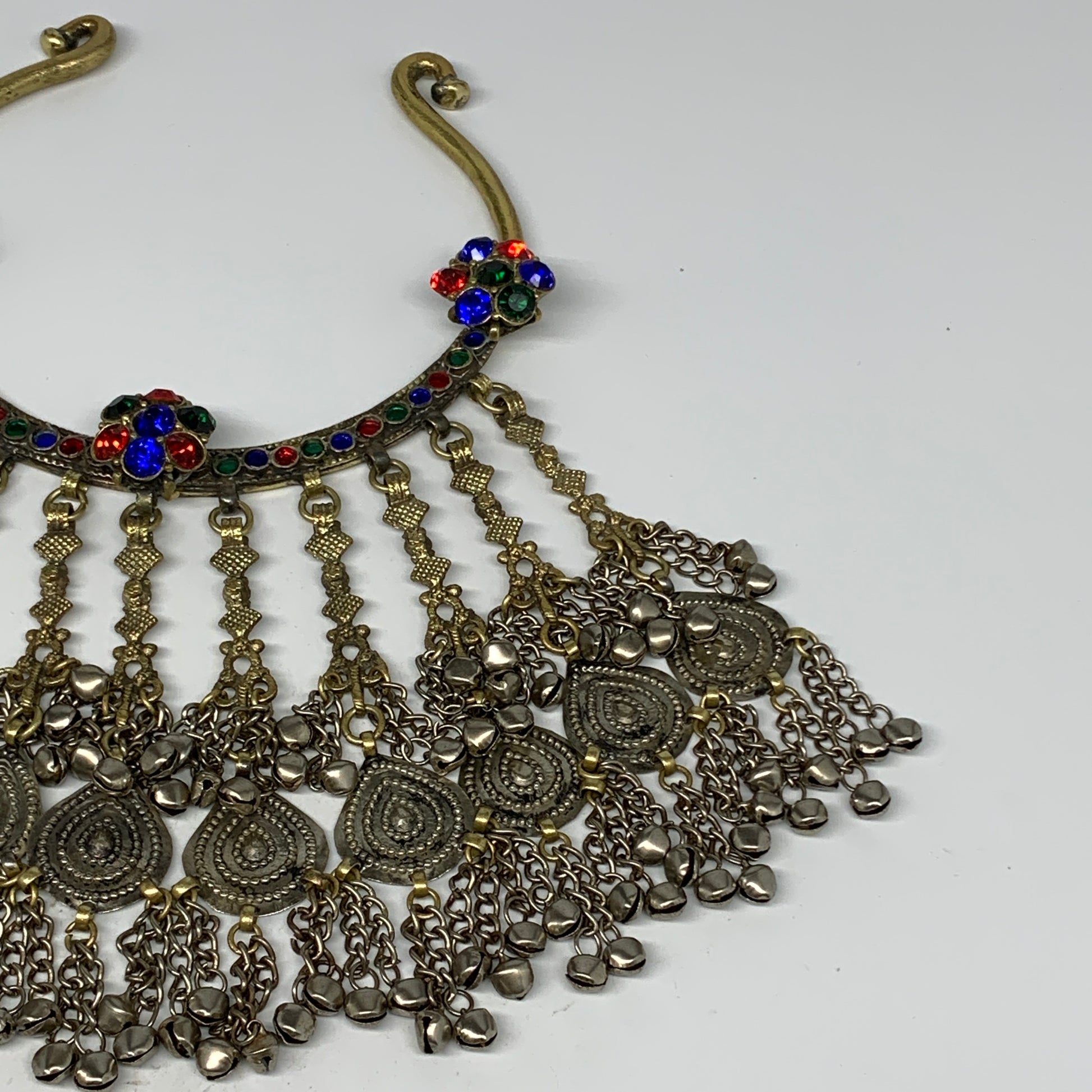 325g, 11"x5.25"Kuchi Turkmen Choker Necklace Multi-Color Tribal Gypsy Beho,B14138
