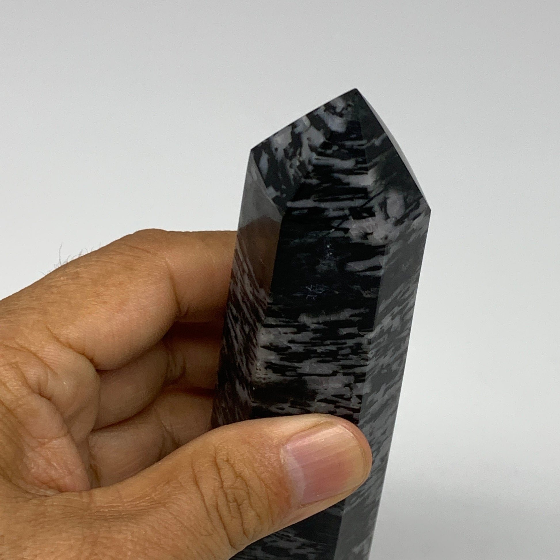 326.8g, 6.4" x 1.5" x 1.3" Indigo Gabro Merlinite Point Tower @Madagascar,B18312