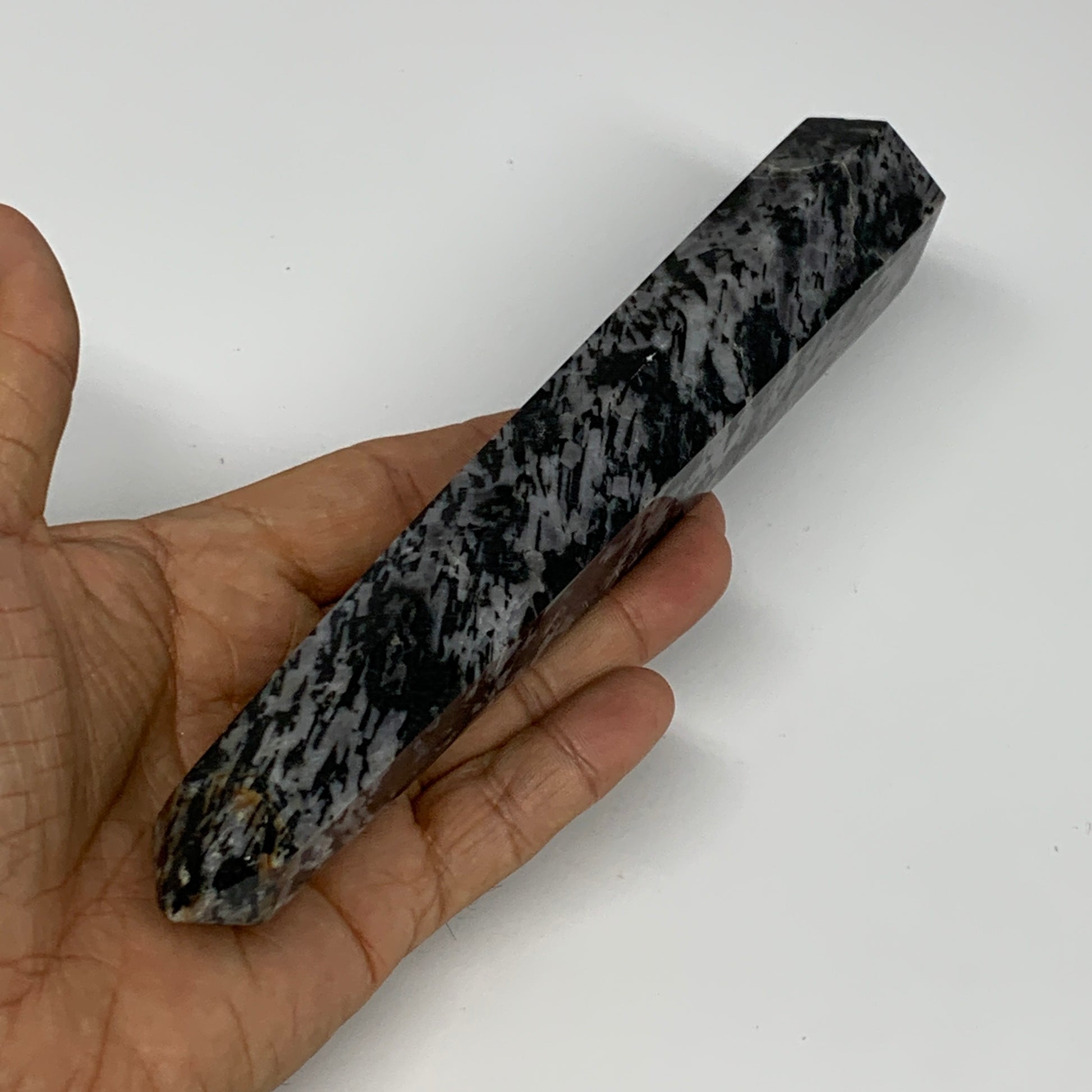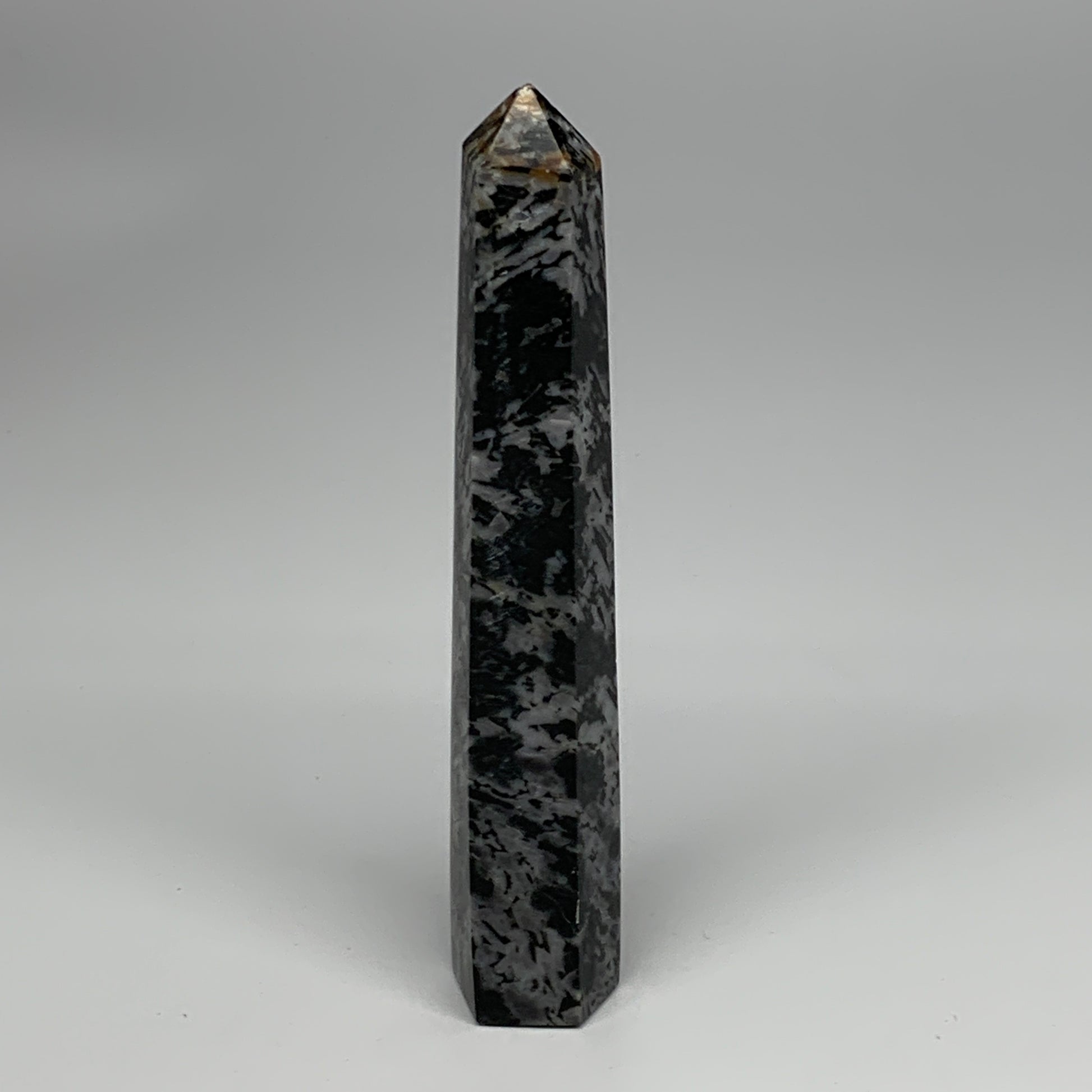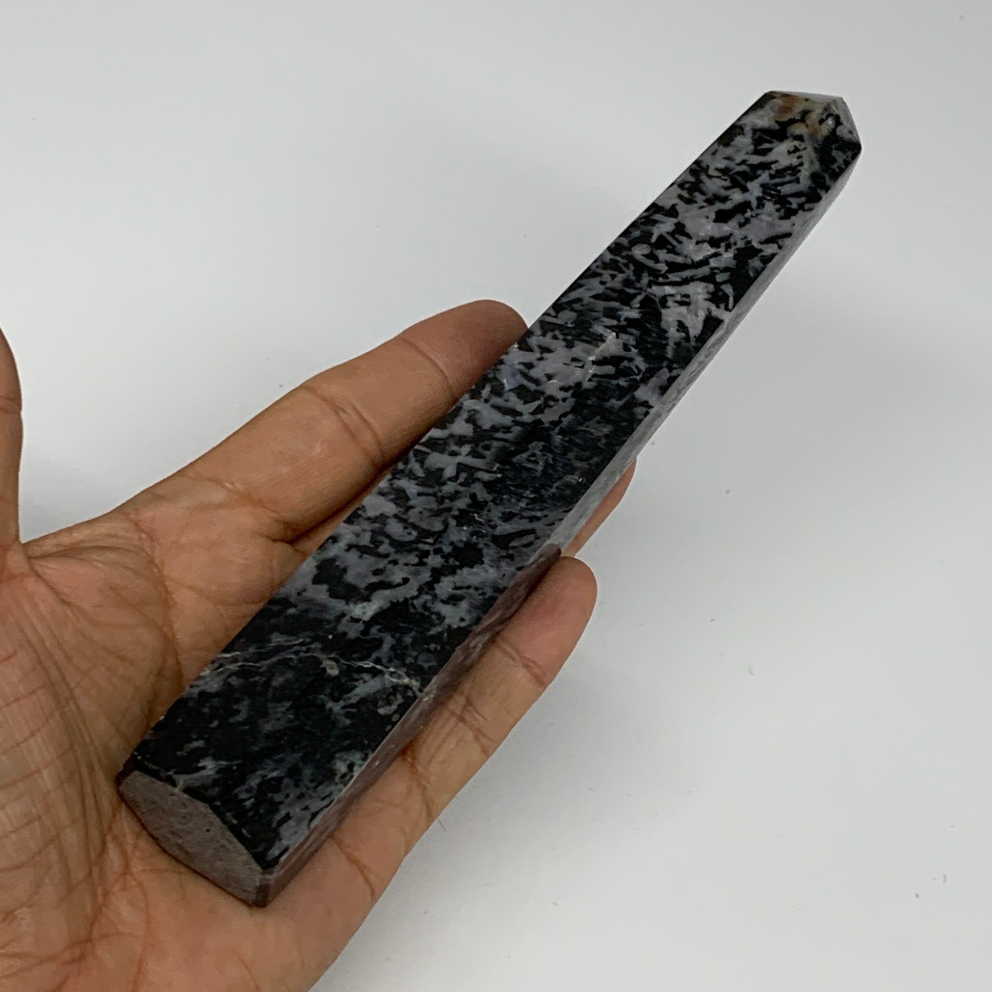 327.2g, 7.4" x 1.4" x 1.2" Indigo Gabro Merlinite Point Tower @Madagascar,B18385