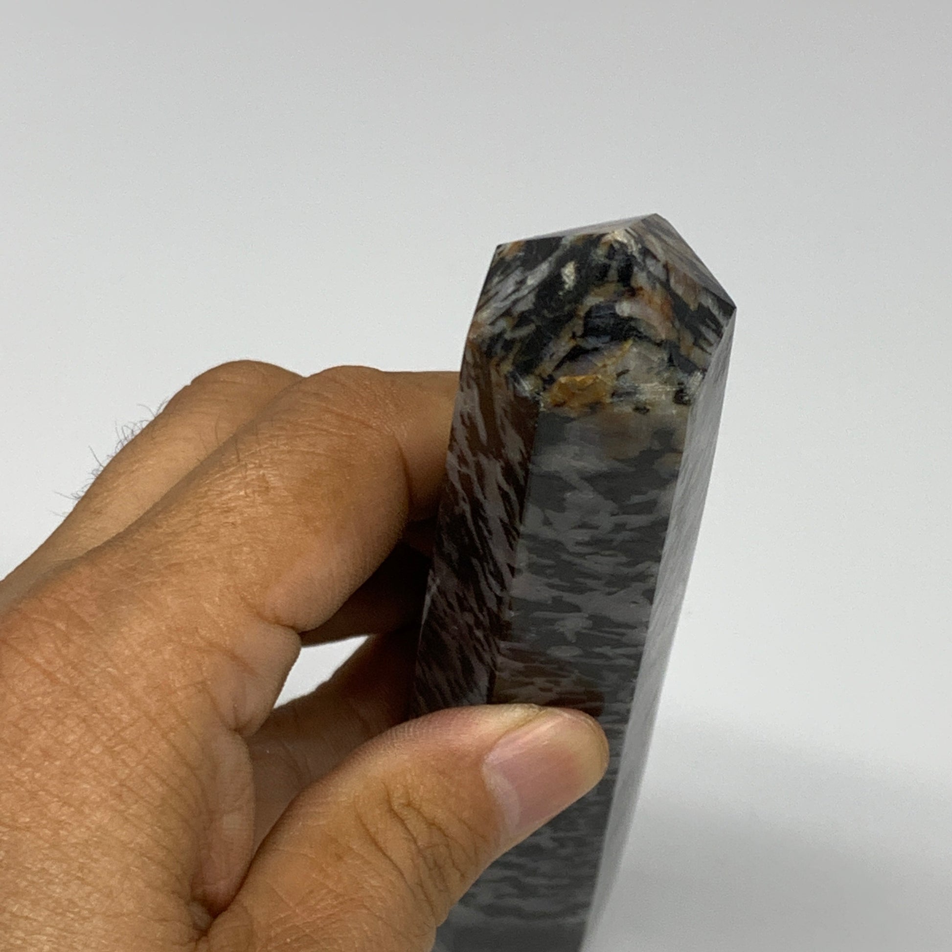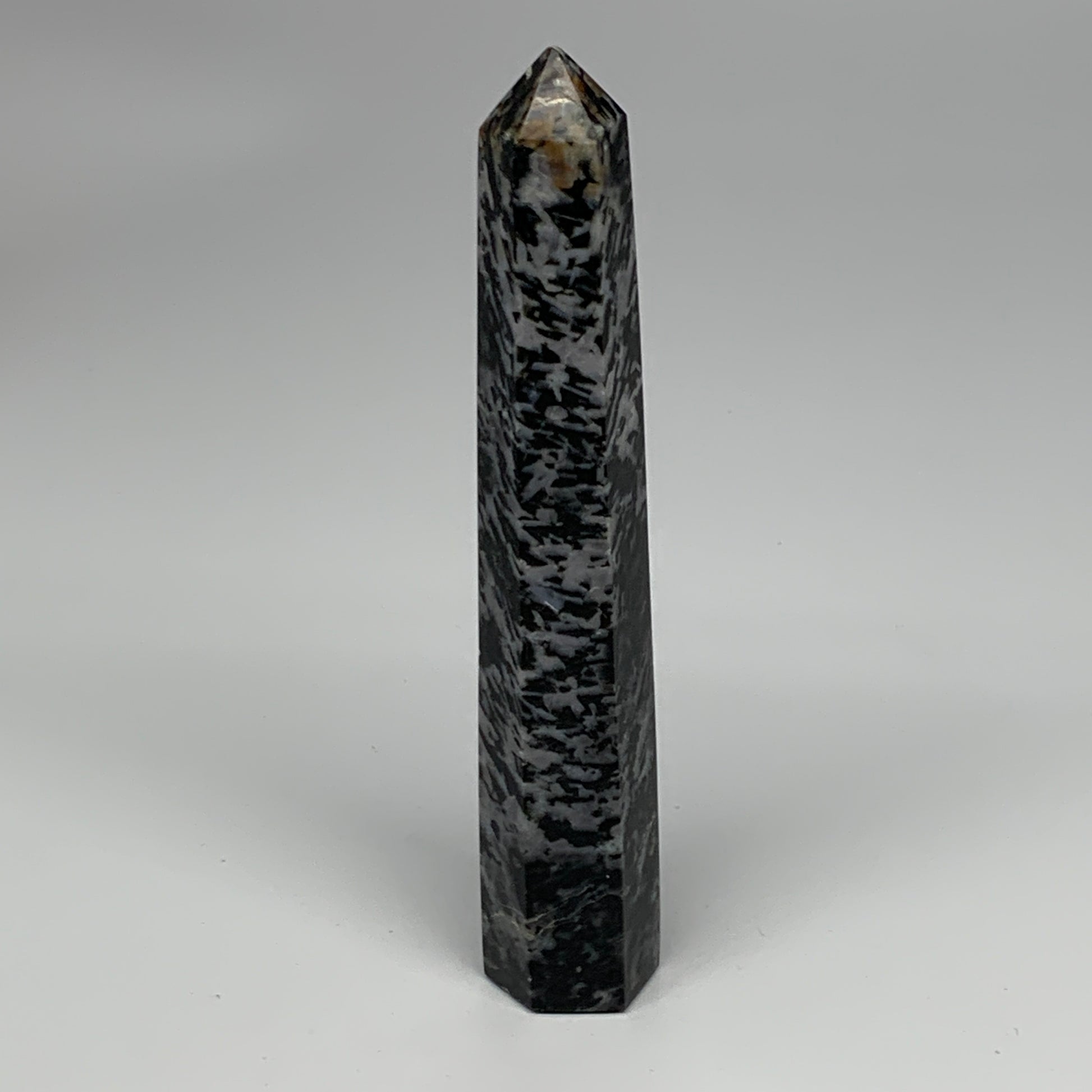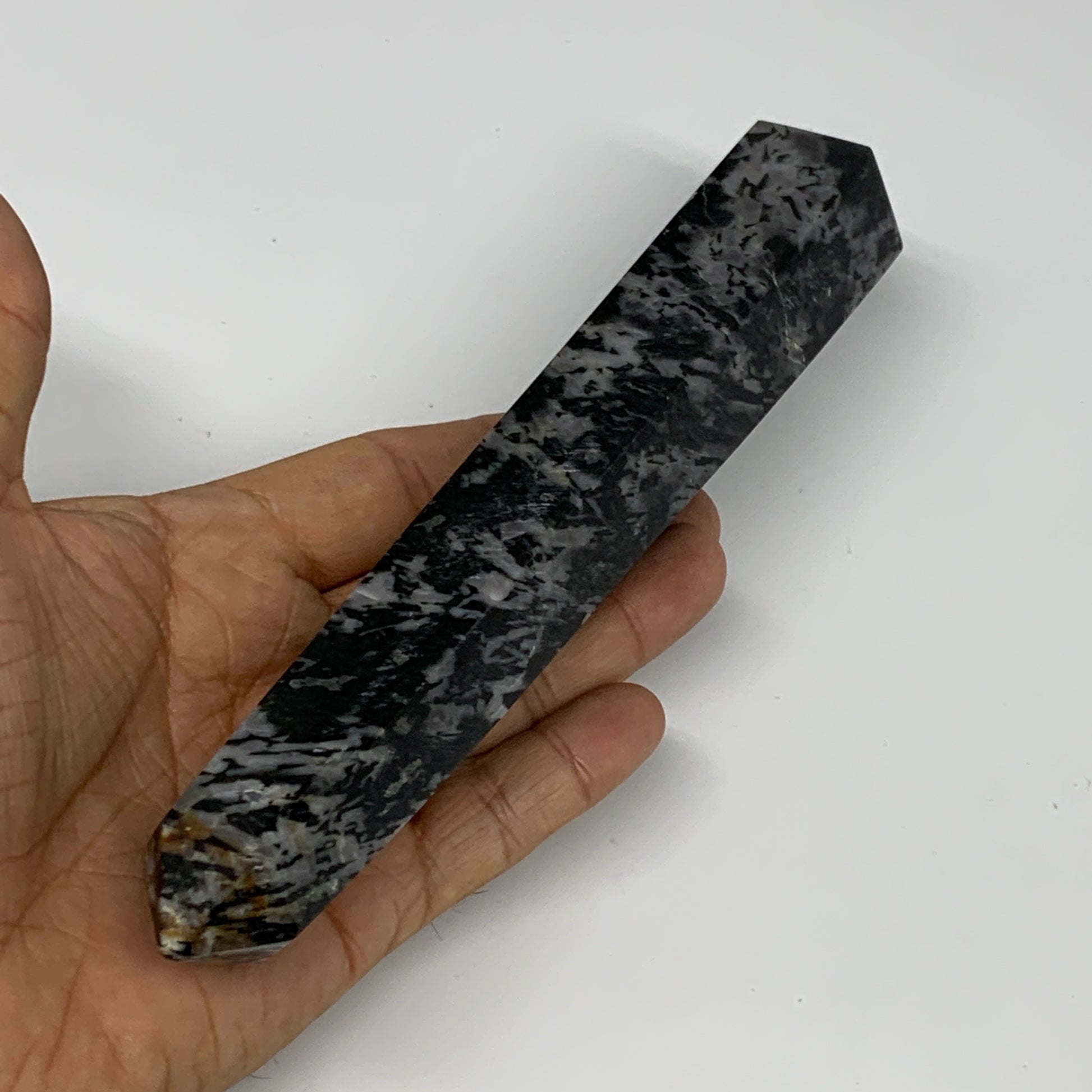 327.2g, 7.4" x 1.4" x 1.2" Indigo Gabro Merlinite Point Tower @Madagascar,B18385