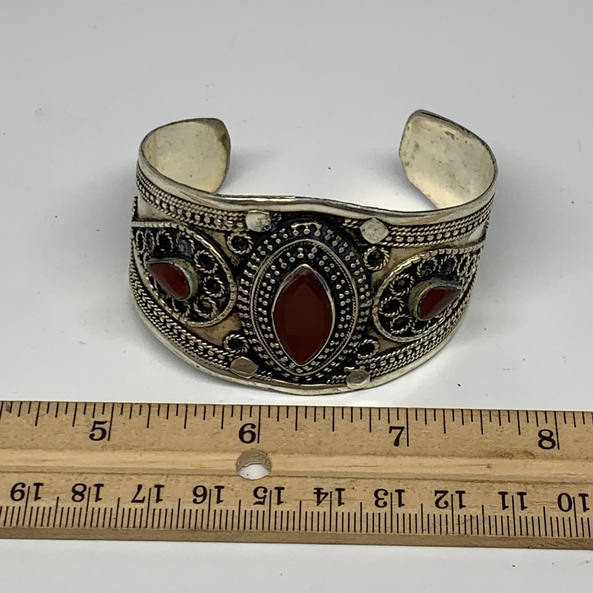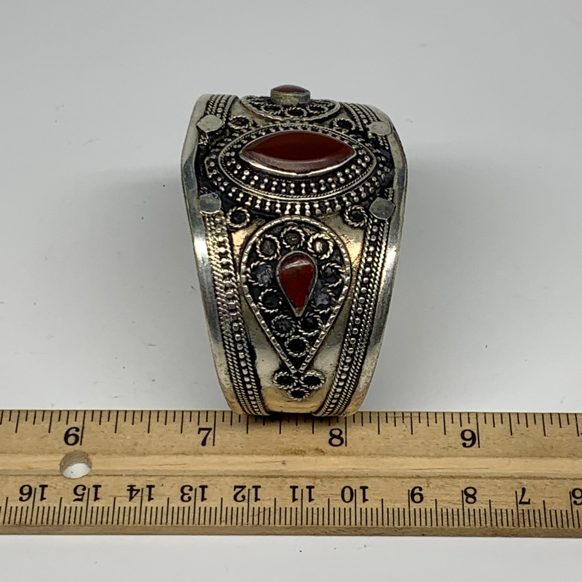 33.1g, 1.6" Red Carnelian Turkmen Cuff Bracelet Tribal Small Marquise, B13438