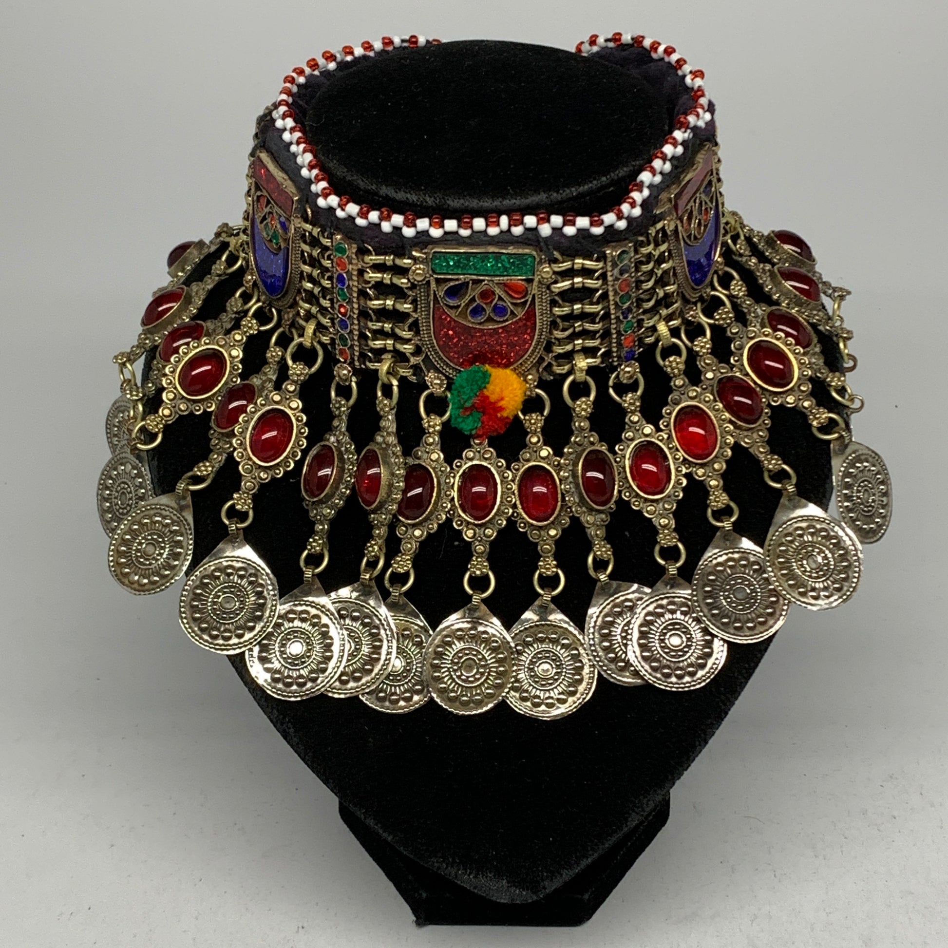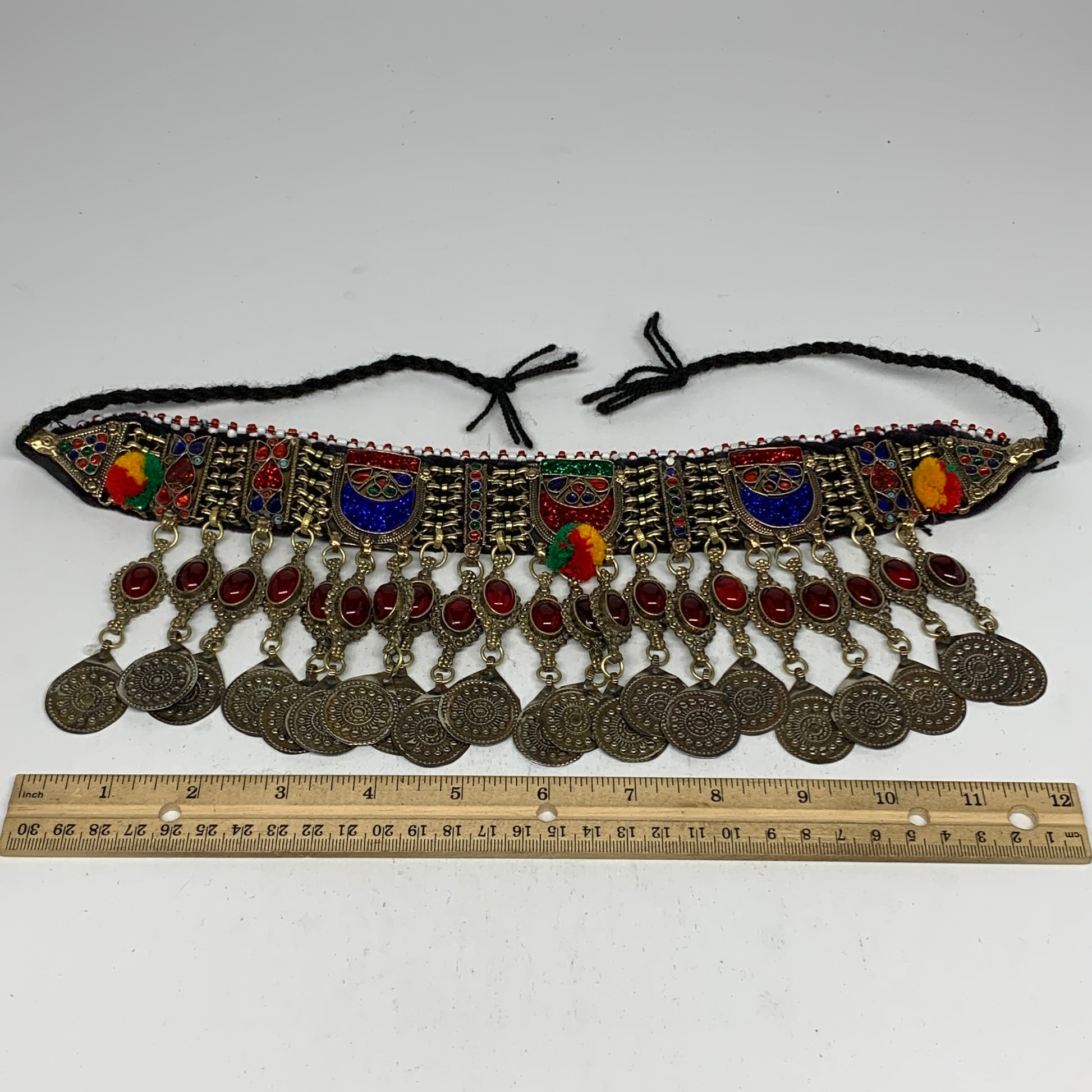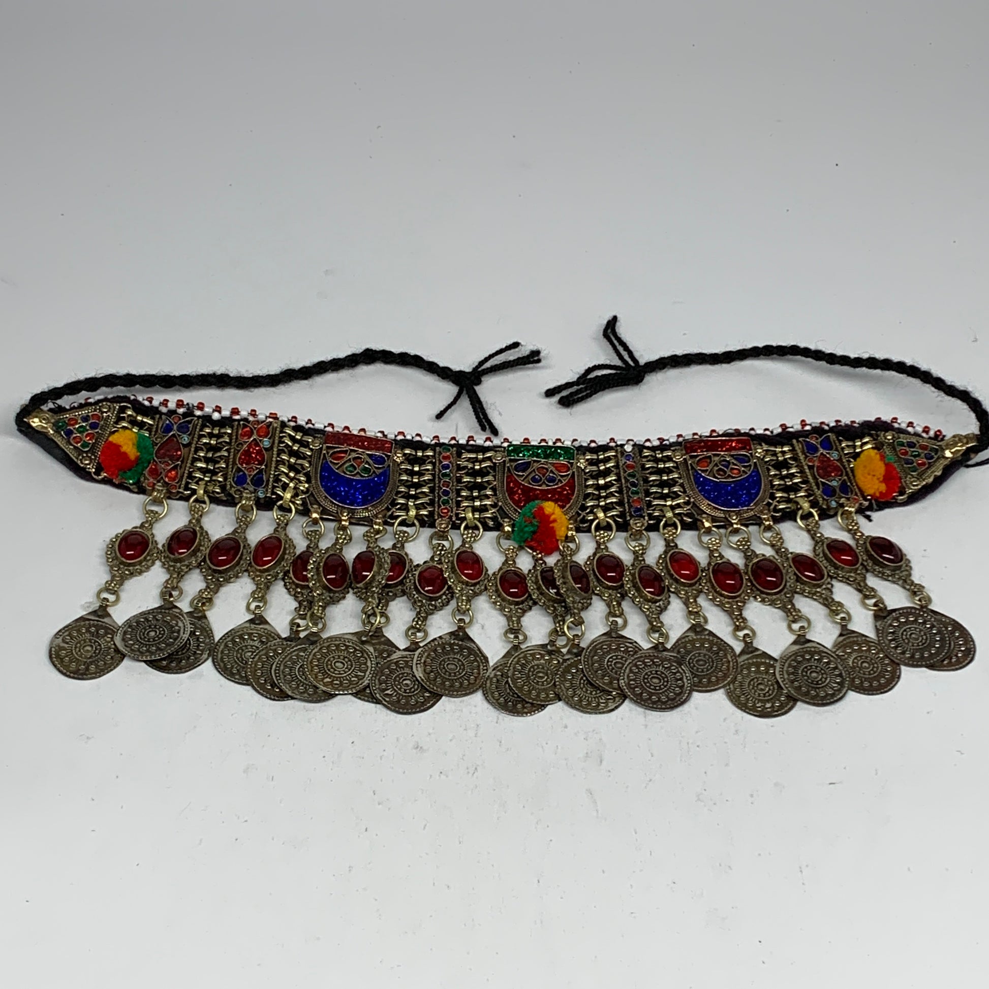 330g, 13.5"x4.5"Kuchi Choker Necklace Multi-Color Tribal Gypsy Bohemian,B14090
