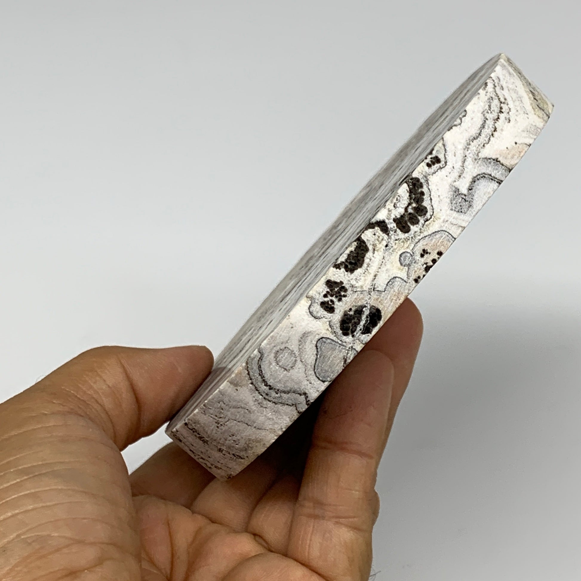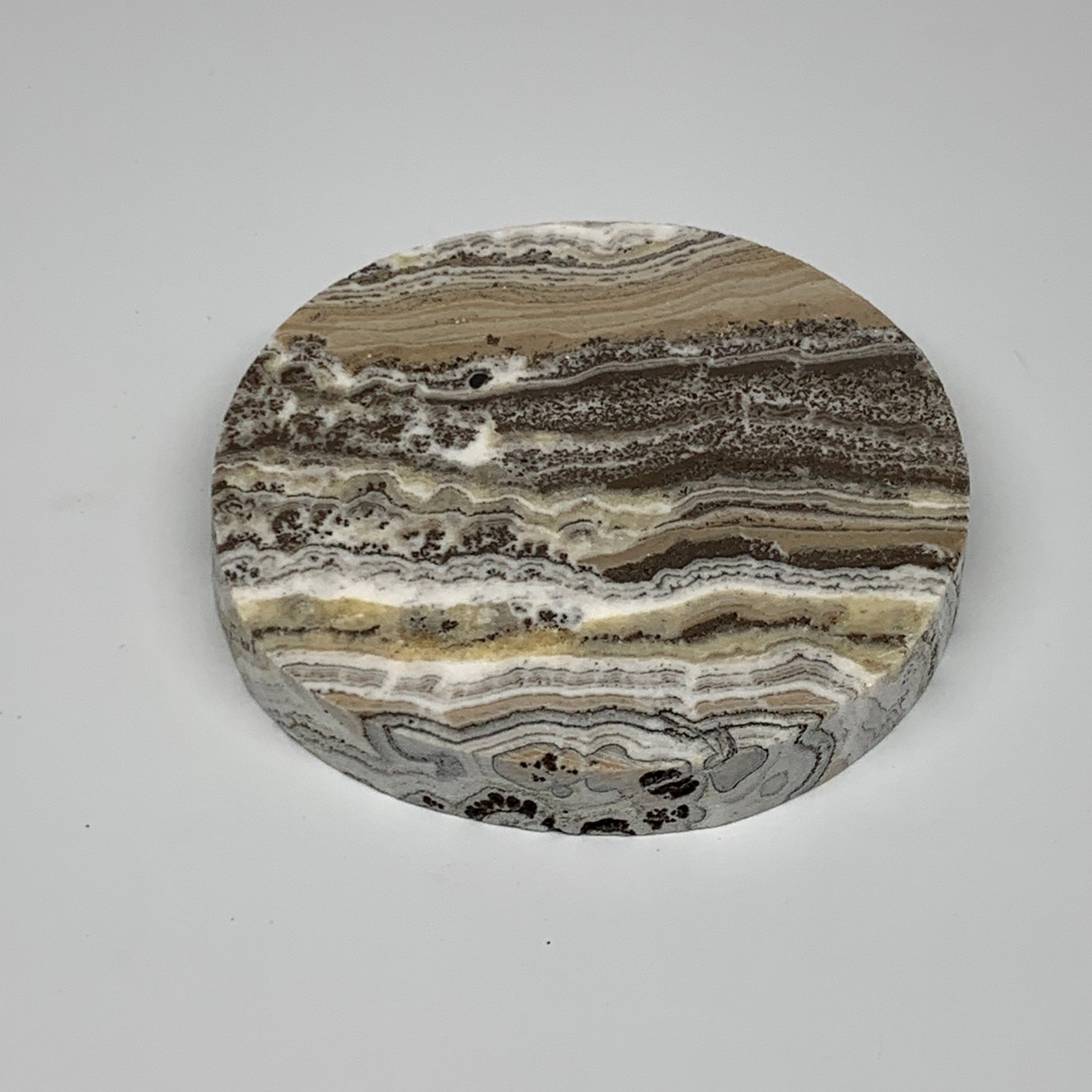 332.3g, 4.1"x0.7", Natural Picture Calcite Round Disc/Coaster @Mexico, B25477