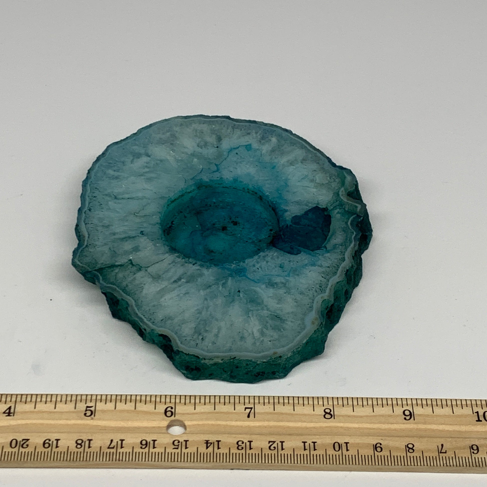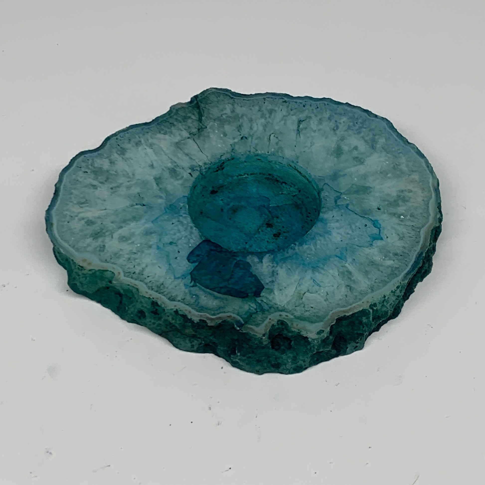 334.3g, 4.9"x4.4"x0.6", Dyed Agate Tea Light Candle Holder Crystal, B25573