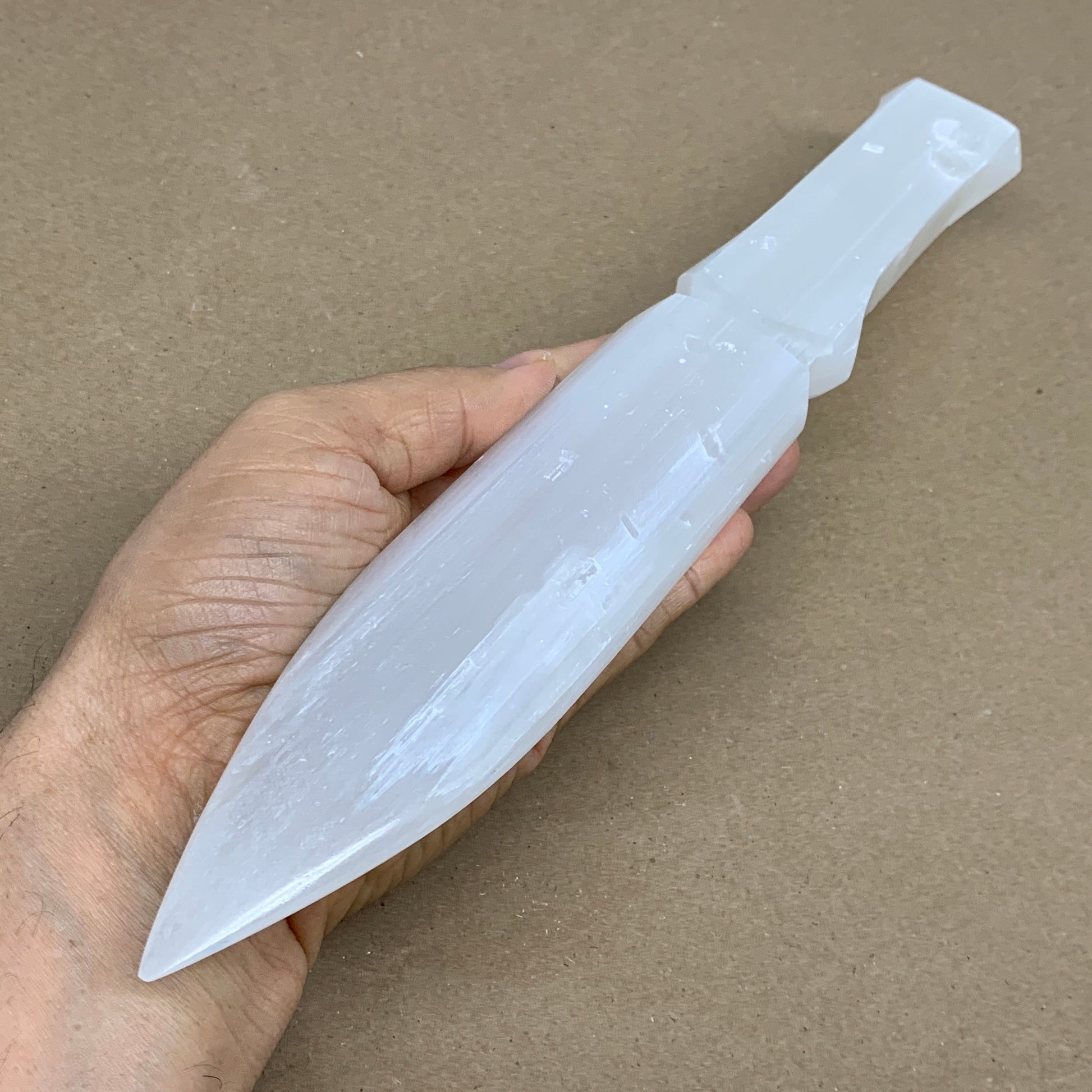 338g, 11.5"x1.7"x0.7", Natural Selenite Crystal Dagger (Satin Spar), B36233