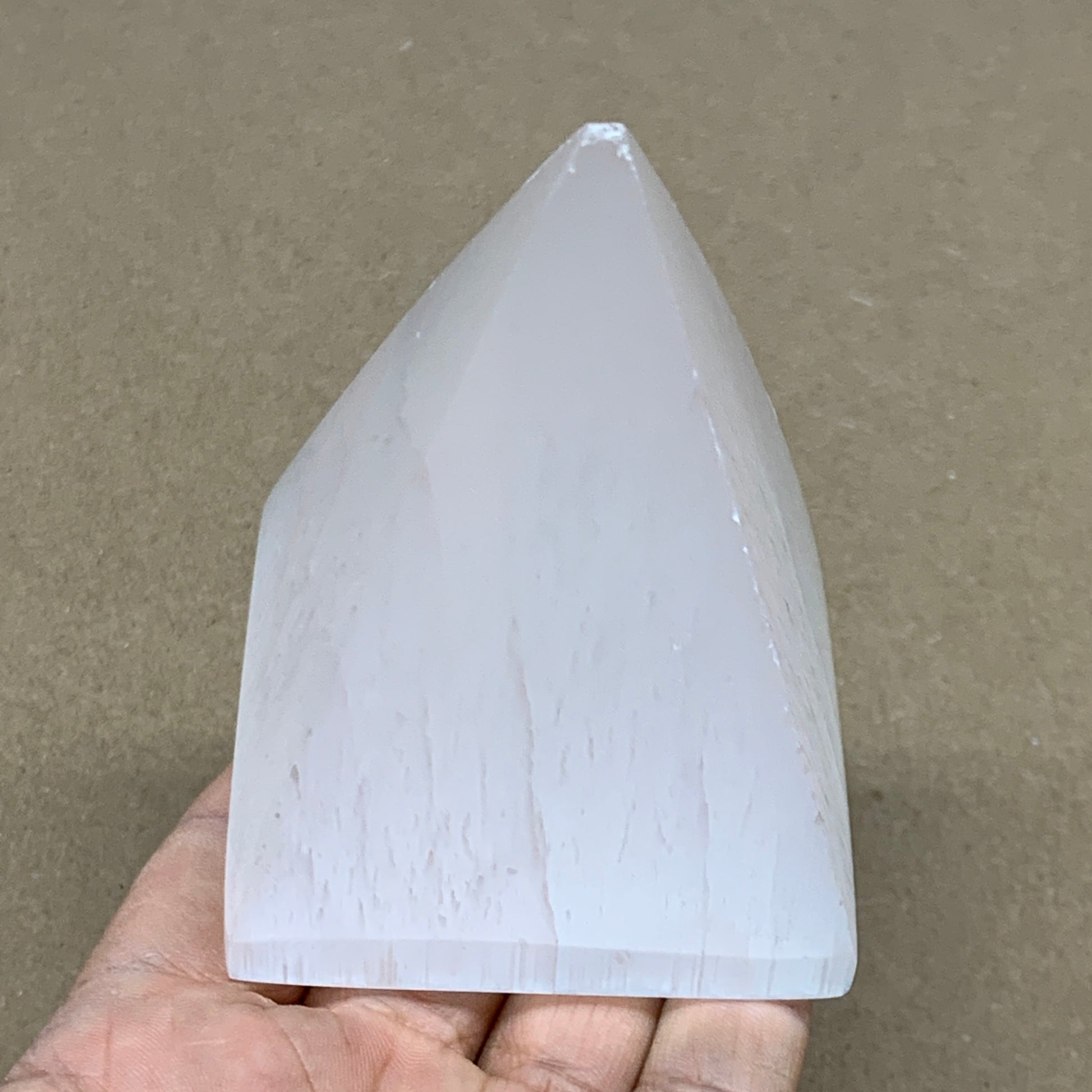 340g, 3.4"x2.5" White Selenite/Satin Spar Pyramid Crystal @Morocco, B24158