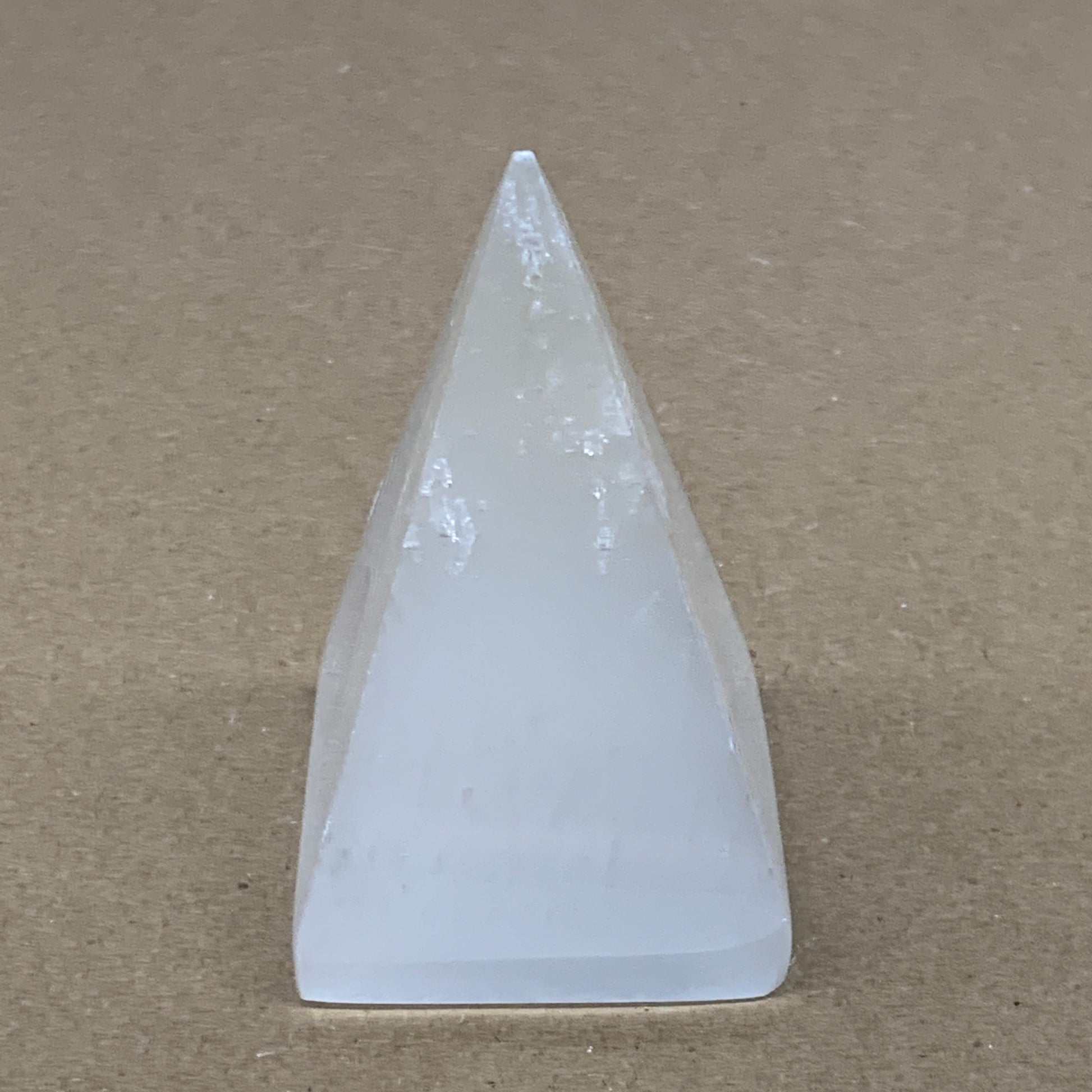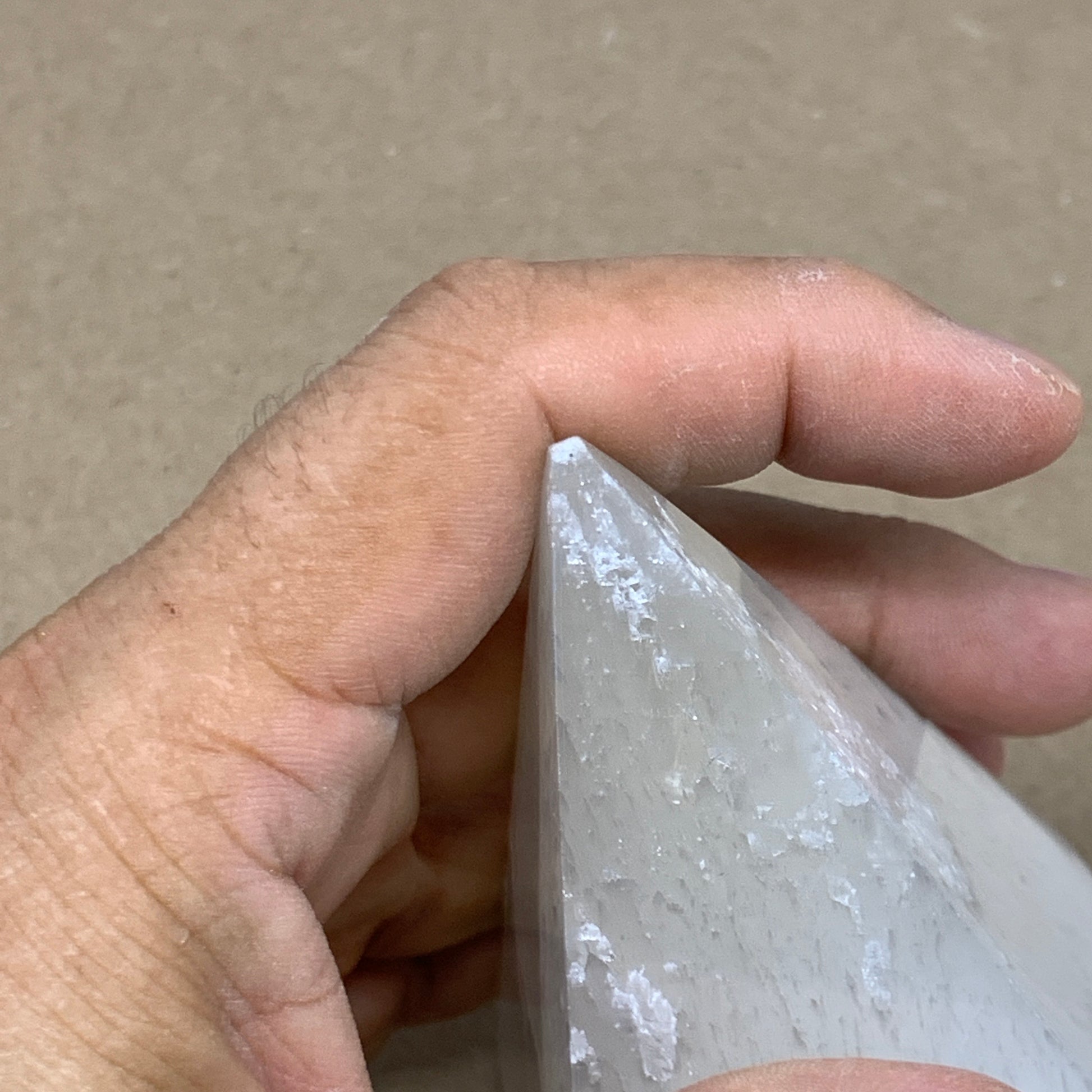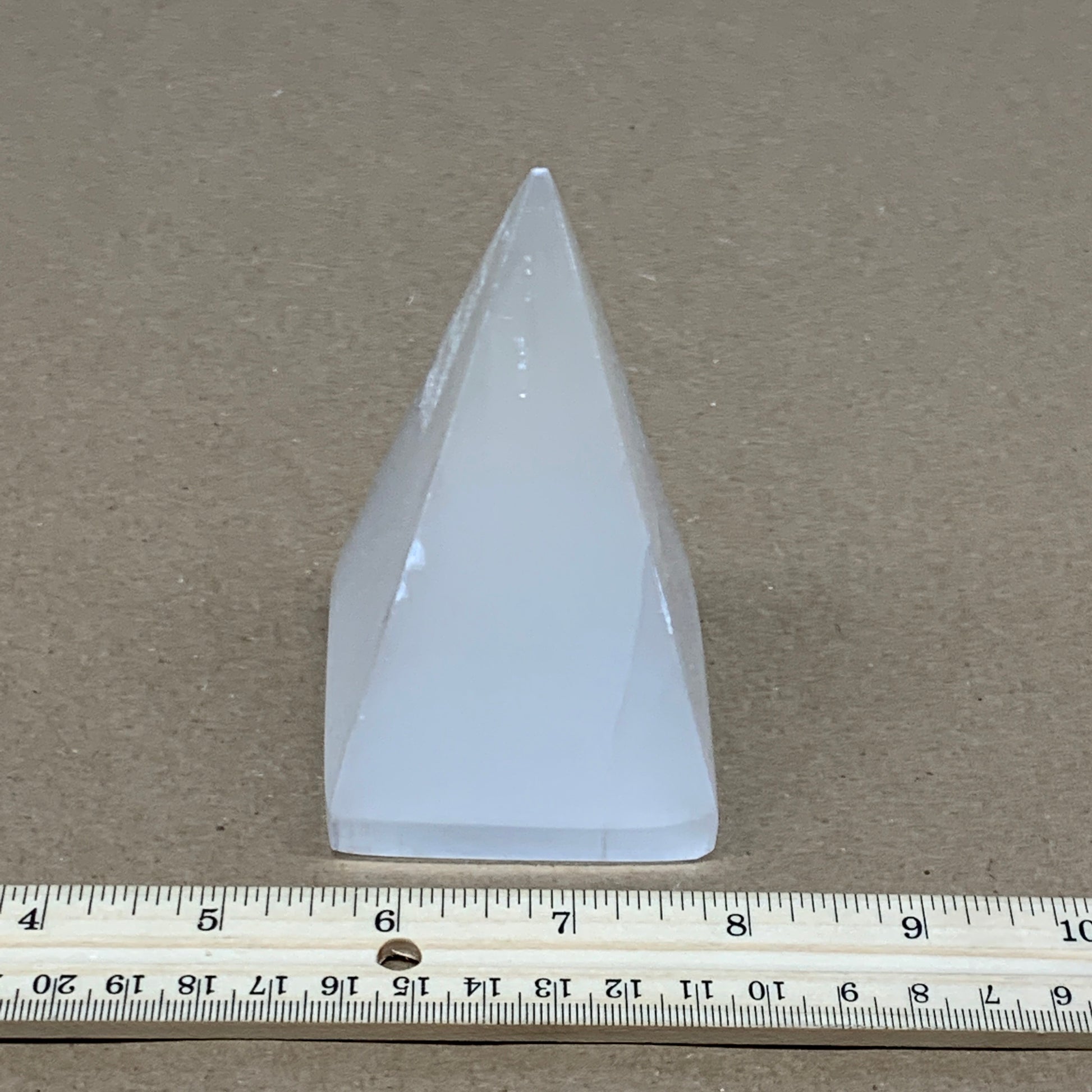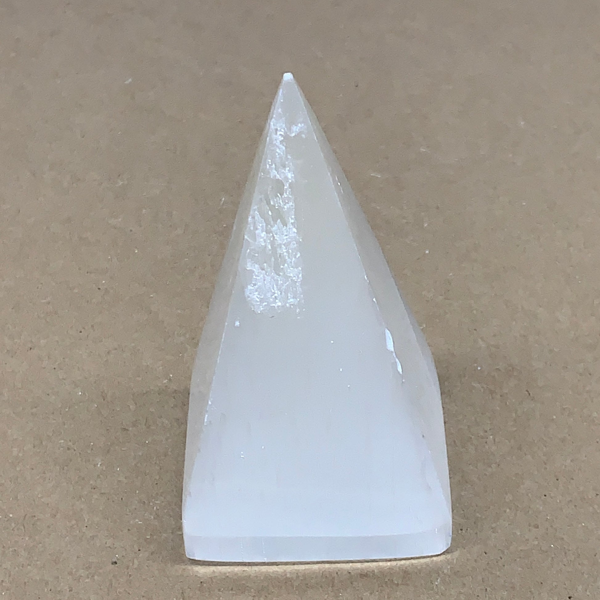 343.4g, 4"x2.4" White Selenite/Satin Spar Pyramid Crystal @Morocco, B24166