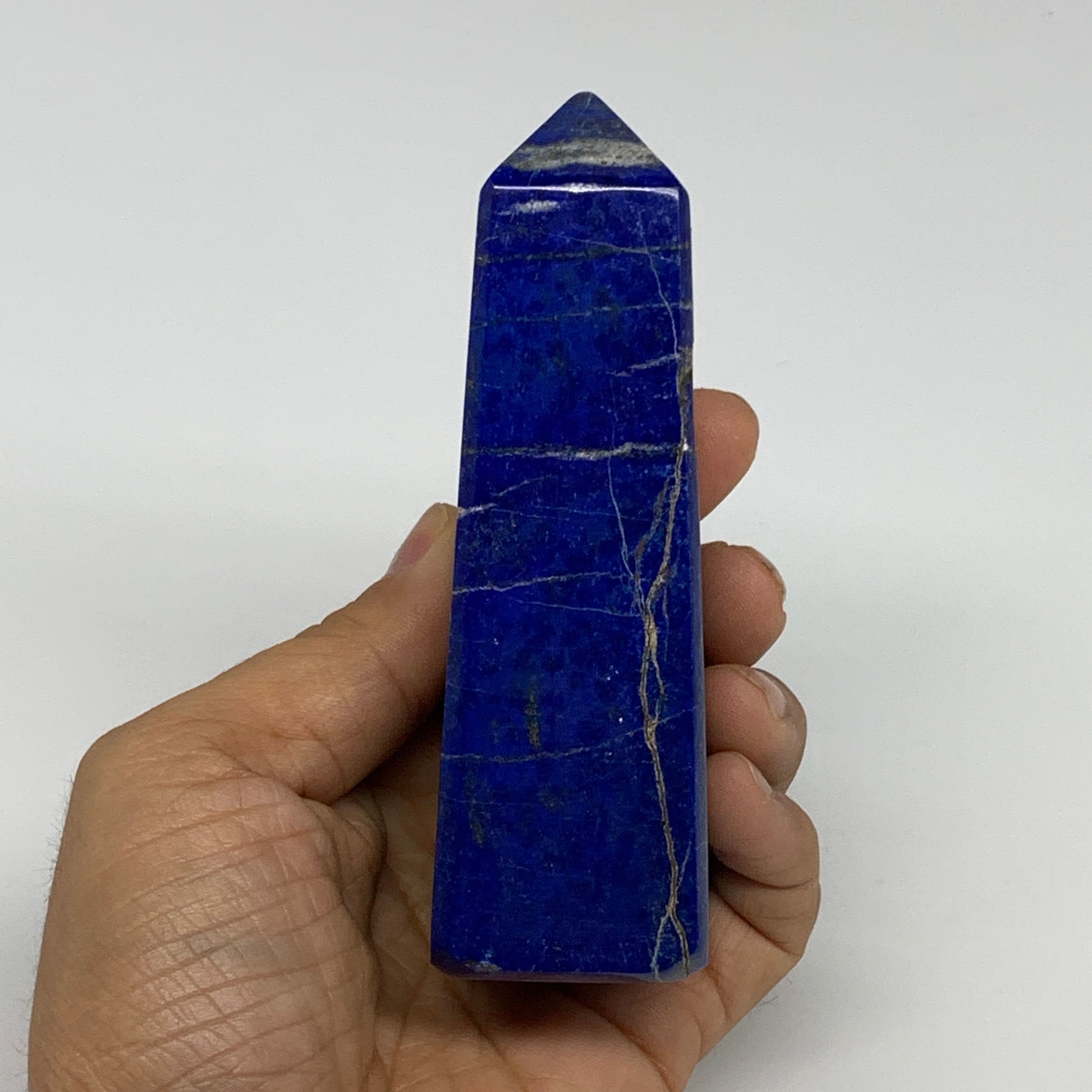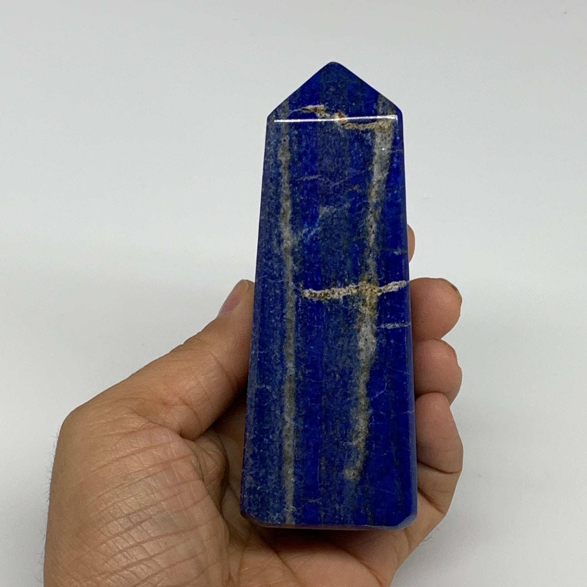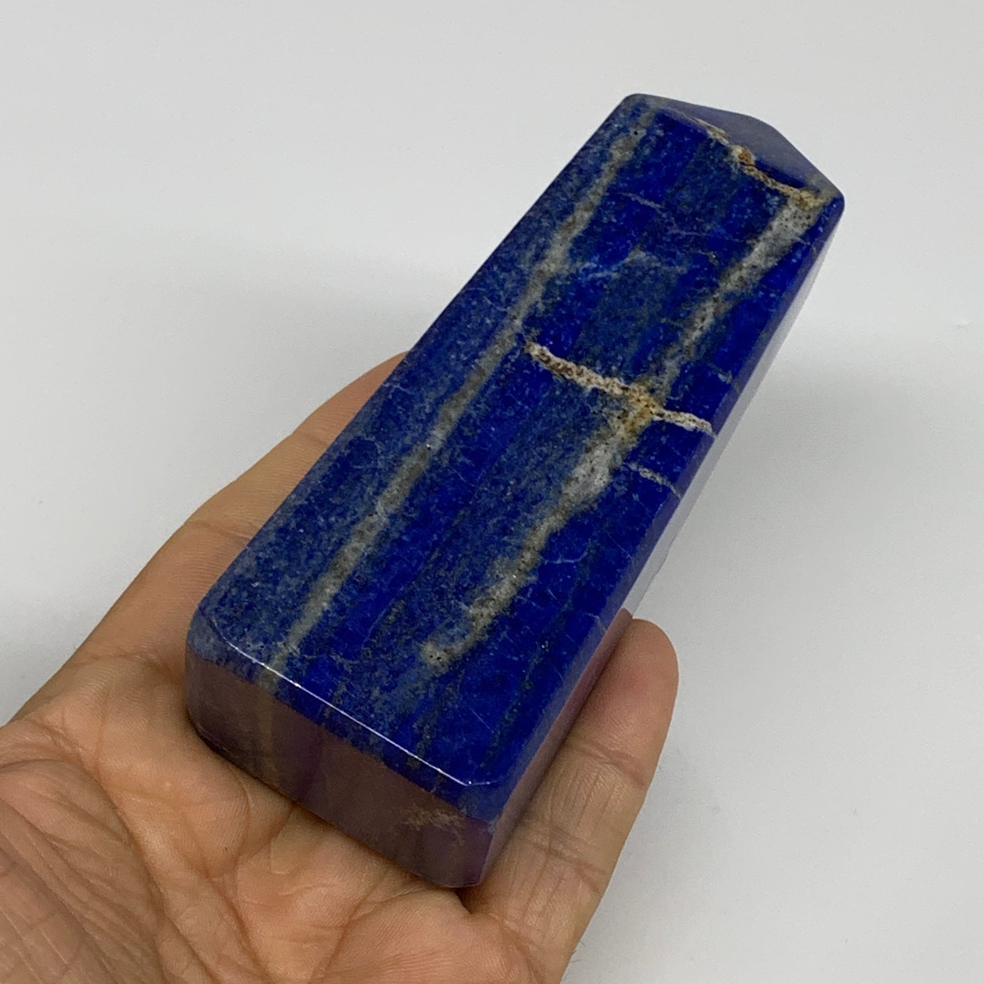 344.7g, 4.4"x1.6"x1.3", Natural Lapis Lazuli Tower Point Obelisk Afghanistan,B30500