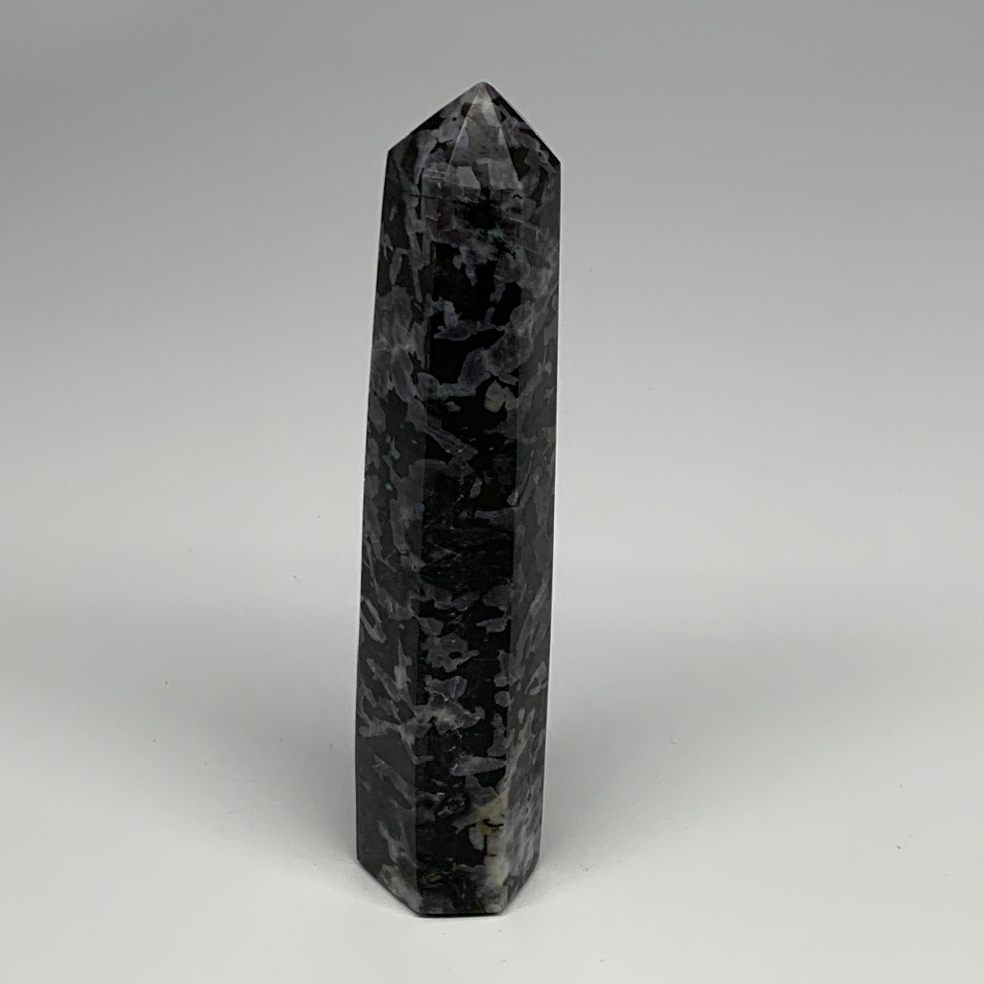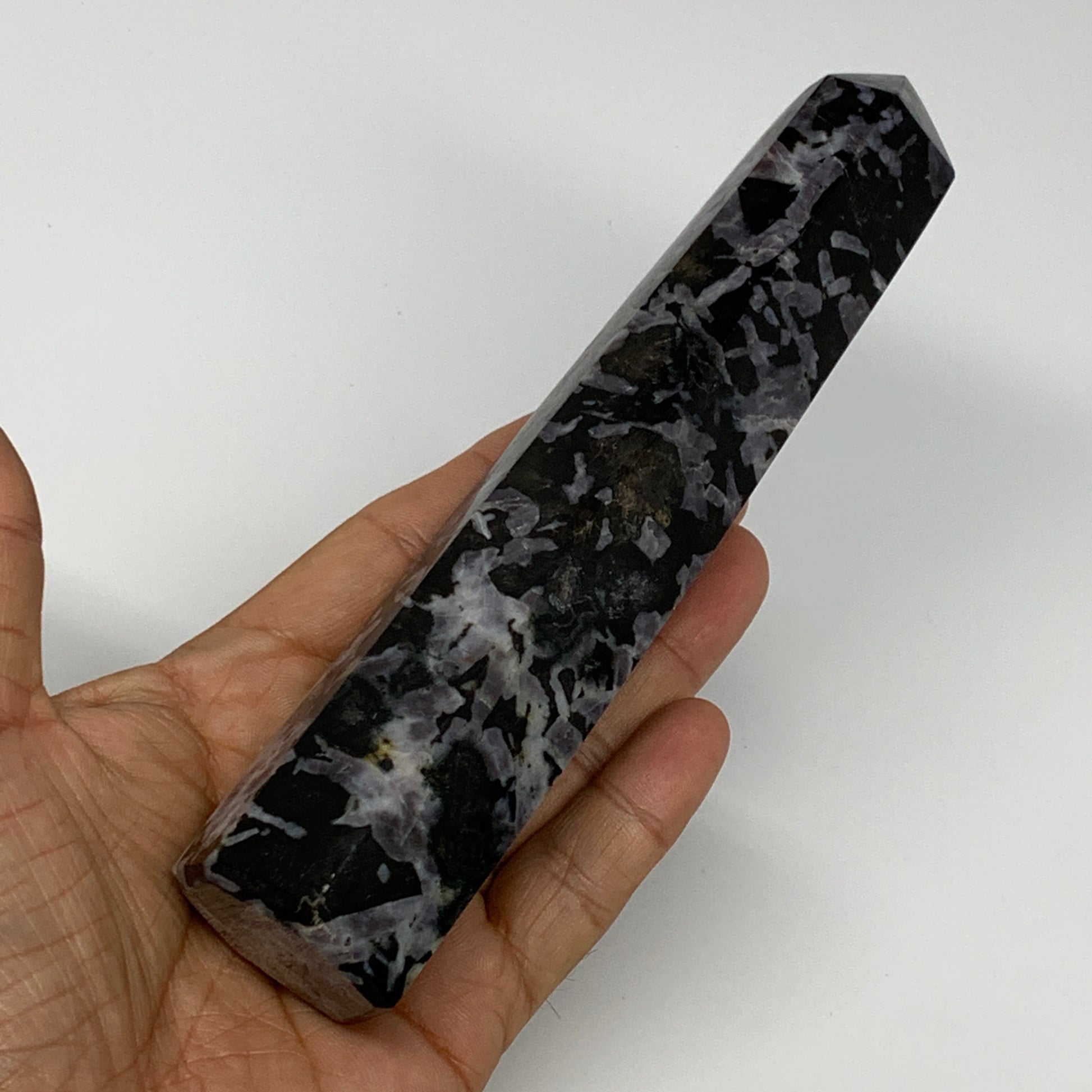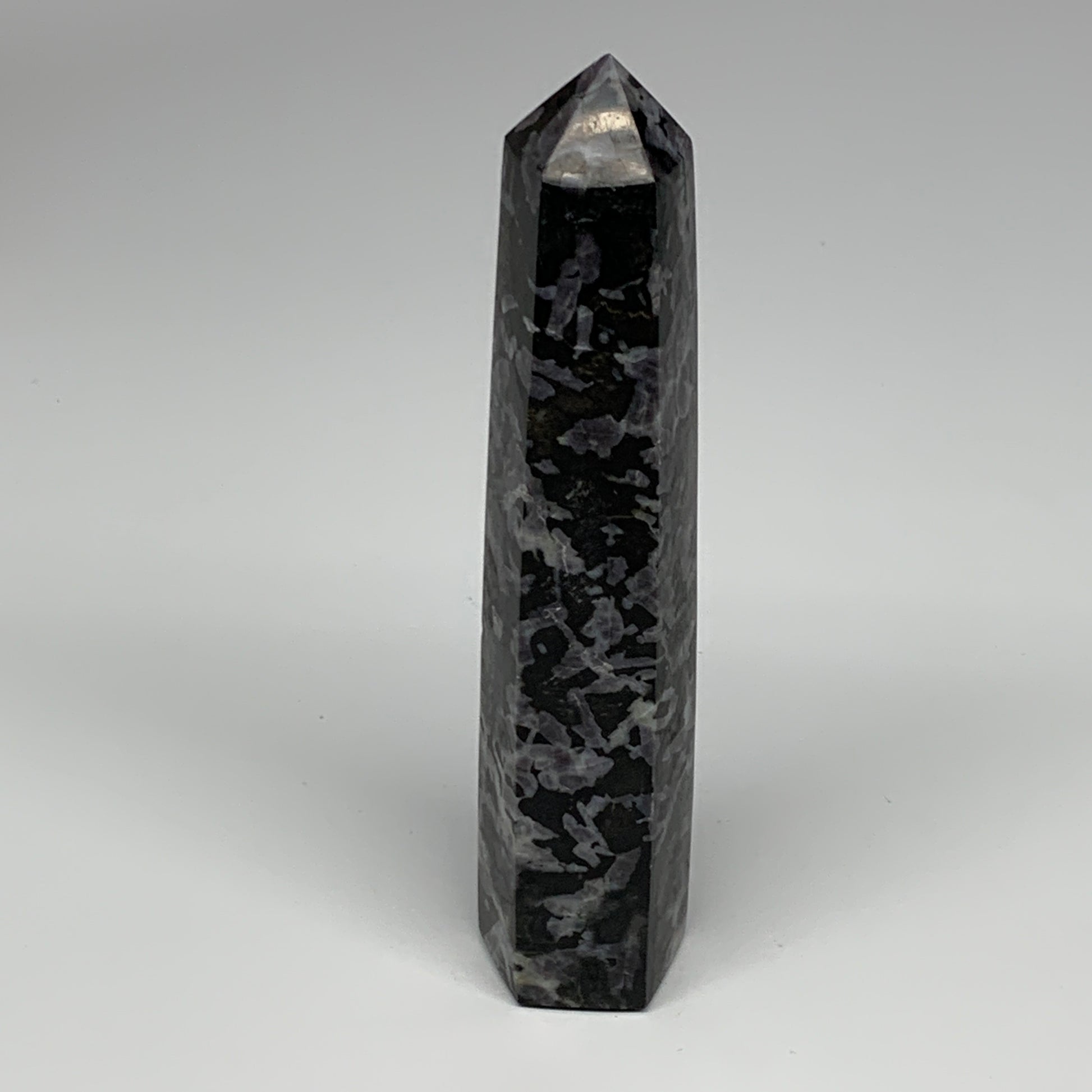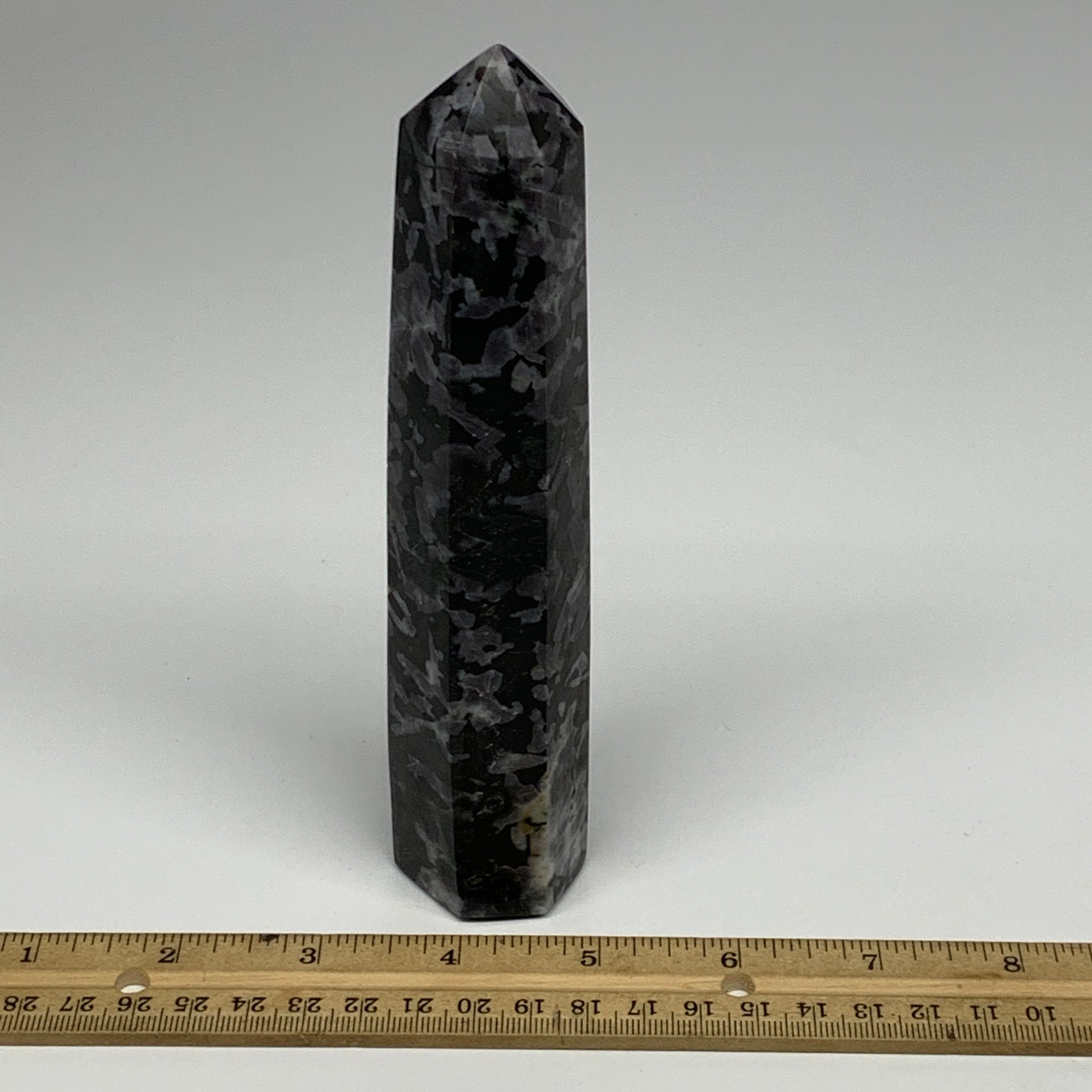 345.4g, 6.8" x 1.5" x 1.2" Indigo Gabro Merlinite Point Tower @Madagascar,B18346