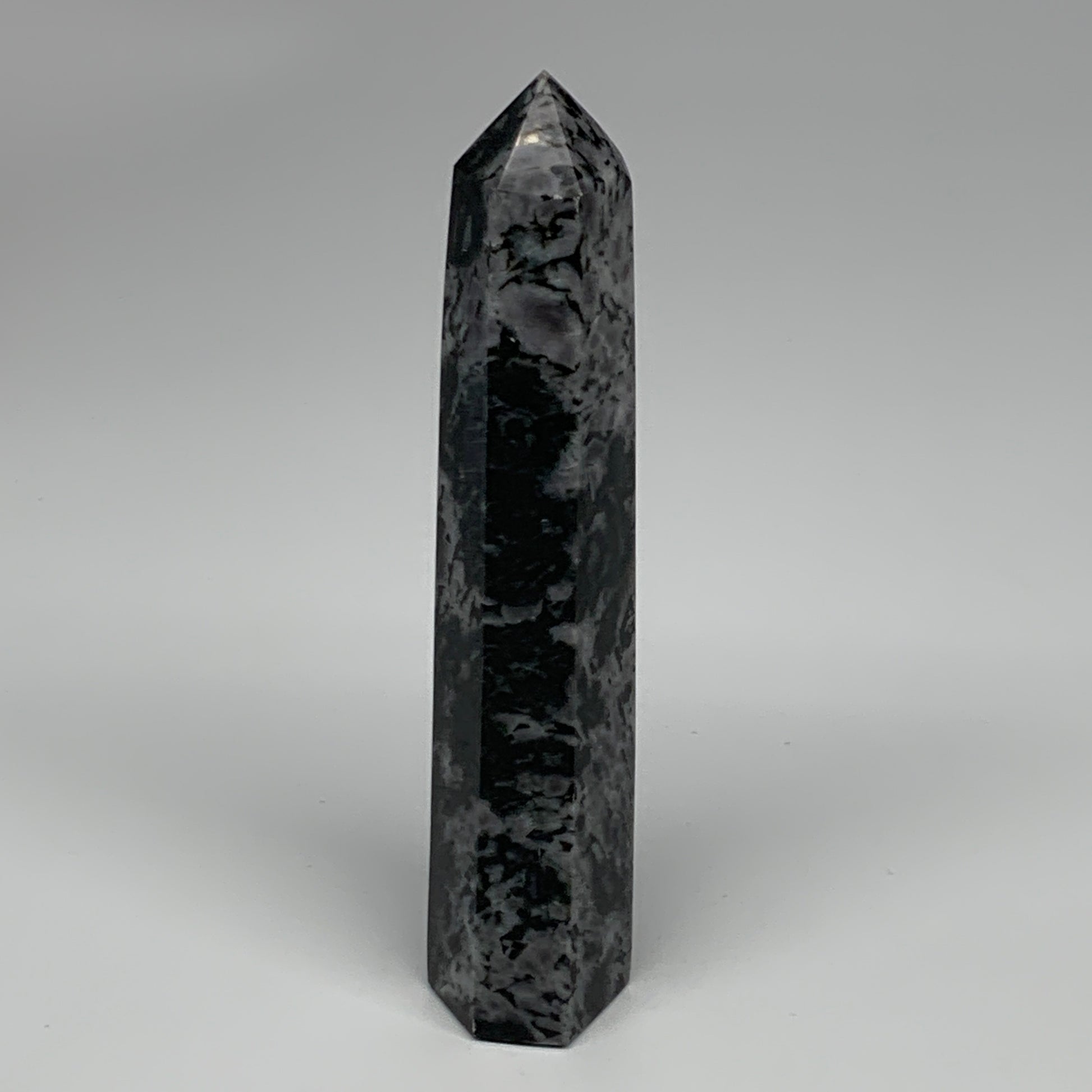 347.3g, 6.9" x 1.5" x 1.3" Indigo Gabro Merlinite Point Tower @Madagascar,B18360