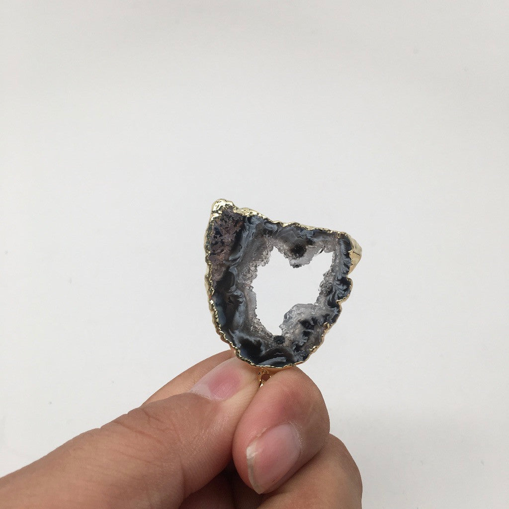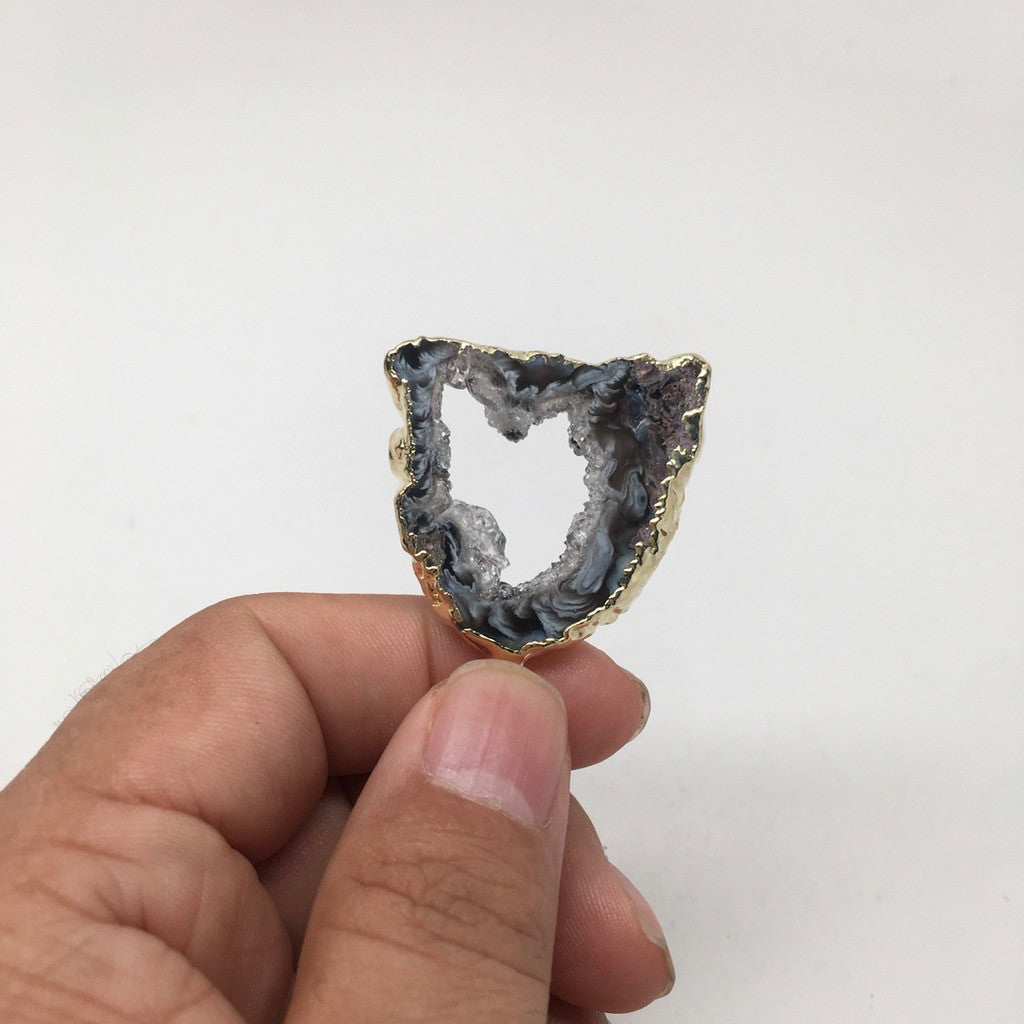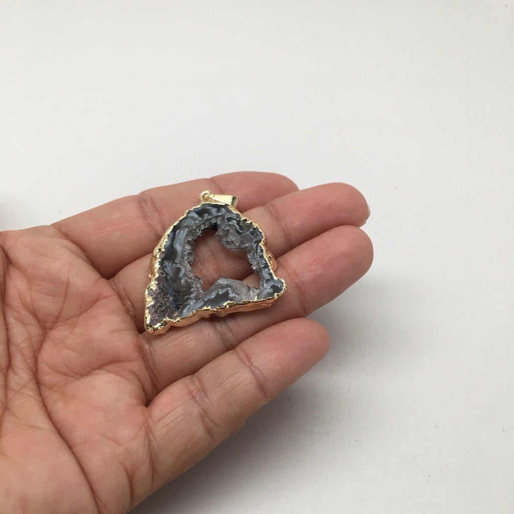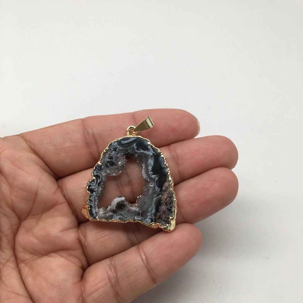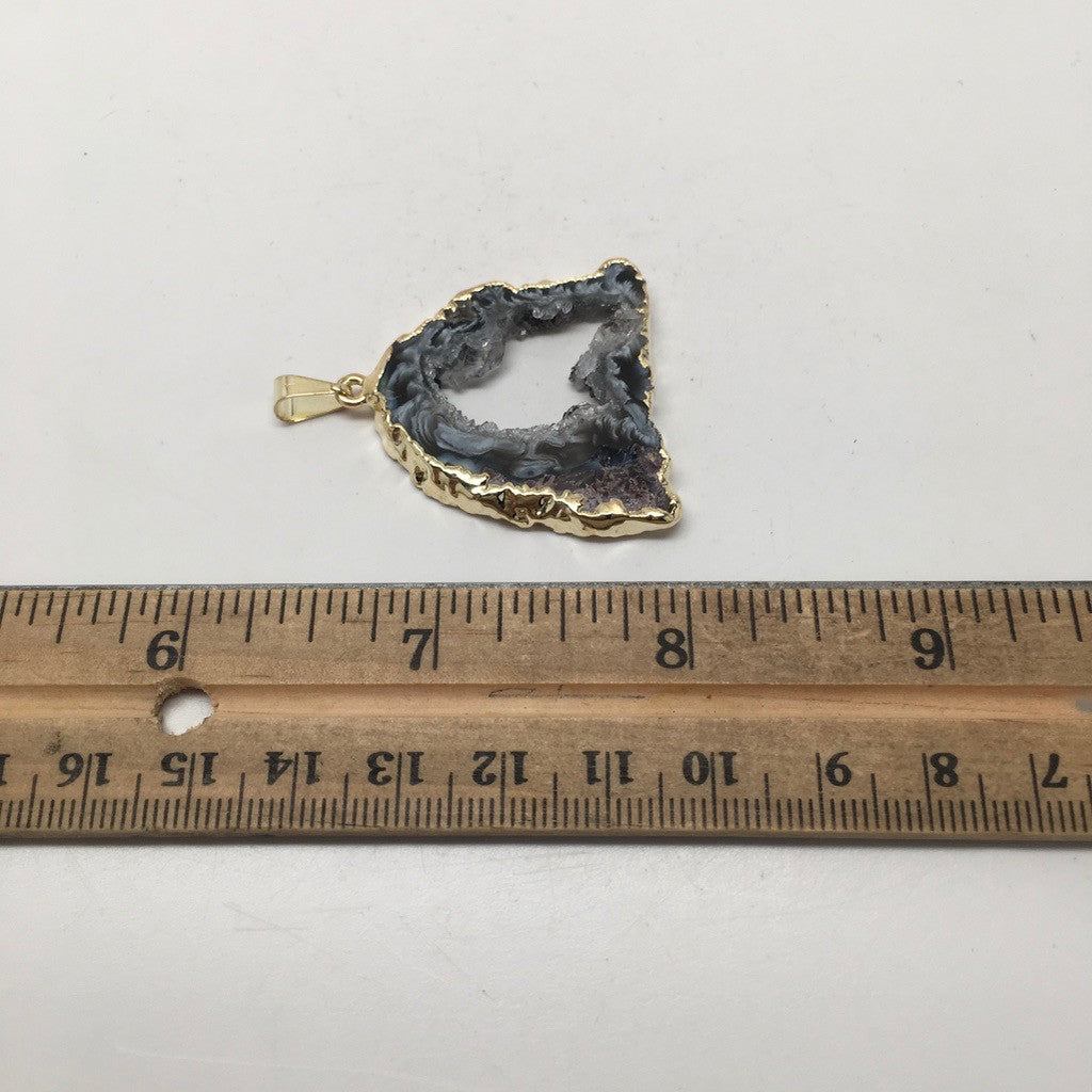 35 Cts Agate Druzy Slice Geode Gold Plated Pendant Handmade from Brazil,Bp859