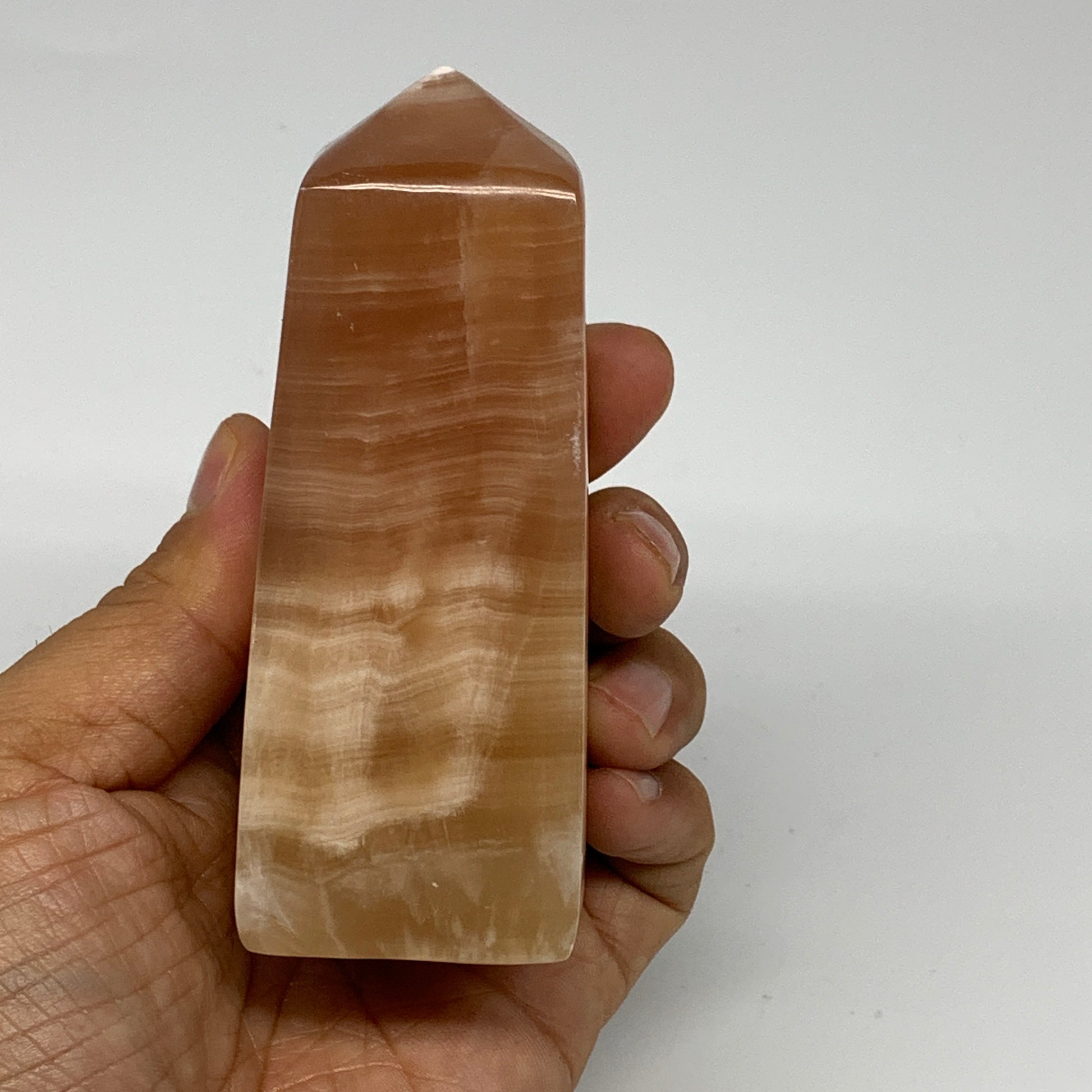 287.6g, 4"x1.4"x1.5", Honey Calcite Point Tower Obelisk Crystal @Pakistan, B25308