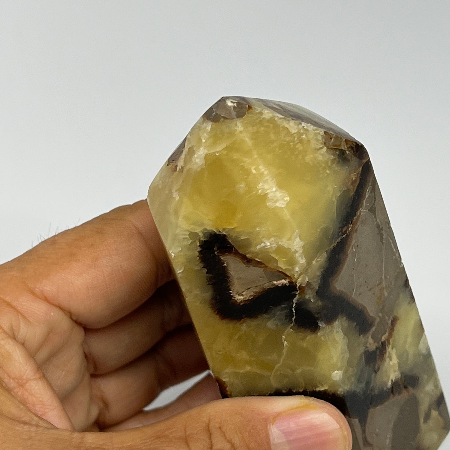 Look at images carefully. Crack looking lines, fractures looking lines are common and normal in natural crystals. Parts of the item might be uneven, unpolished, not as smoothed, dents, rustic, chipped, may come with geodes and may have inclusions..etc. The item may not be fully, glassy or shiny polished, might be semi polished or not as smooth. Those things are very common in natural stones. Imperfections are very normal in these types of products & handmade. Pay attention to the tips and sides like edges.