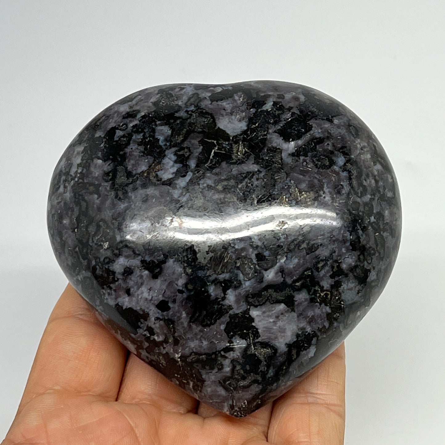 354.7g,3.1"x3.2"x1.4" Indigo Gabro Merlinite Heart Gemstone @Madagascar,B19896