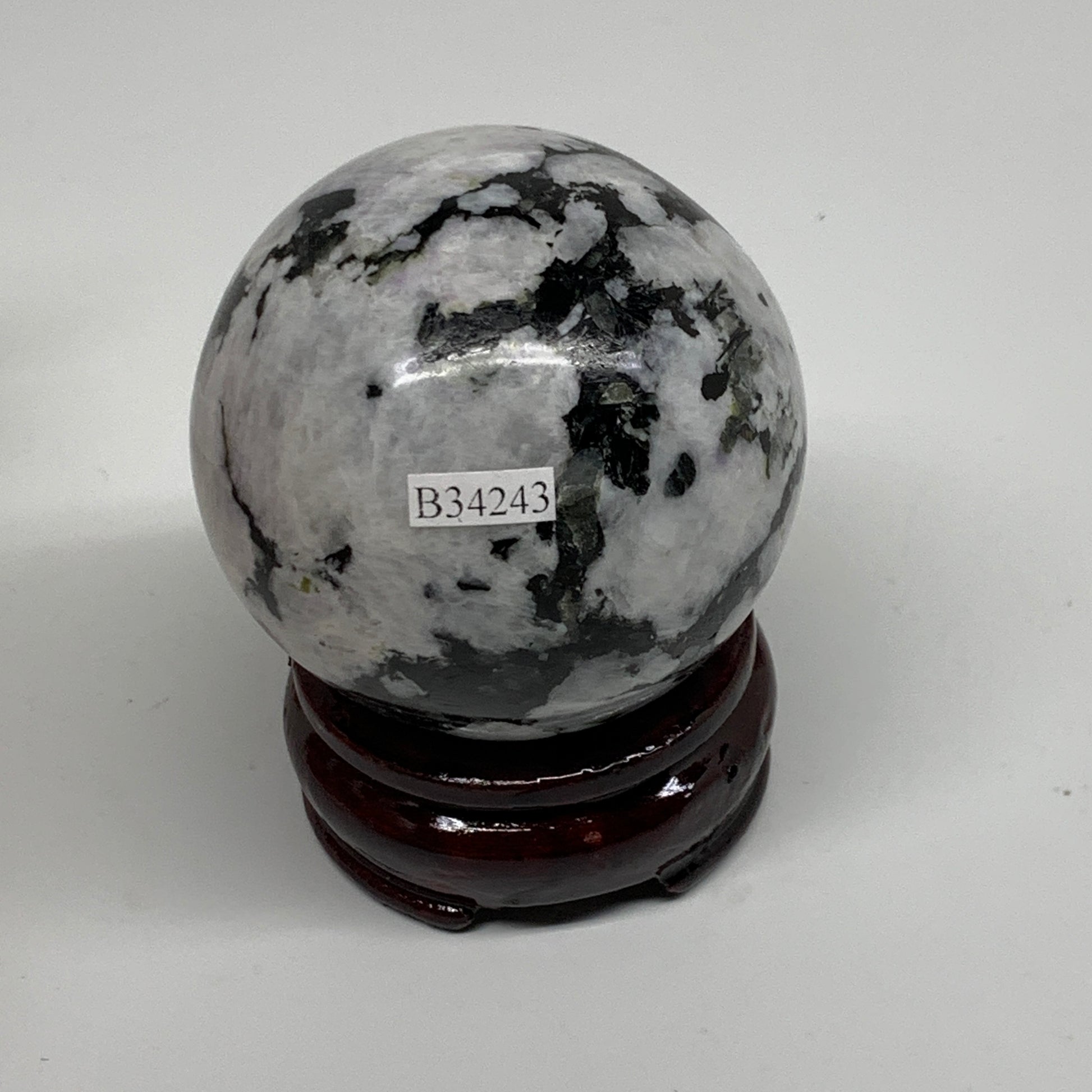 356.9g, 2.5"(63mm), Natural Rainbow Moonstone Sphere Ball Gemstone, B34243