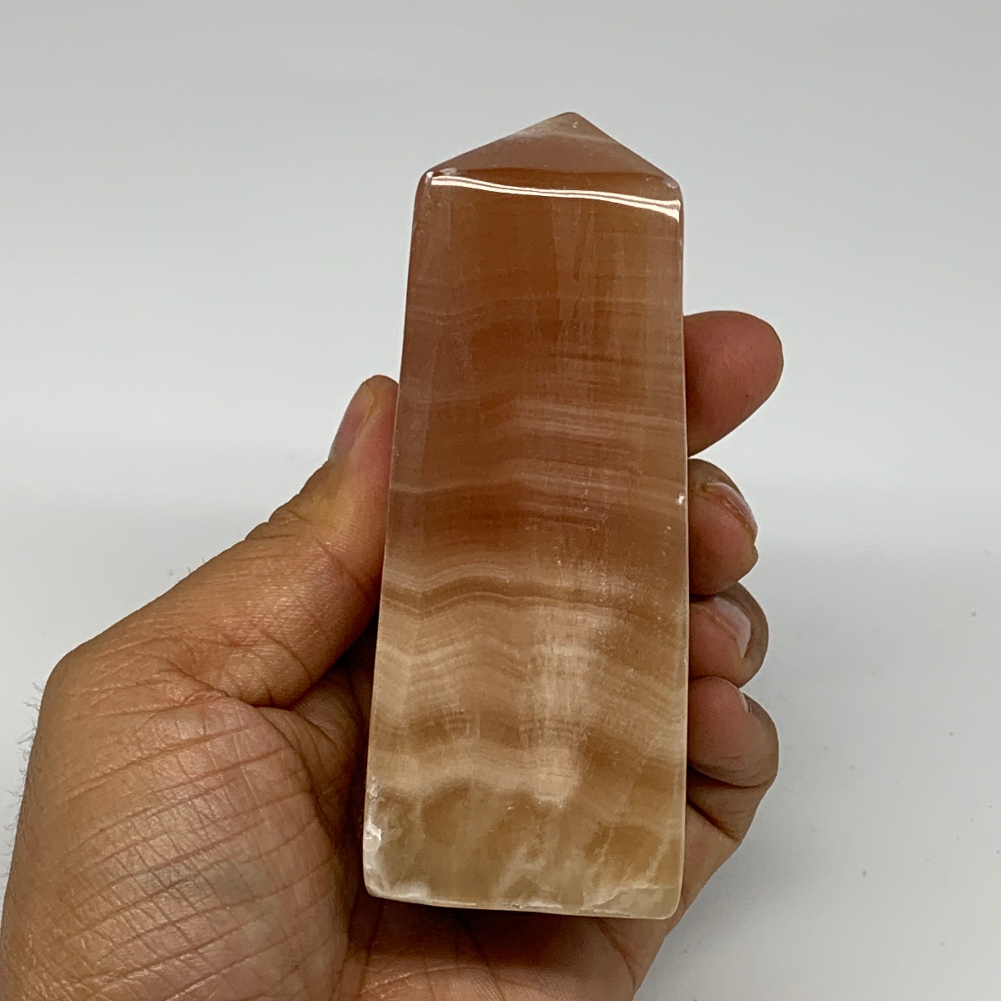 359g, 4"x1.6"x1.6", Honey Calcite Point Tower Obelisk Crystal @Pakistan, B25304