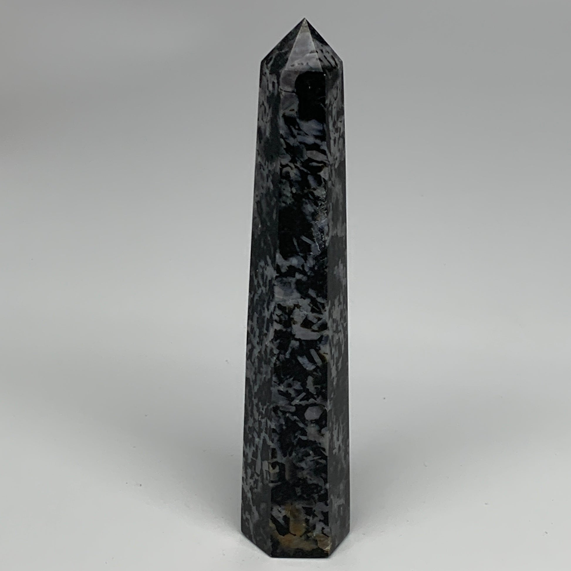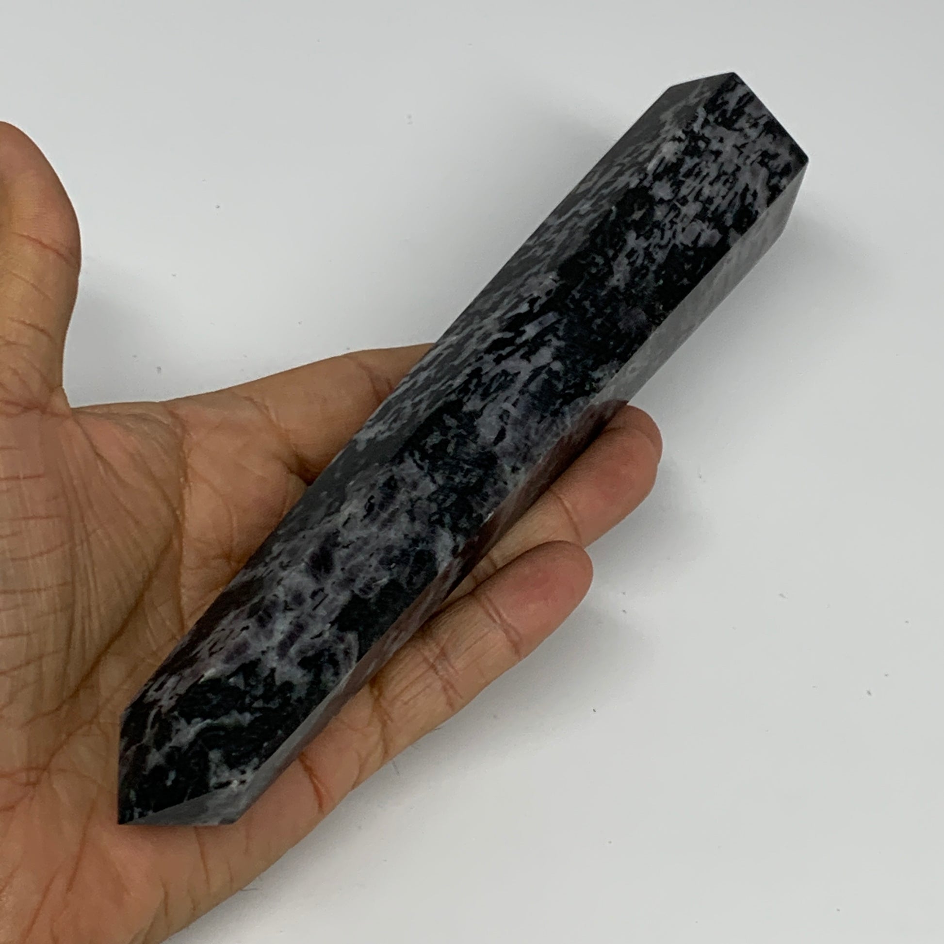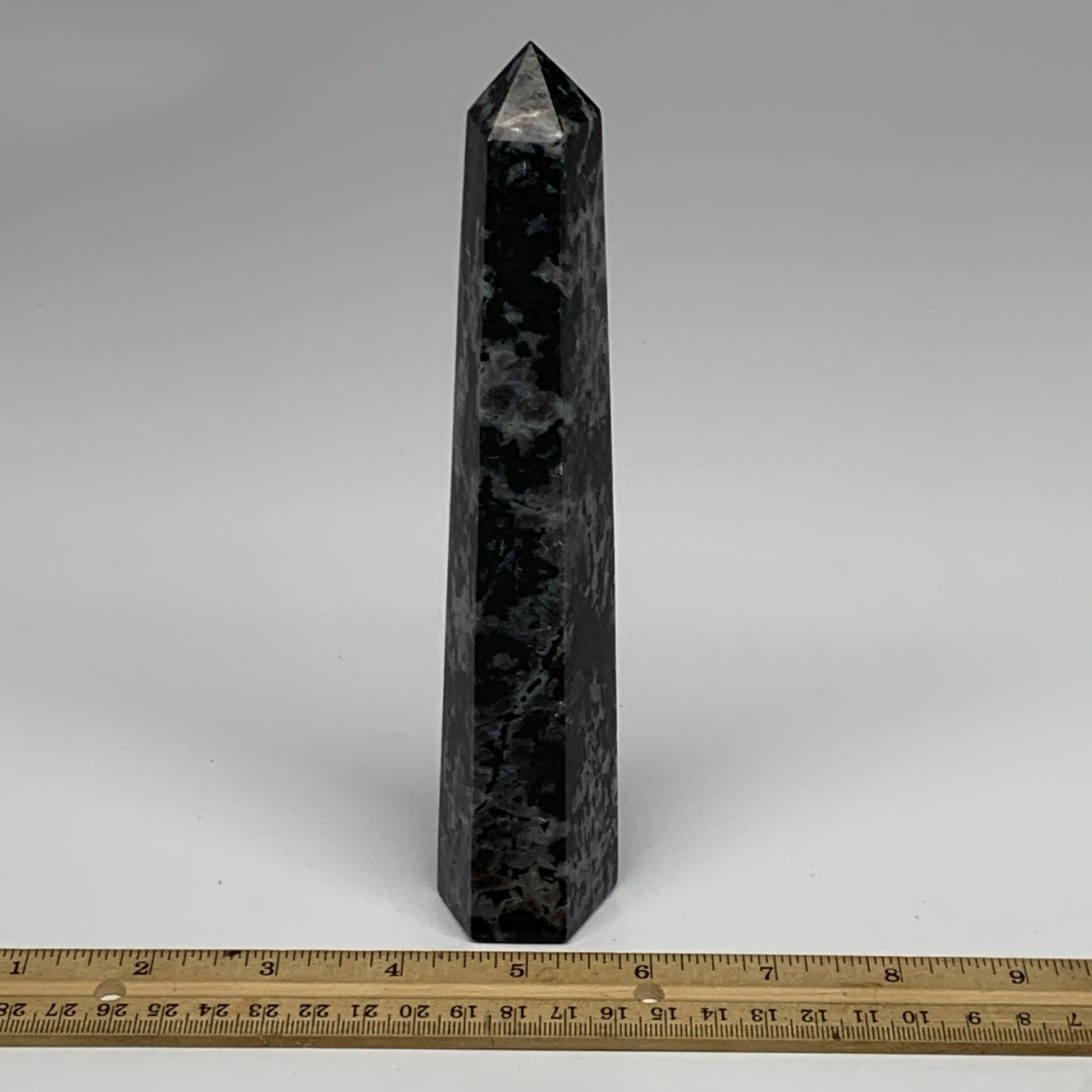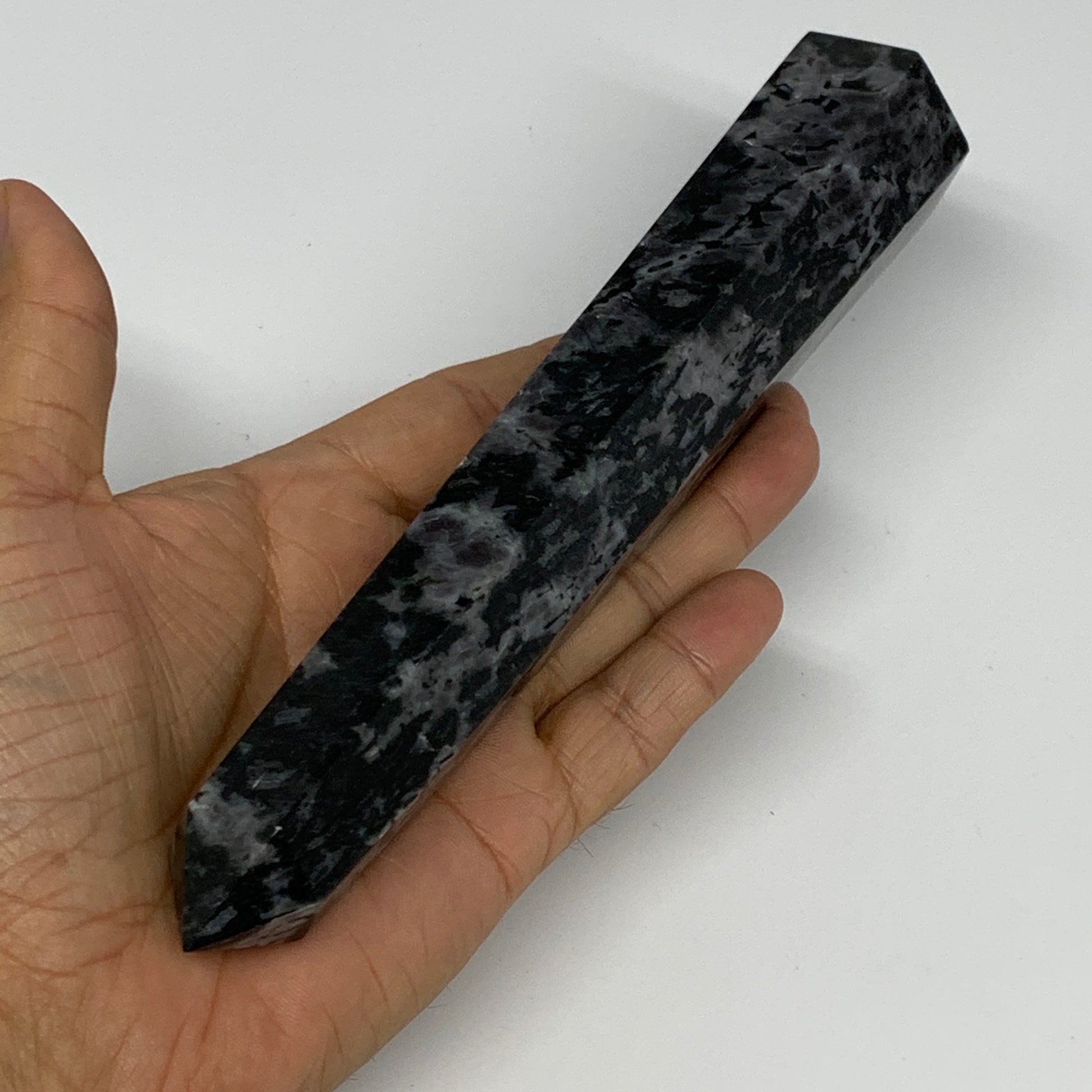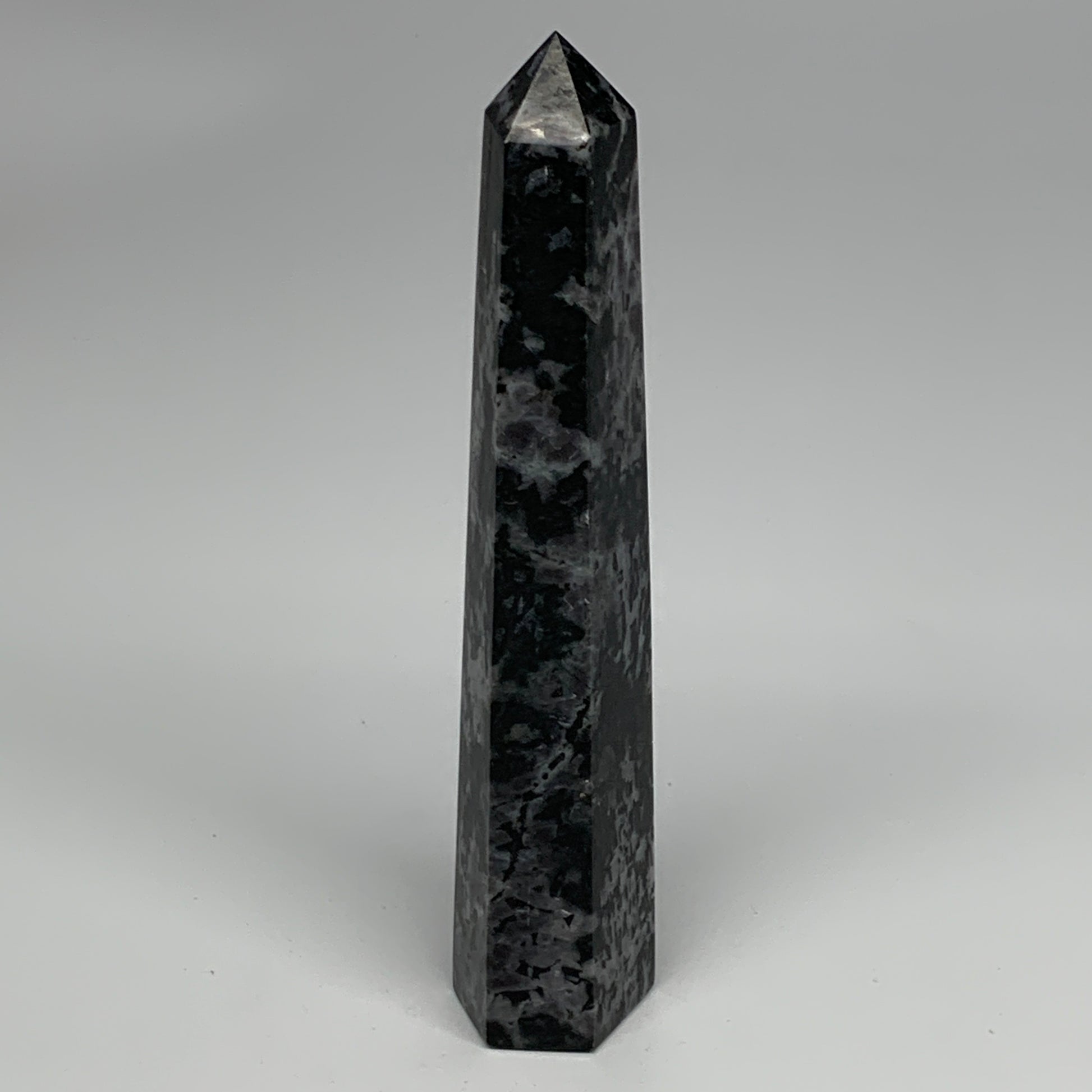 360.2g, 7.6" x 1.5" x 1.3" Indigo Gabro Merlinite Point Tower @Madagascar,B18383