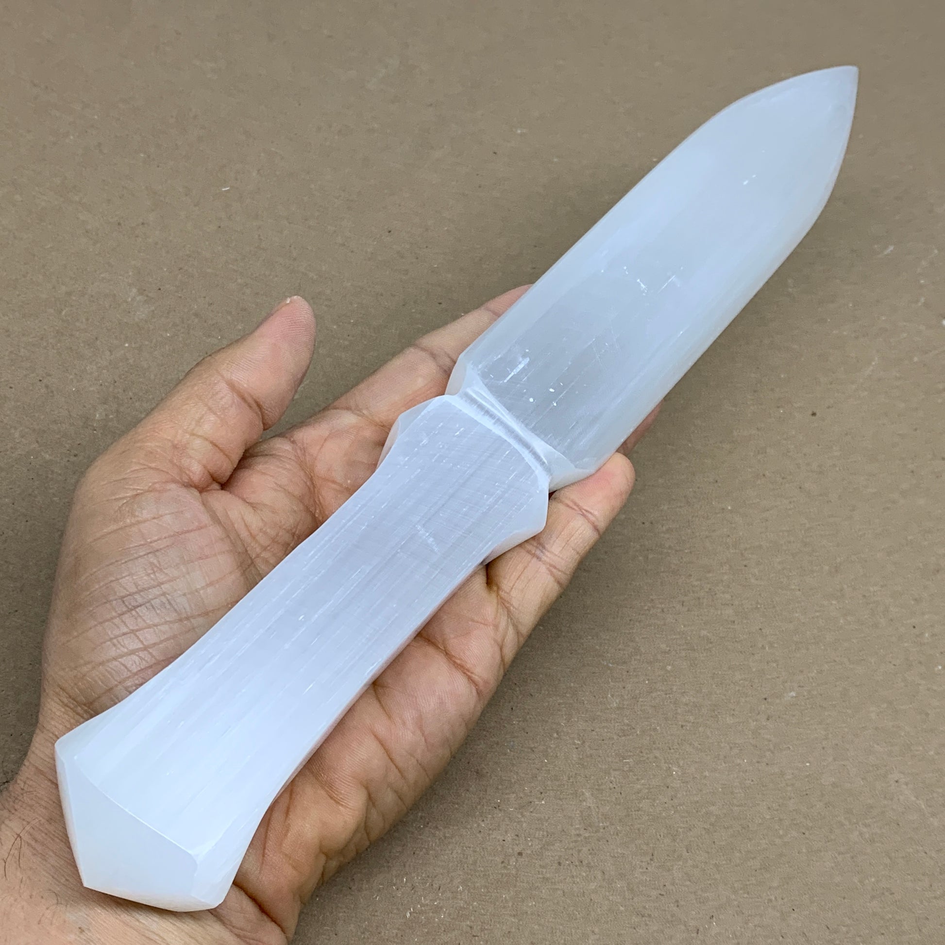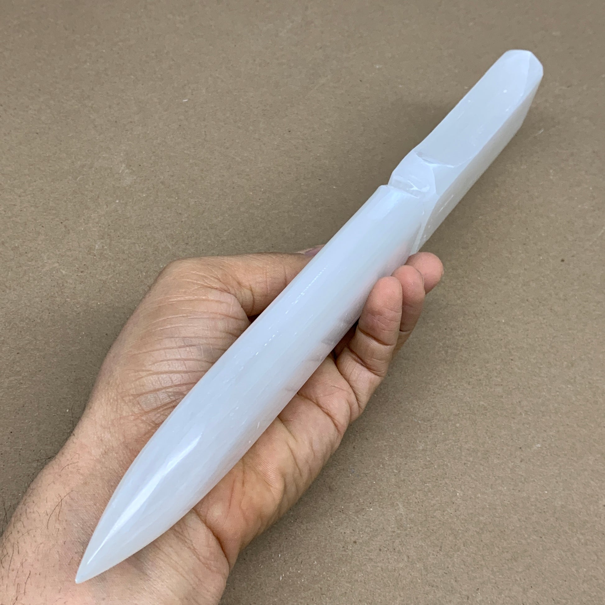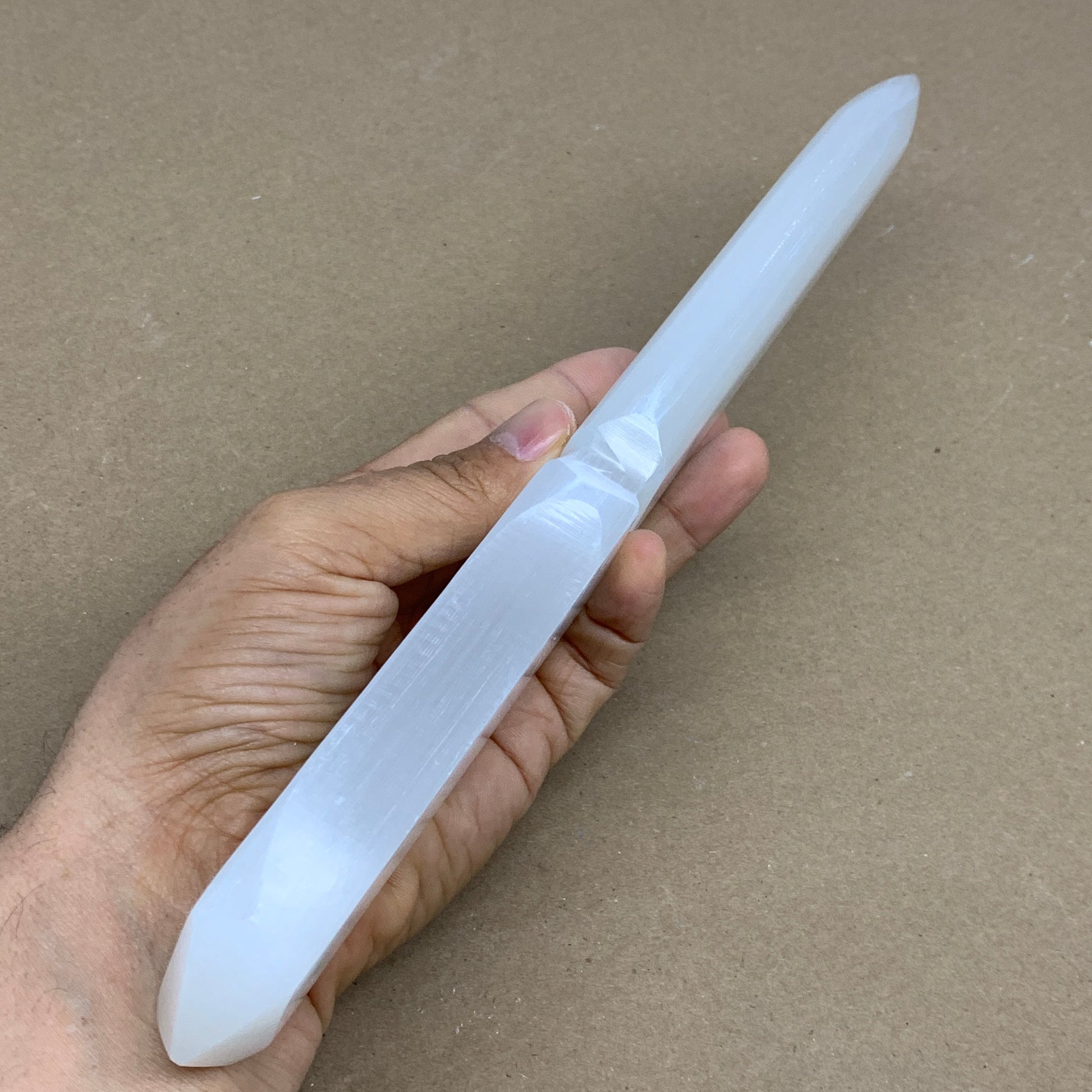 360g, 11.5"x1.6"x0.7", Natural Selenite Crystal Dagger (Satin Spar), B36235