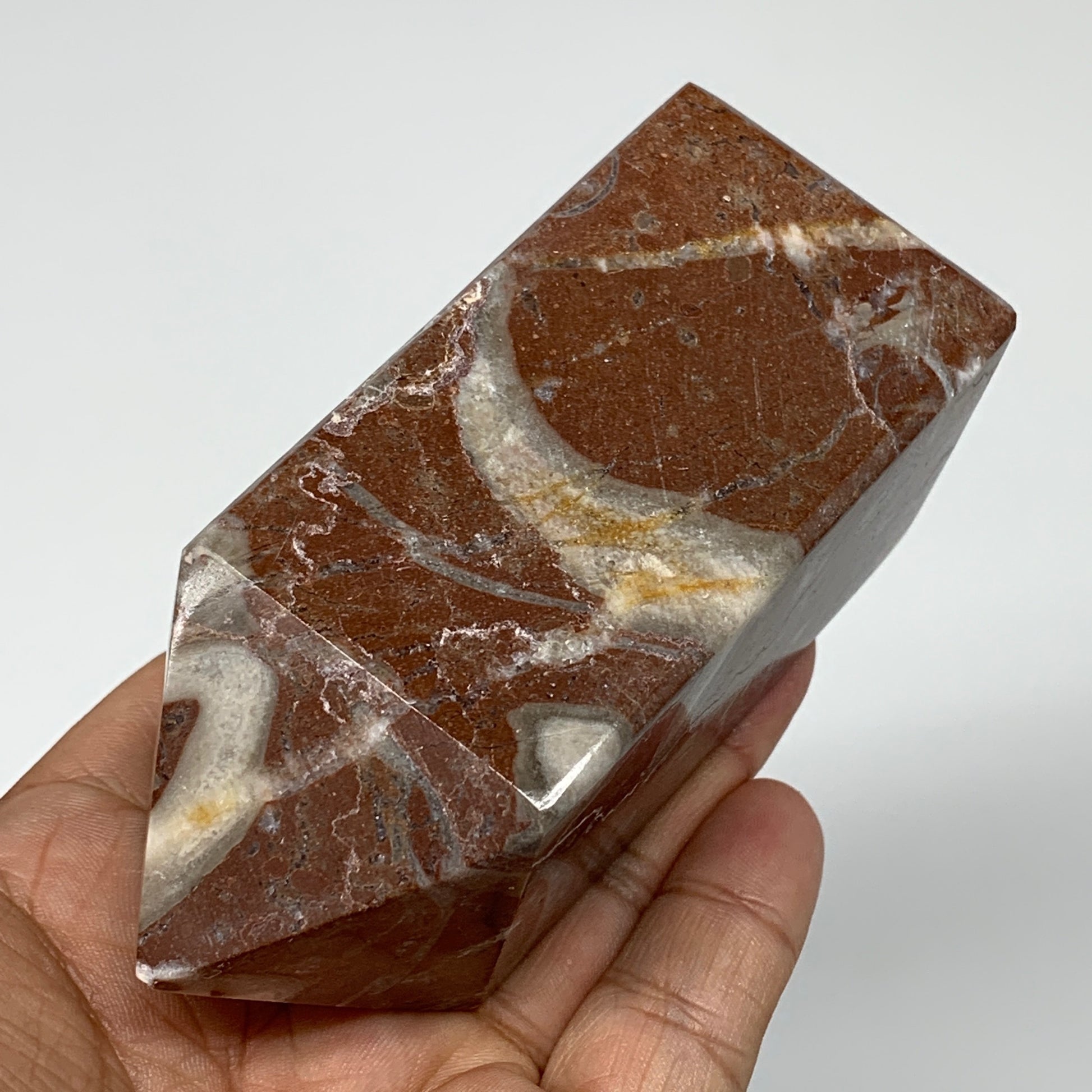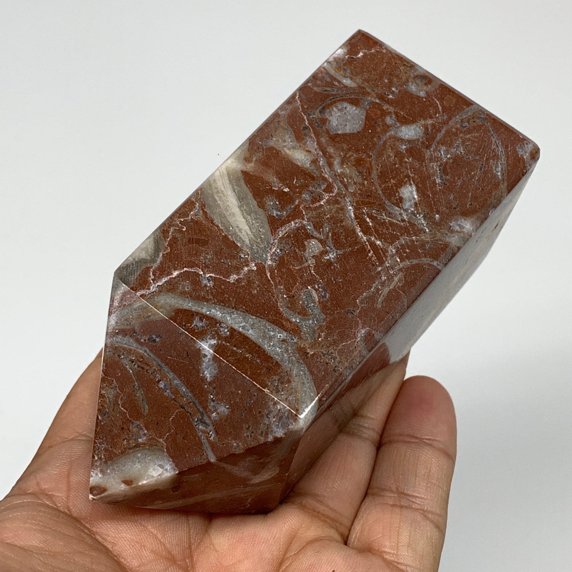 366.6g, 3.9" x 1.6" Natural Red Shell Fossils Tower Obelisk Wand @Morocco, F890