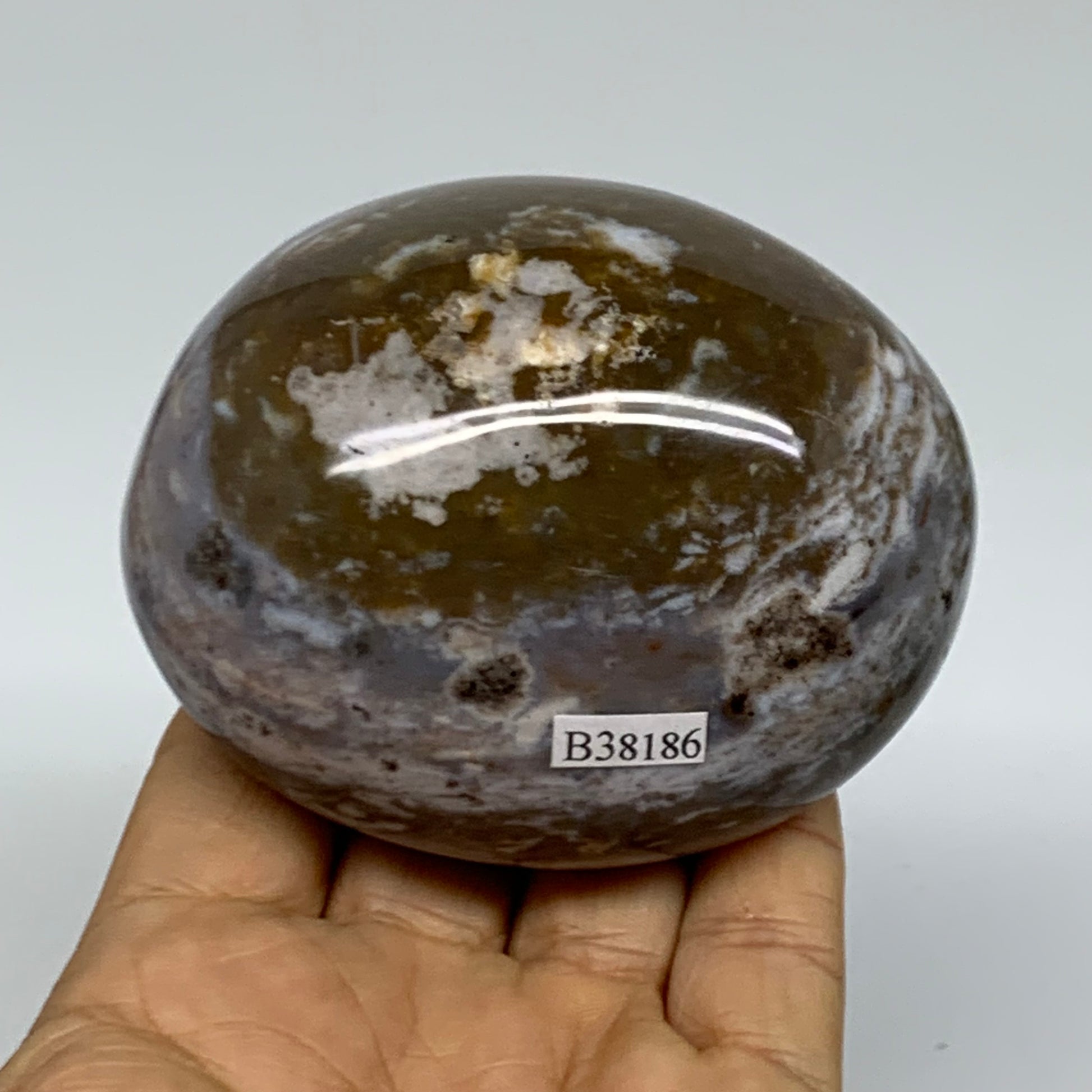 379.9g, 3.2"x2.7"x1.9" Natural Ocean Jasper Palm-Stone Orbicular Jasper, B38186