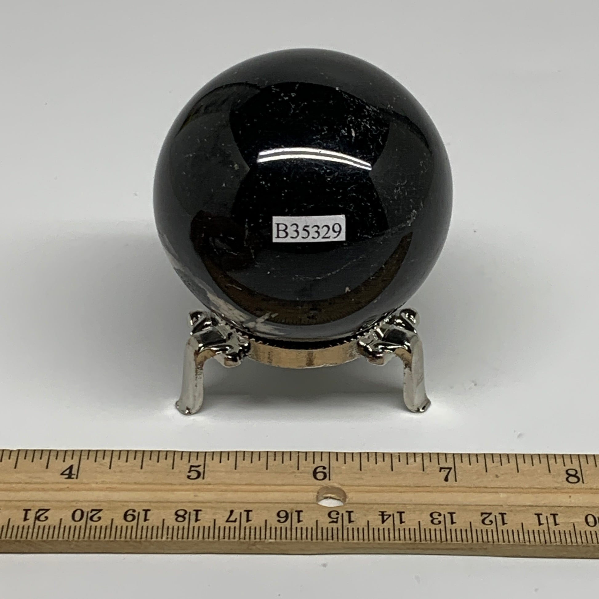 384g,2.4"(60mm), Natural Black Tourmaline Sphere Ball Gemstone,B35329
