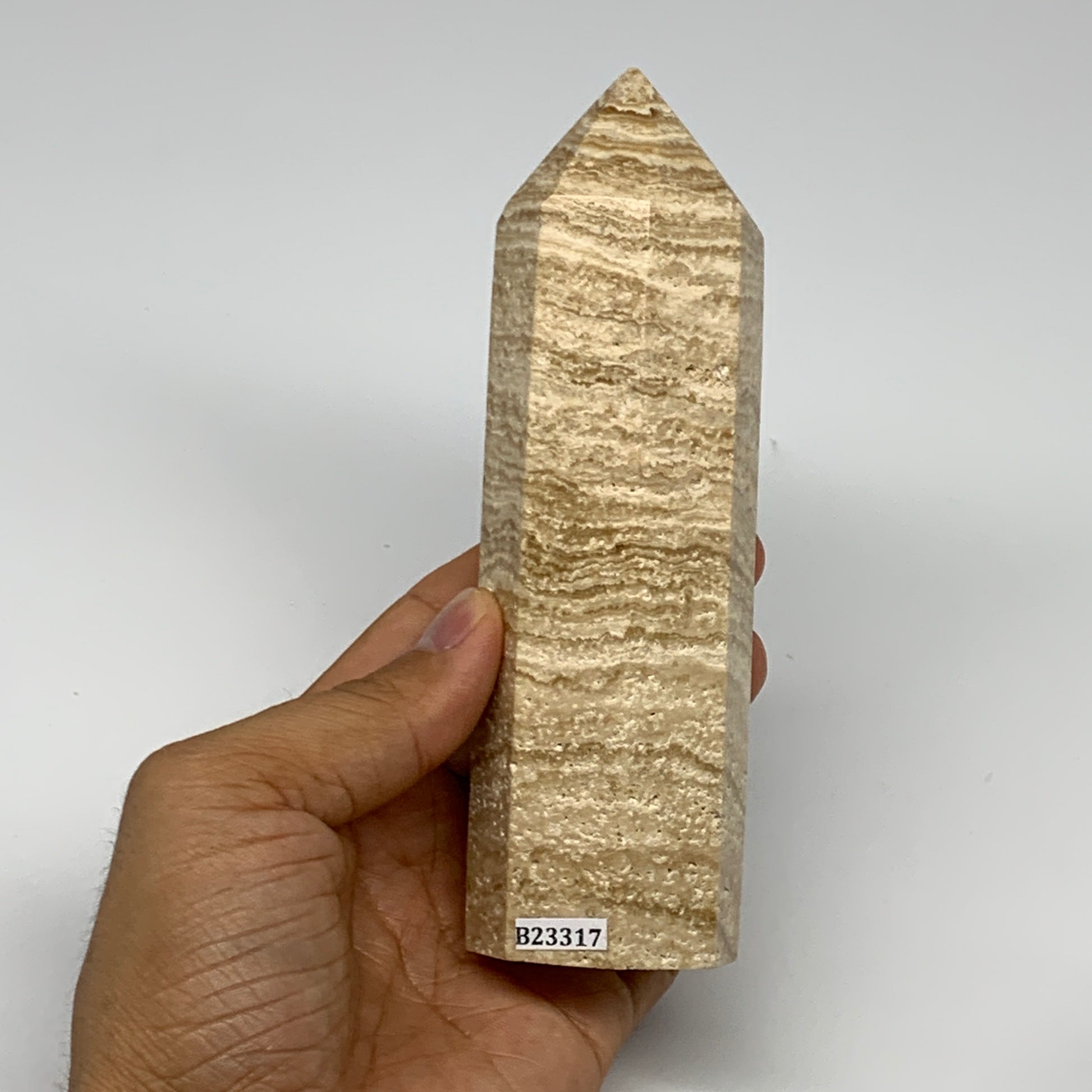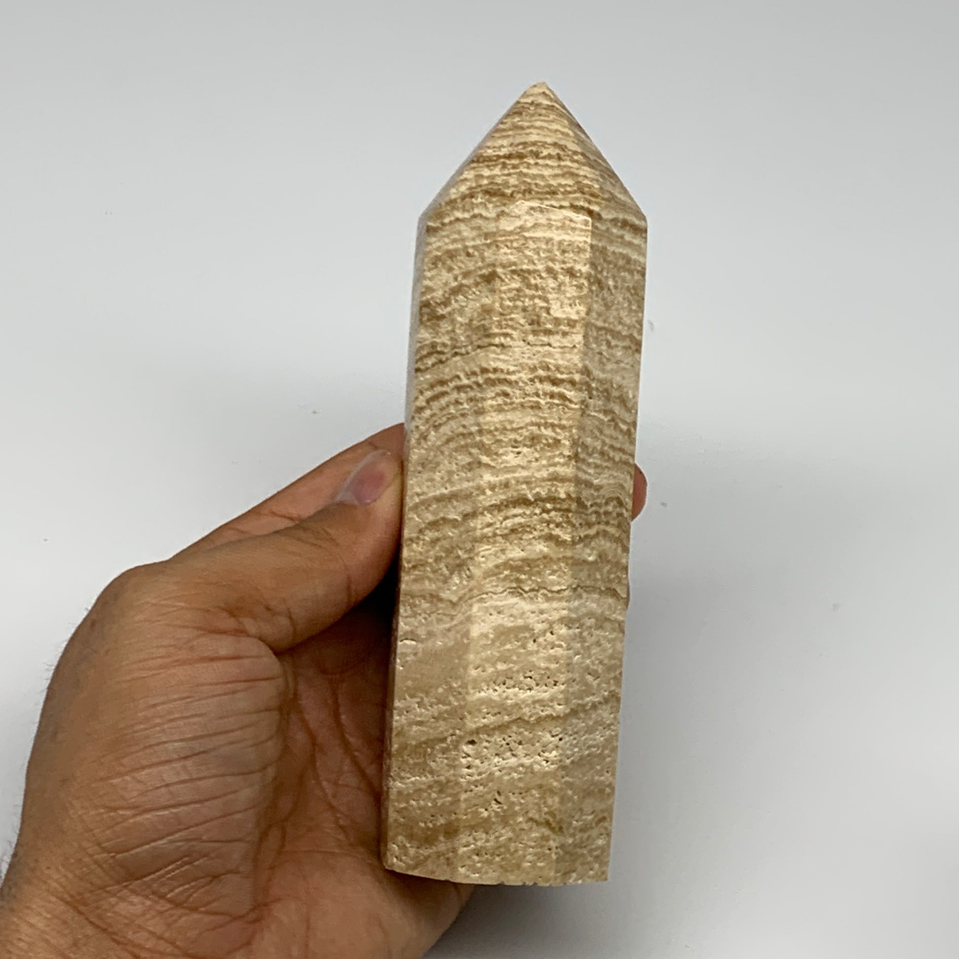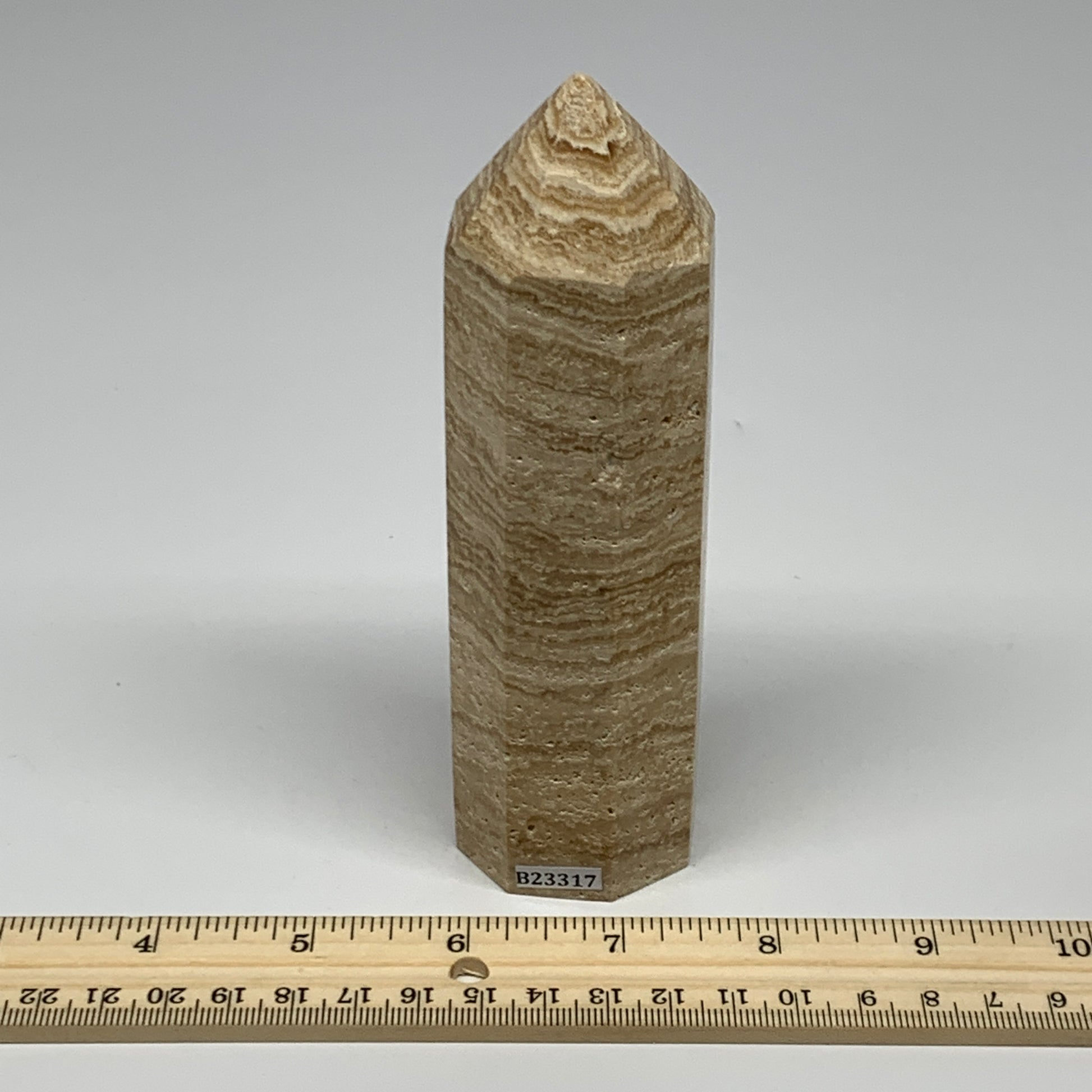 397.8g, 5.6"x1.6" Natural Chocolate Calcite Tower Point Obelisk Crystal, B23317
