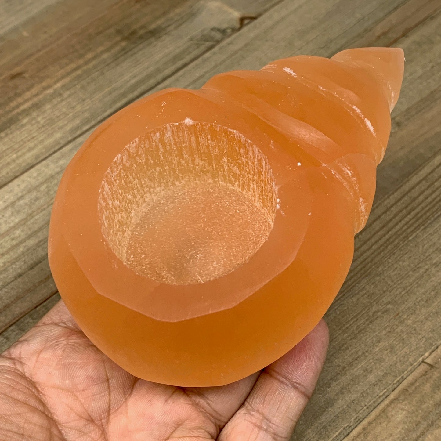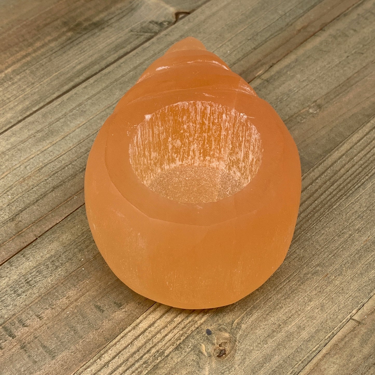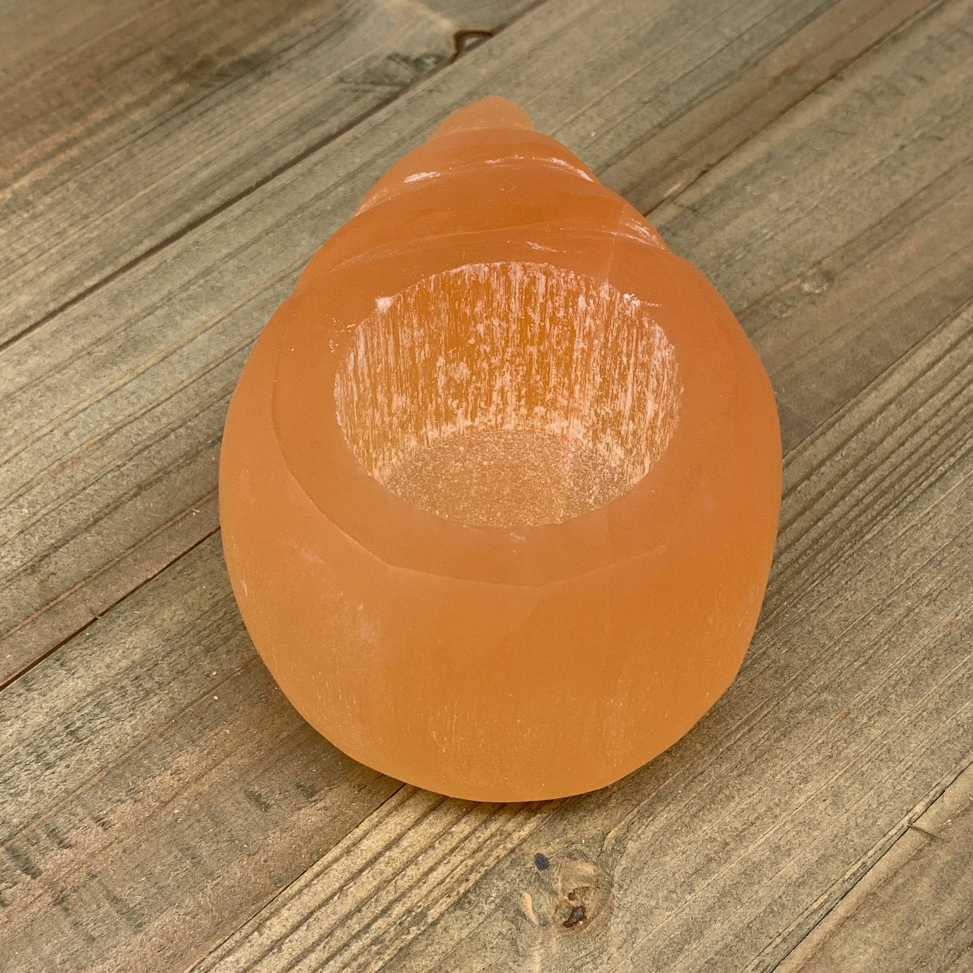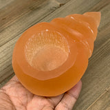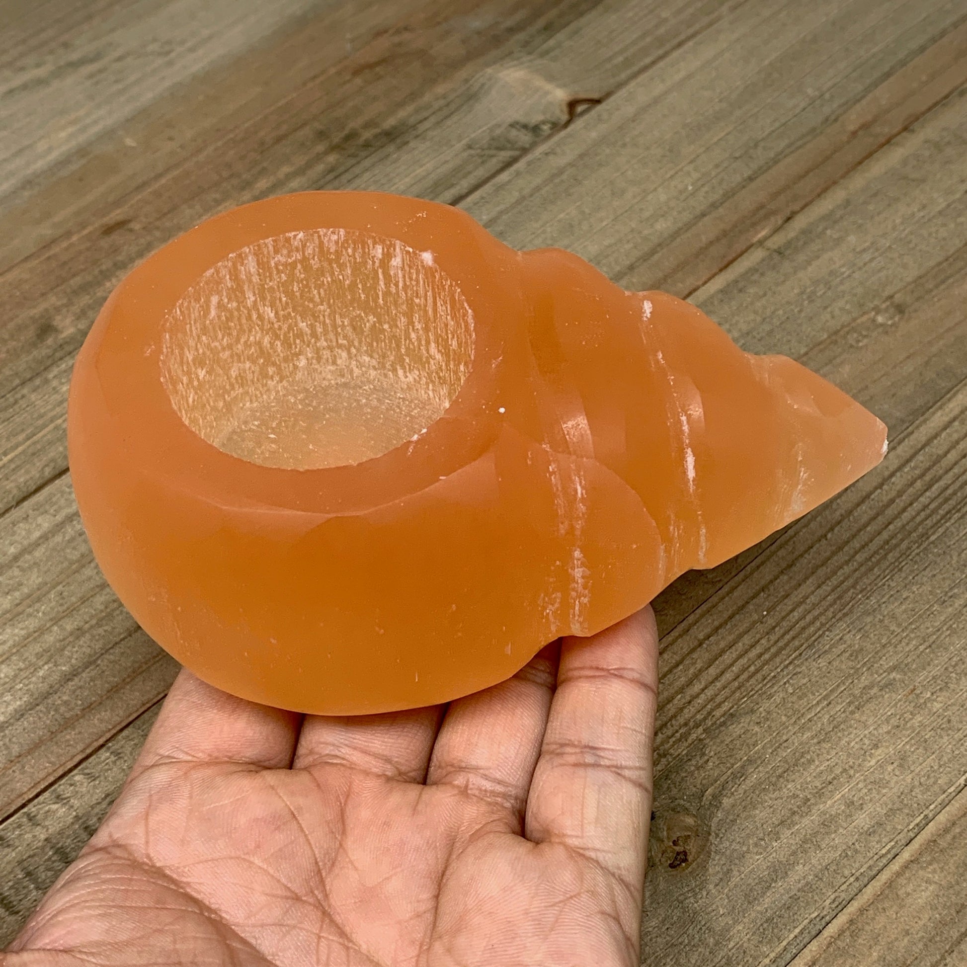 400-430g, 4.5"x2.8"x2" Orange Selenite Candle Holder Pear Shape from Morocco