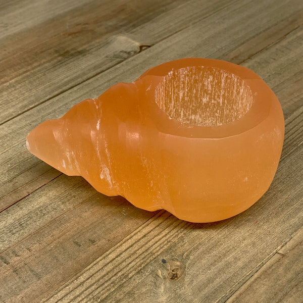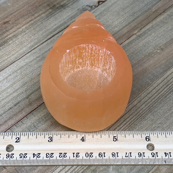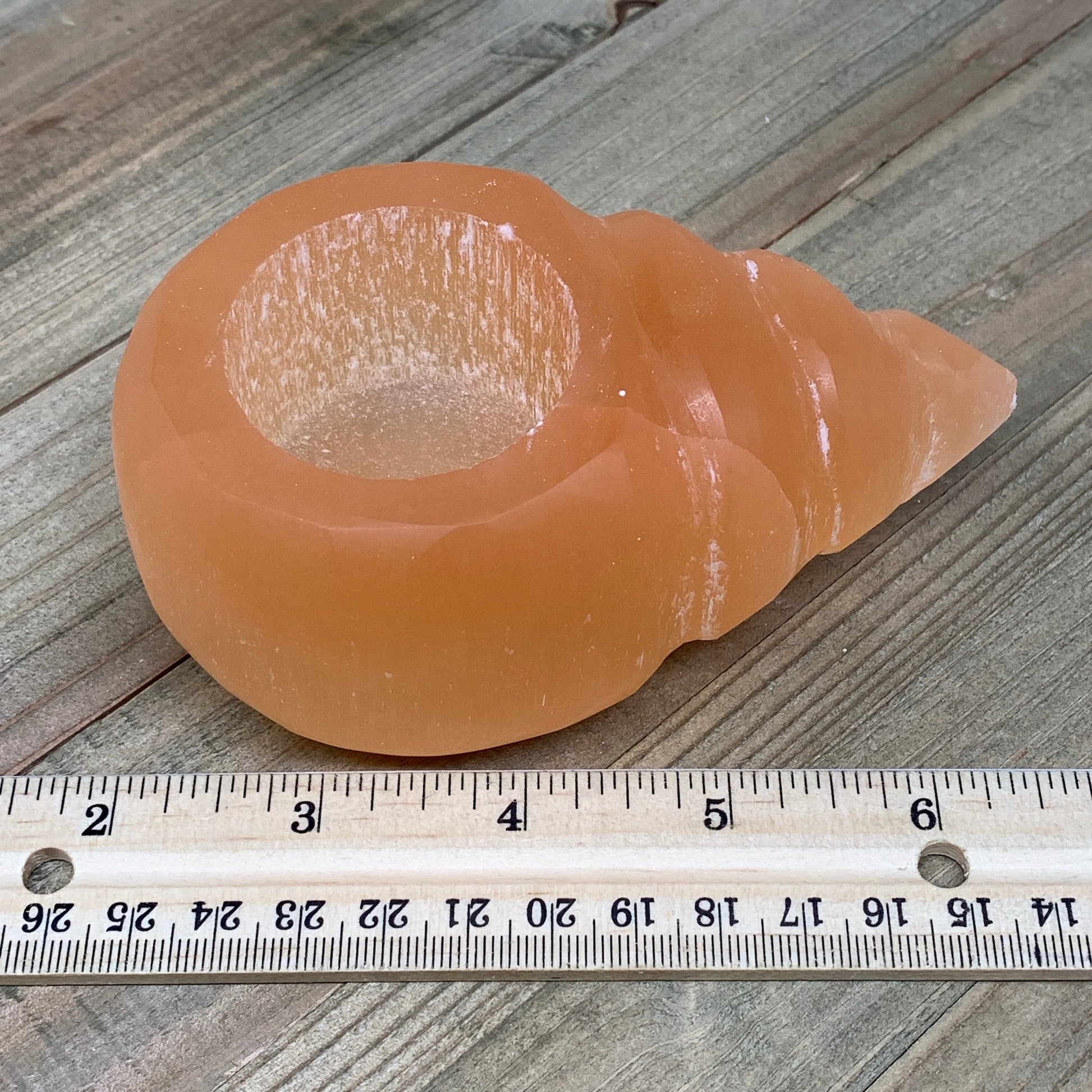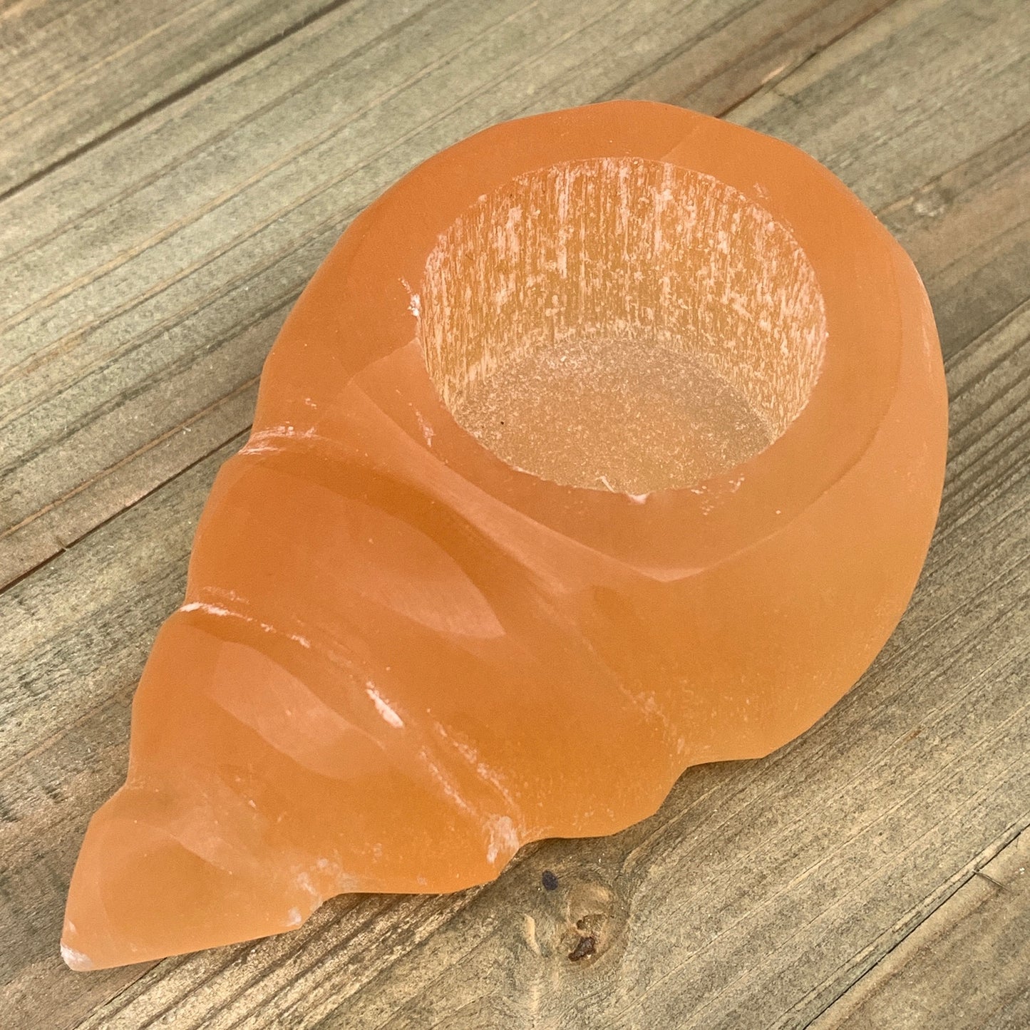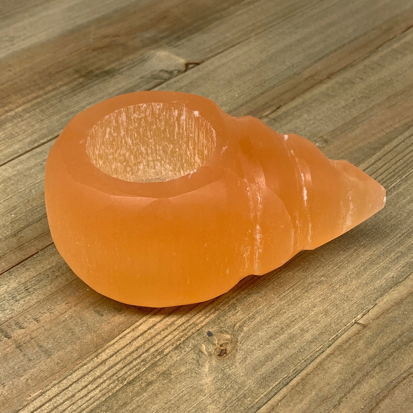 400-430g, 4.5"x2.8"x2" Orange Selenite Candle Holder Pear Shape from Morocco