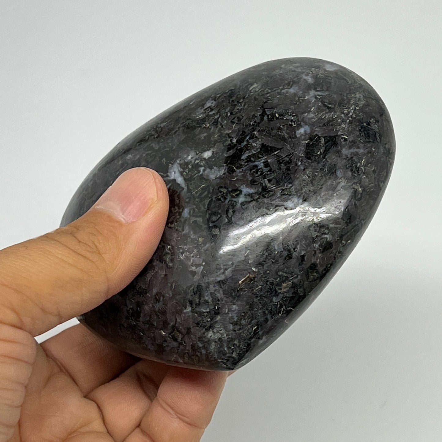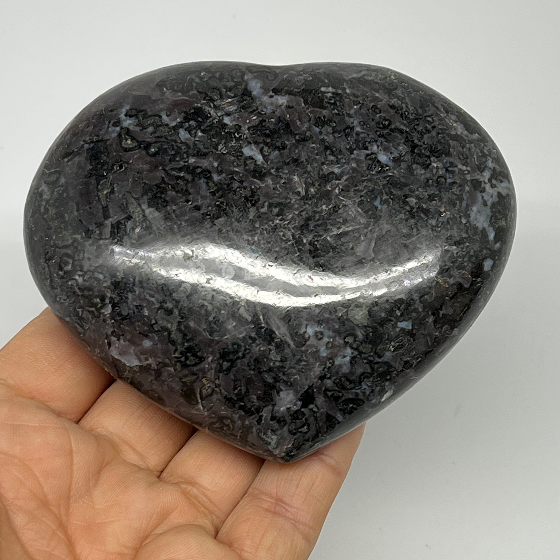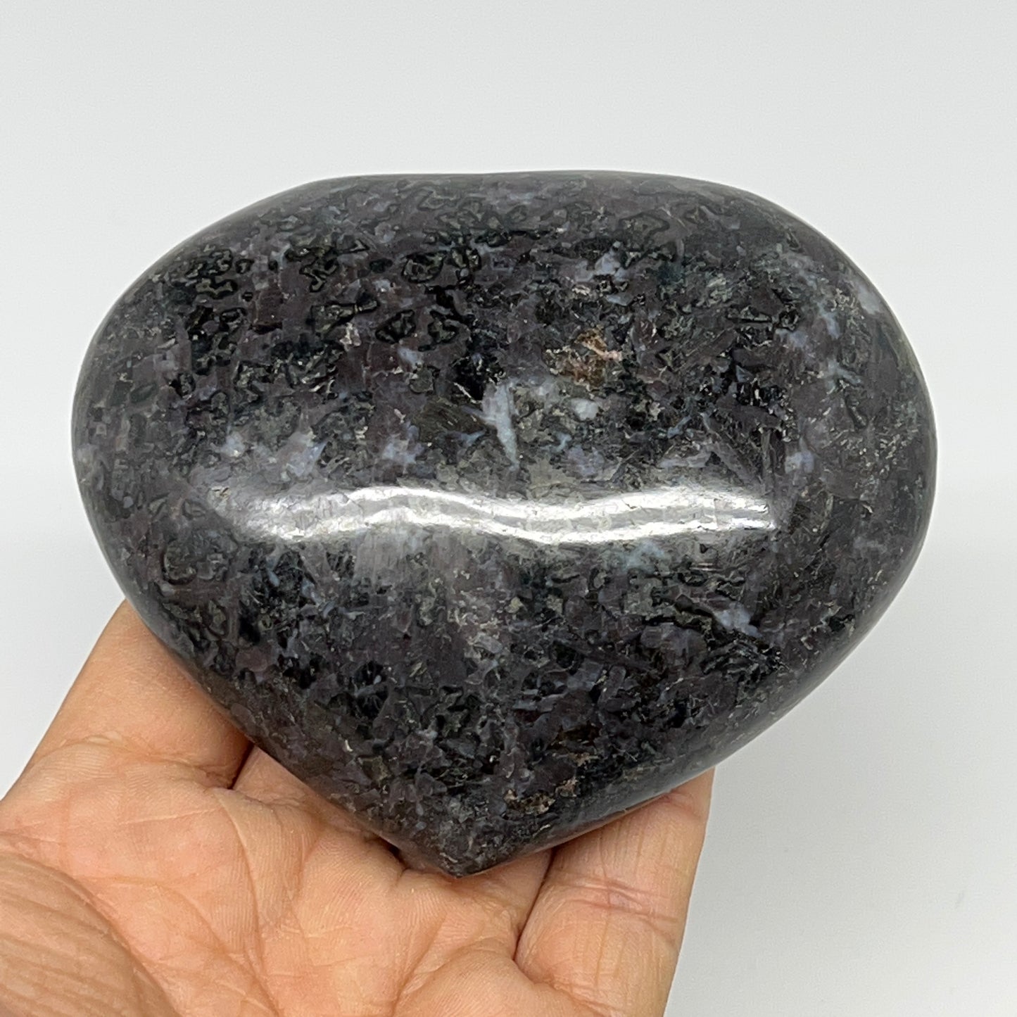 401g,3.1"x3.7"x1.4" Indigo Gabro Merlinite Heart Gemstone @Madagascar,B19923