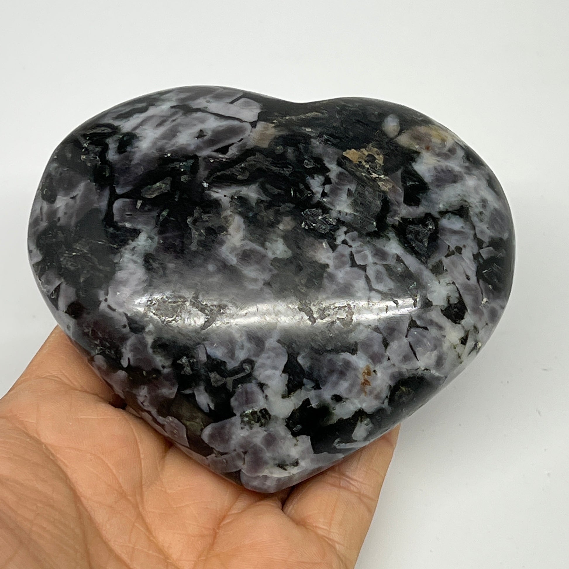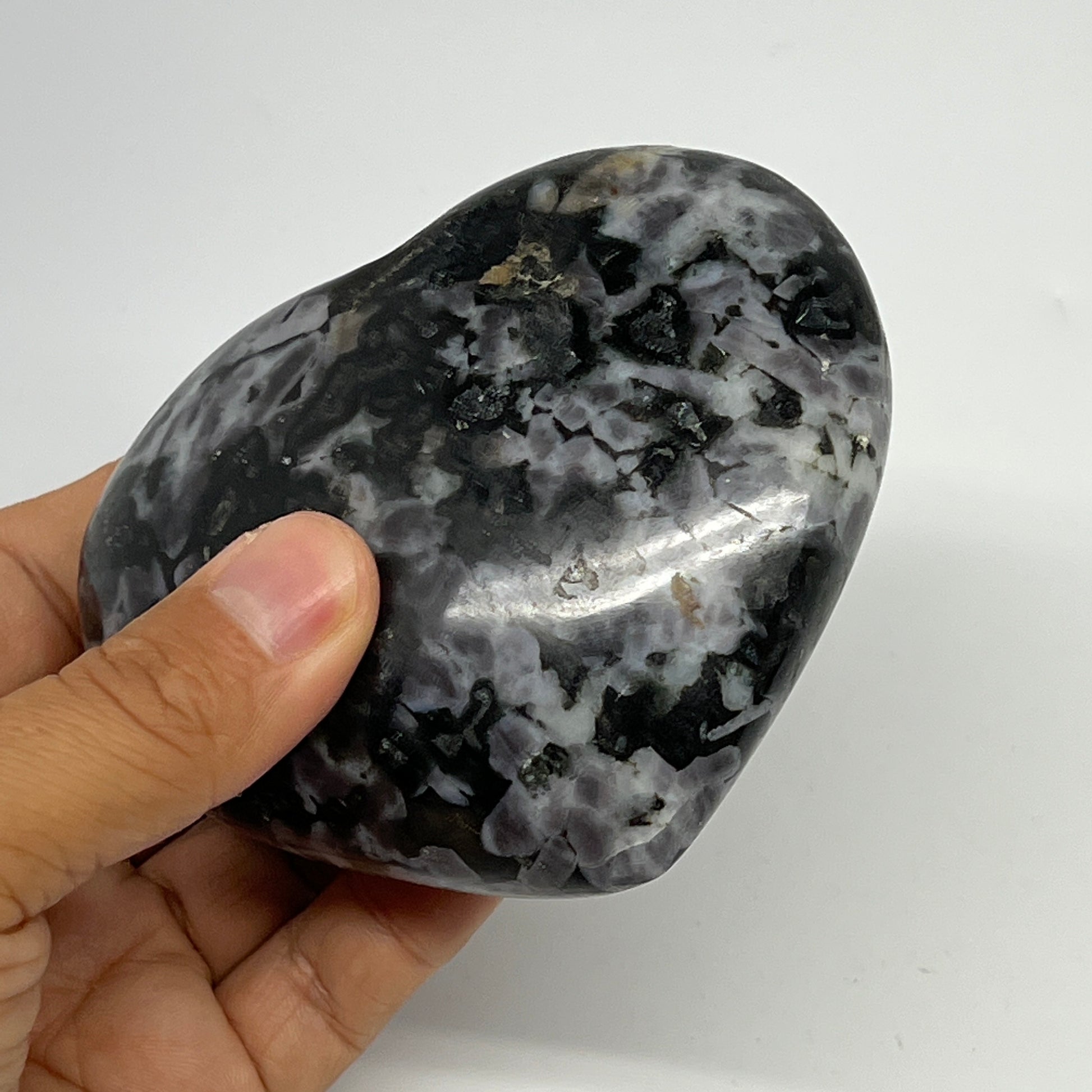 406.9g,3.2"x3.7"x1.4" Indigo Gabro Merlinite Heart Gemstone @Madagascar, B19959