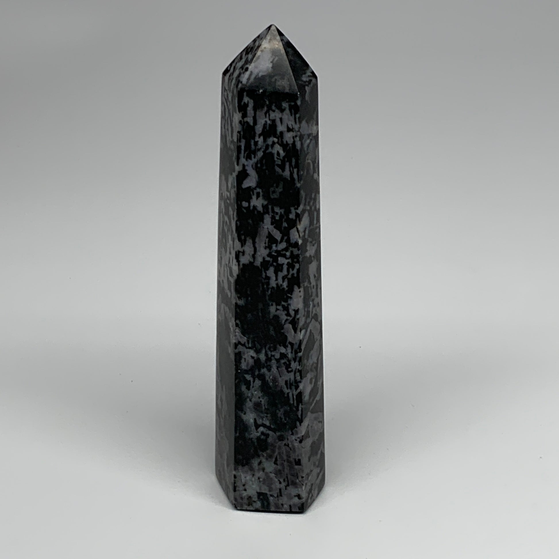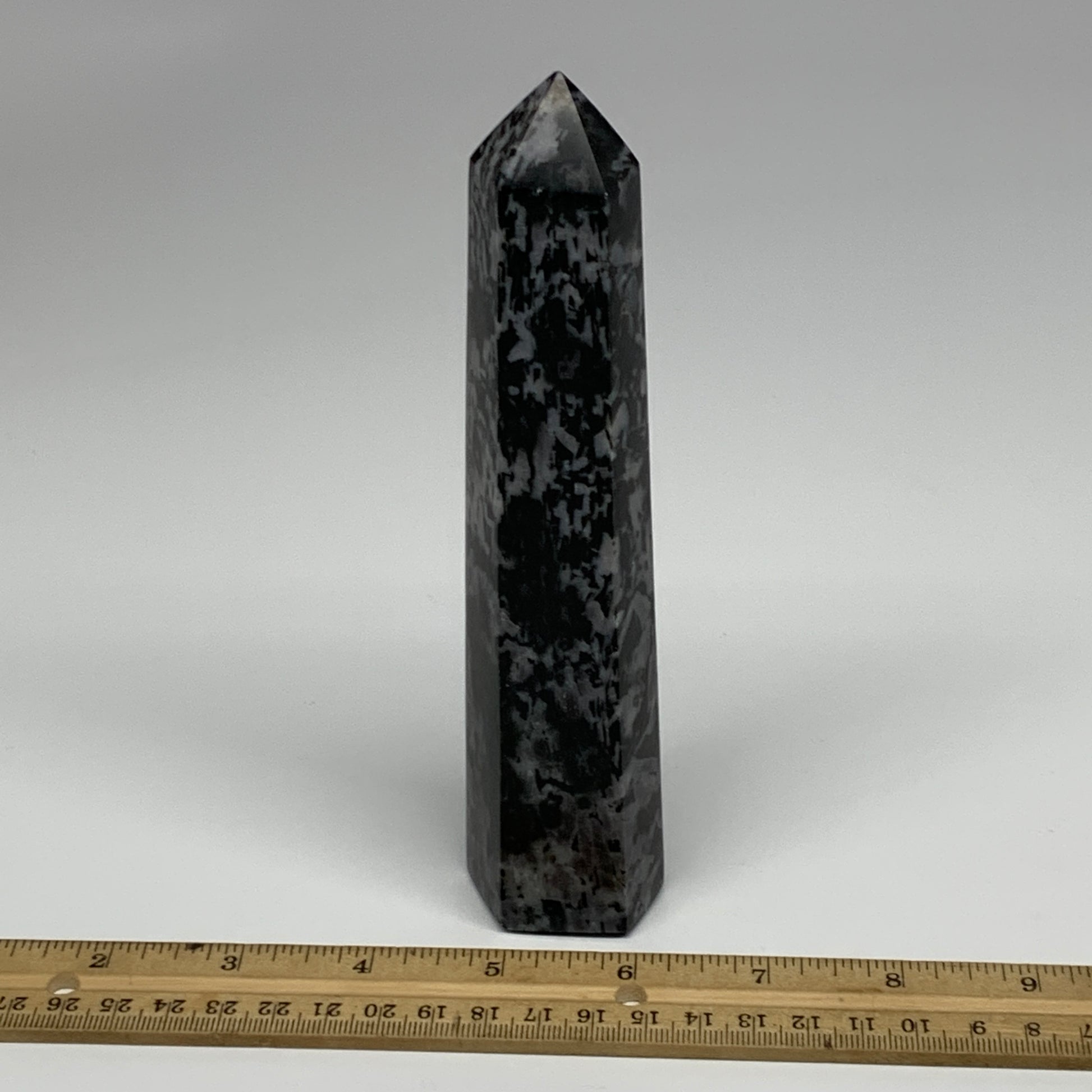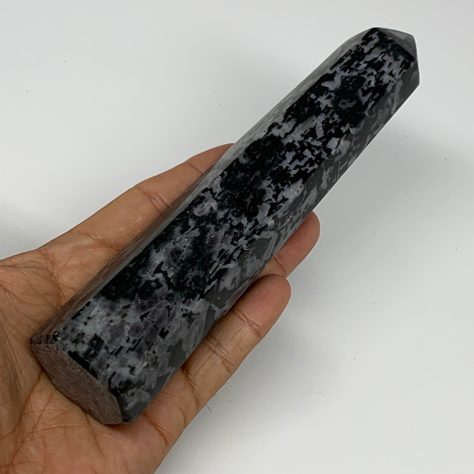 408.6g, 7" x 1.6" x 1.4" Indigo Gabro Merlinite Point Tower @Madagascar,B18355