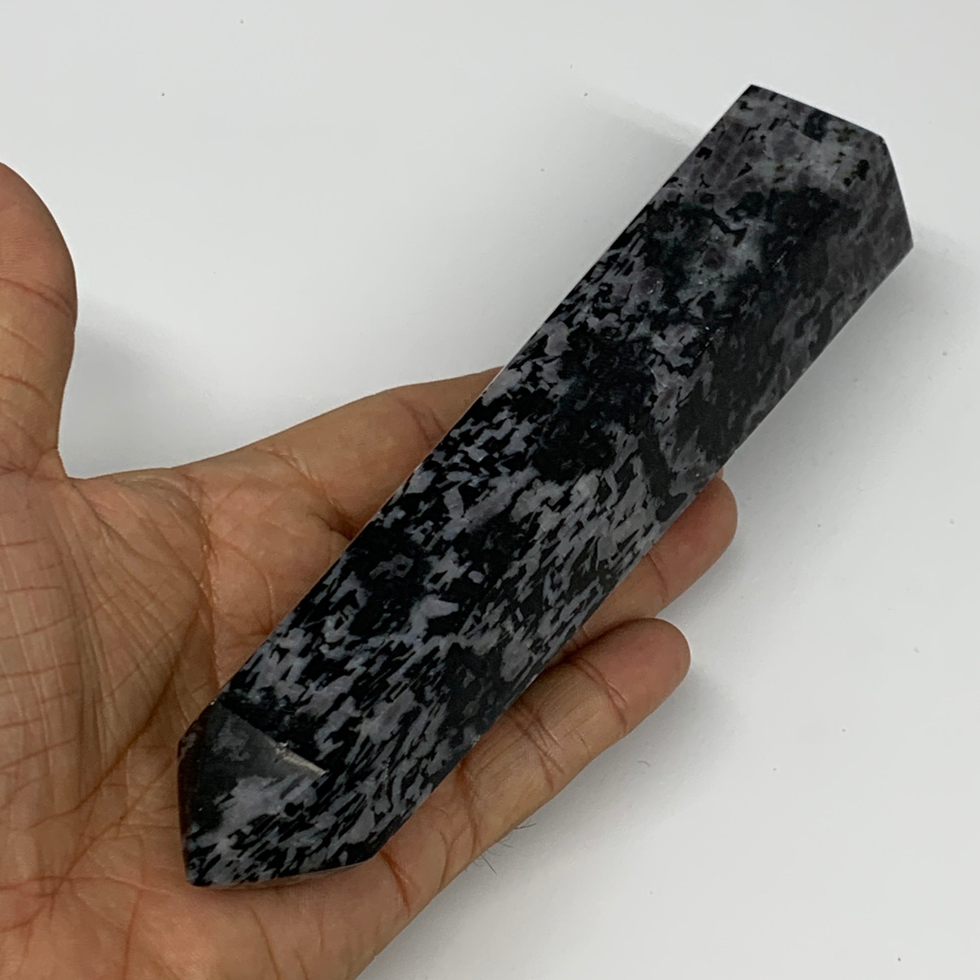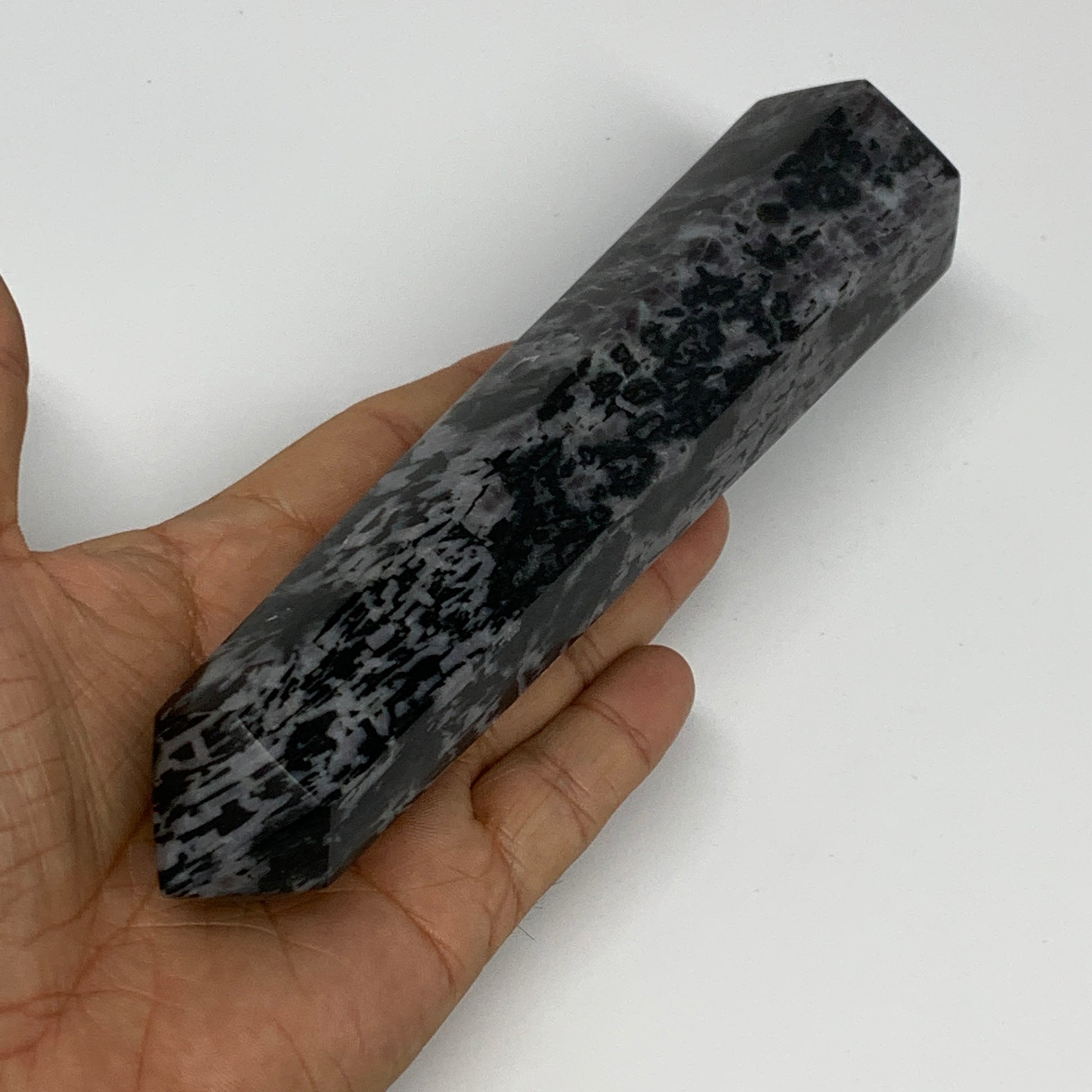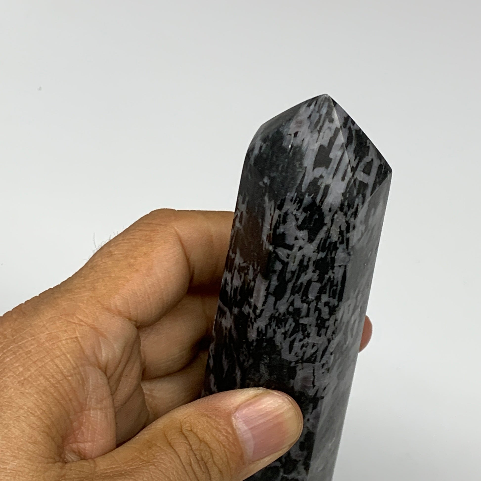 408.6g, 7" x 1.6" x 1.4" Indigo Gabro Merlinite Point Tower @Madagascar,B18355