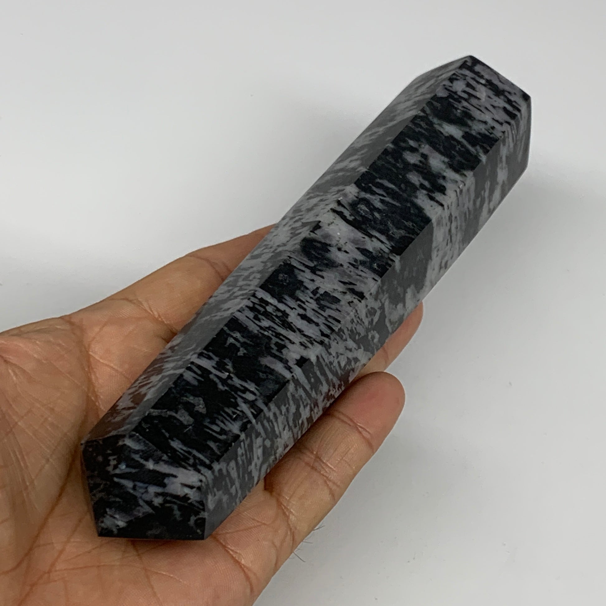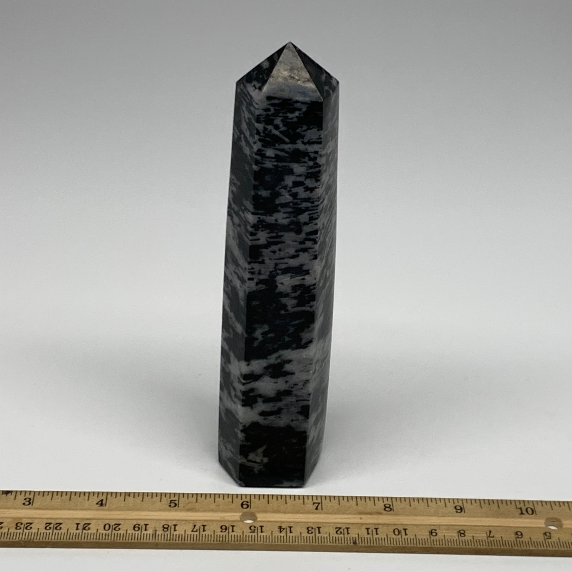 414.4g, 6.7" x 1.6" x 1.4" Indigo Gabro Merlinite Point Tower @Madagascar,B18317