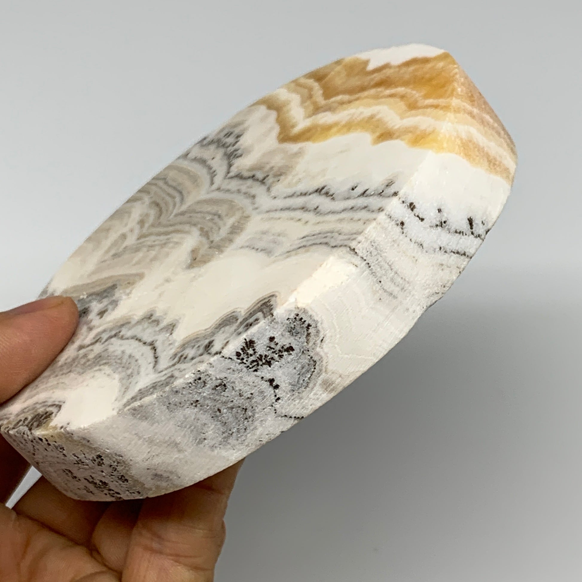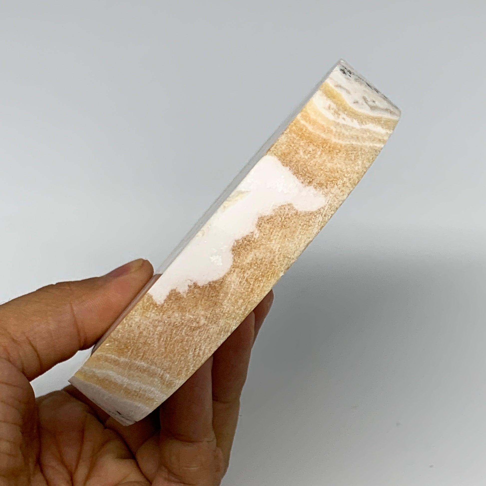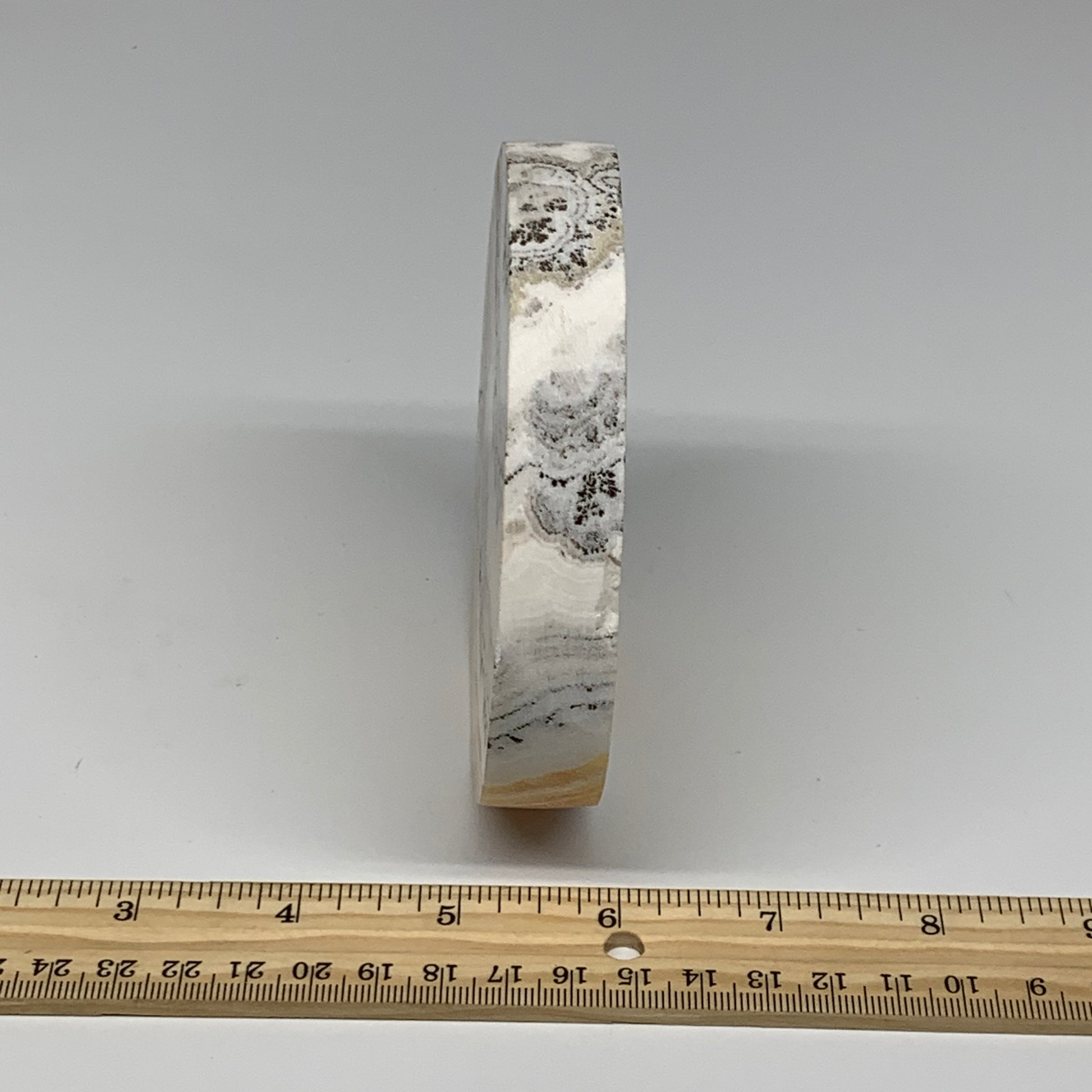 423.9g, 4.3"x0.8", Natural Picture Calcite Round Disc/Coaster @Mexico, B25479