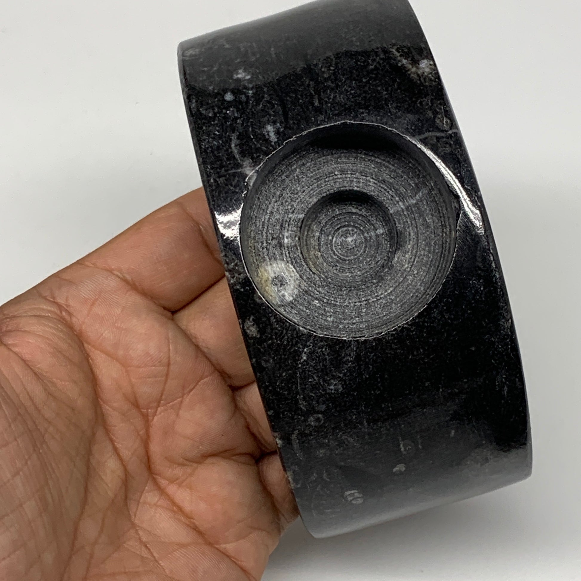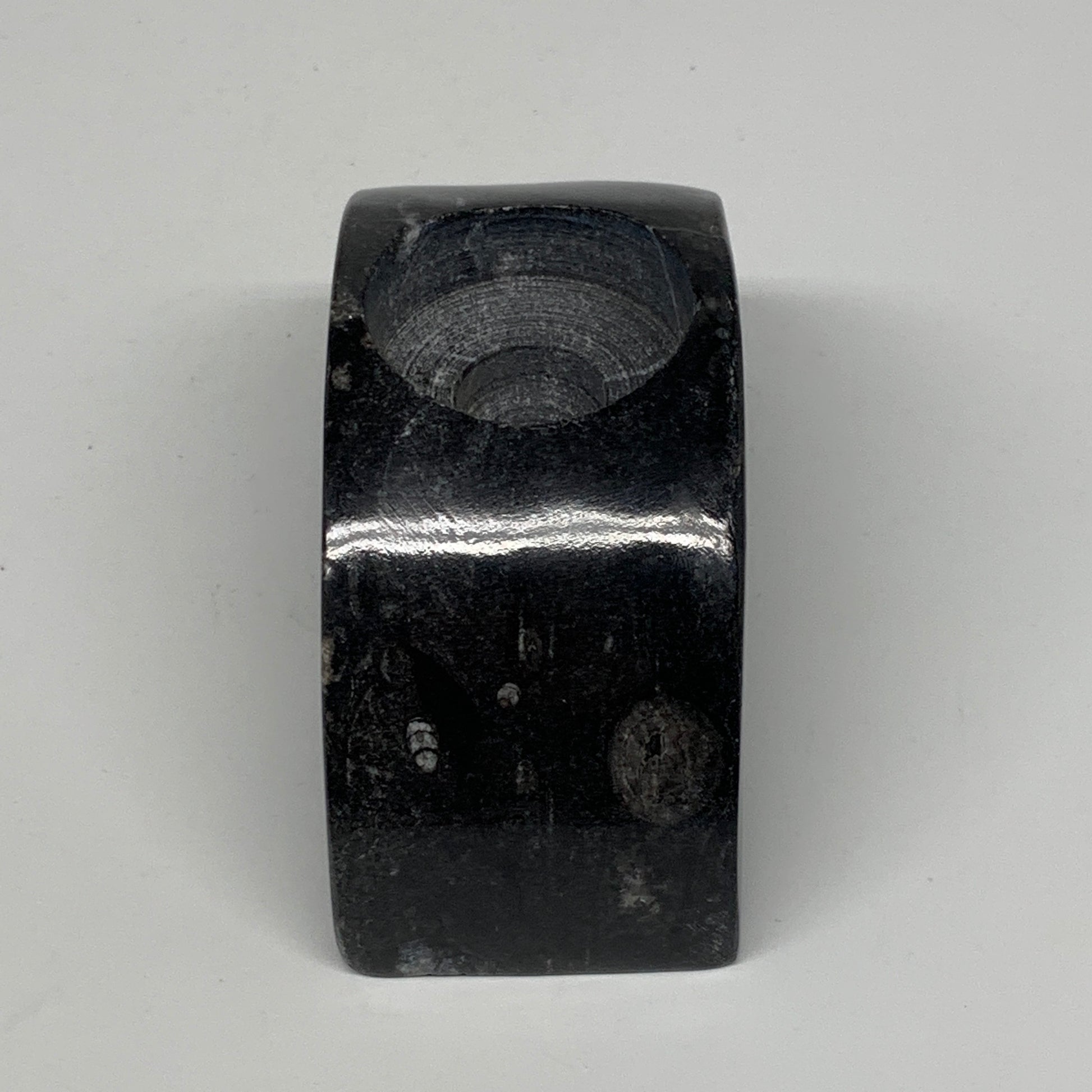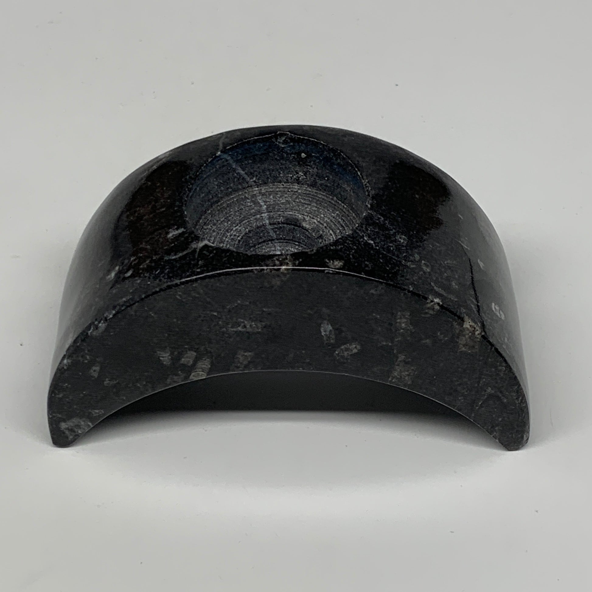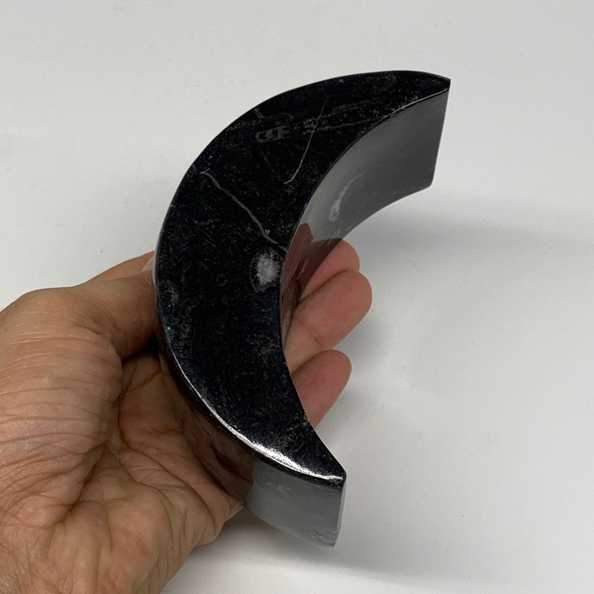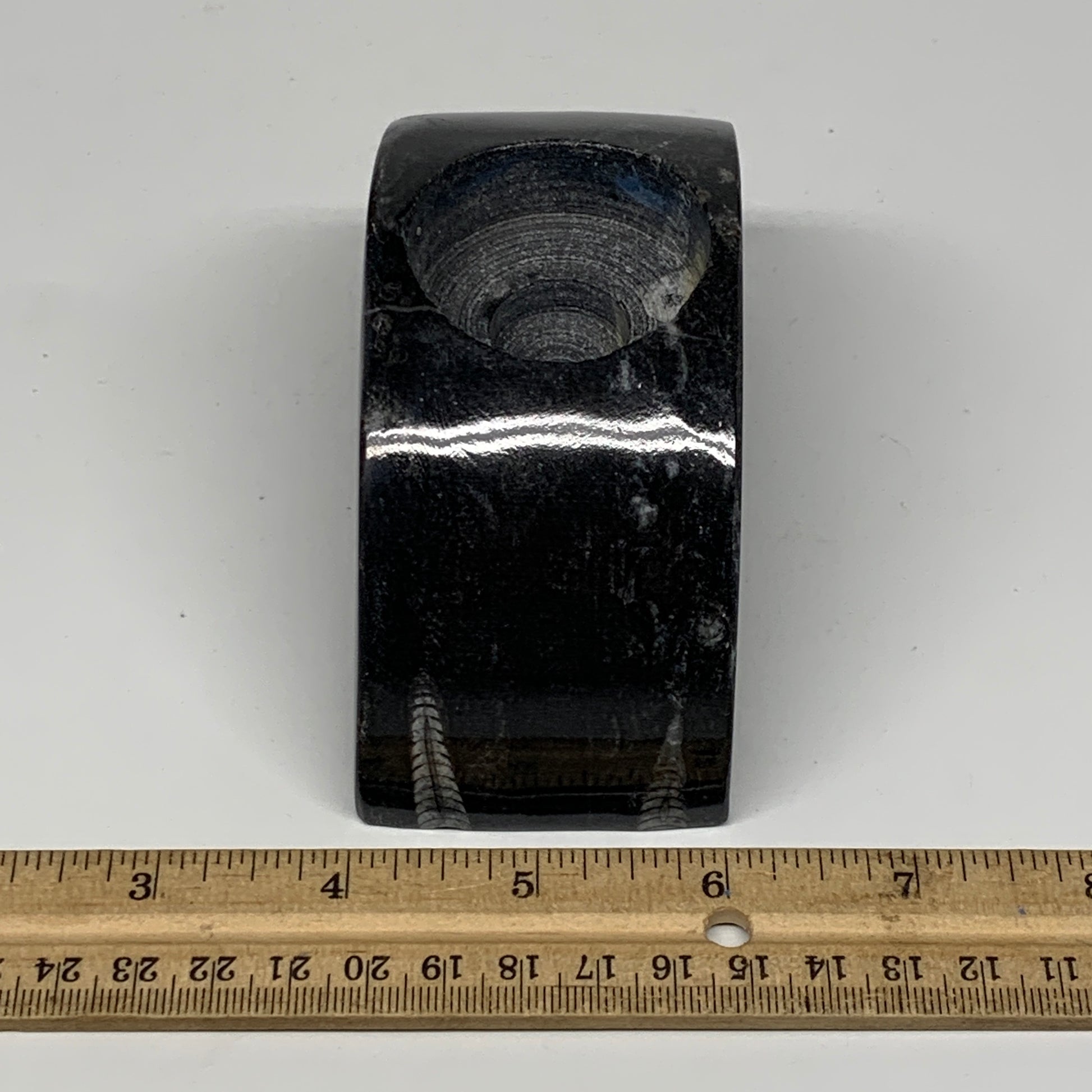 424g, 4.6" x 2" x 1.3" Moon Shape Fossils Orthoceras Candle Holder, B8694