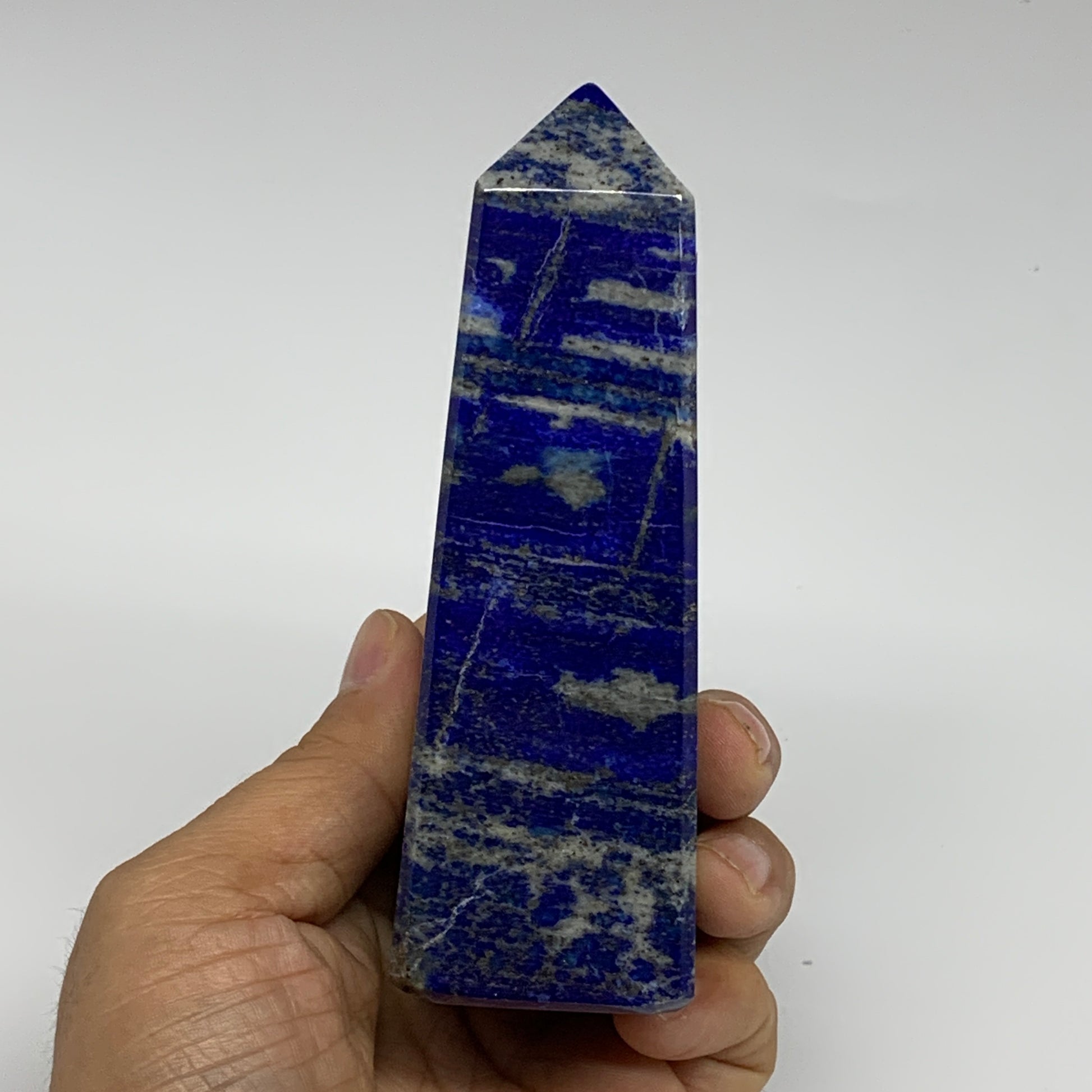 439.6g, 4.7"x1.5"x1.7", Natural Lapis Lazuli Tower Point Obelisk Afghanistan,B30508